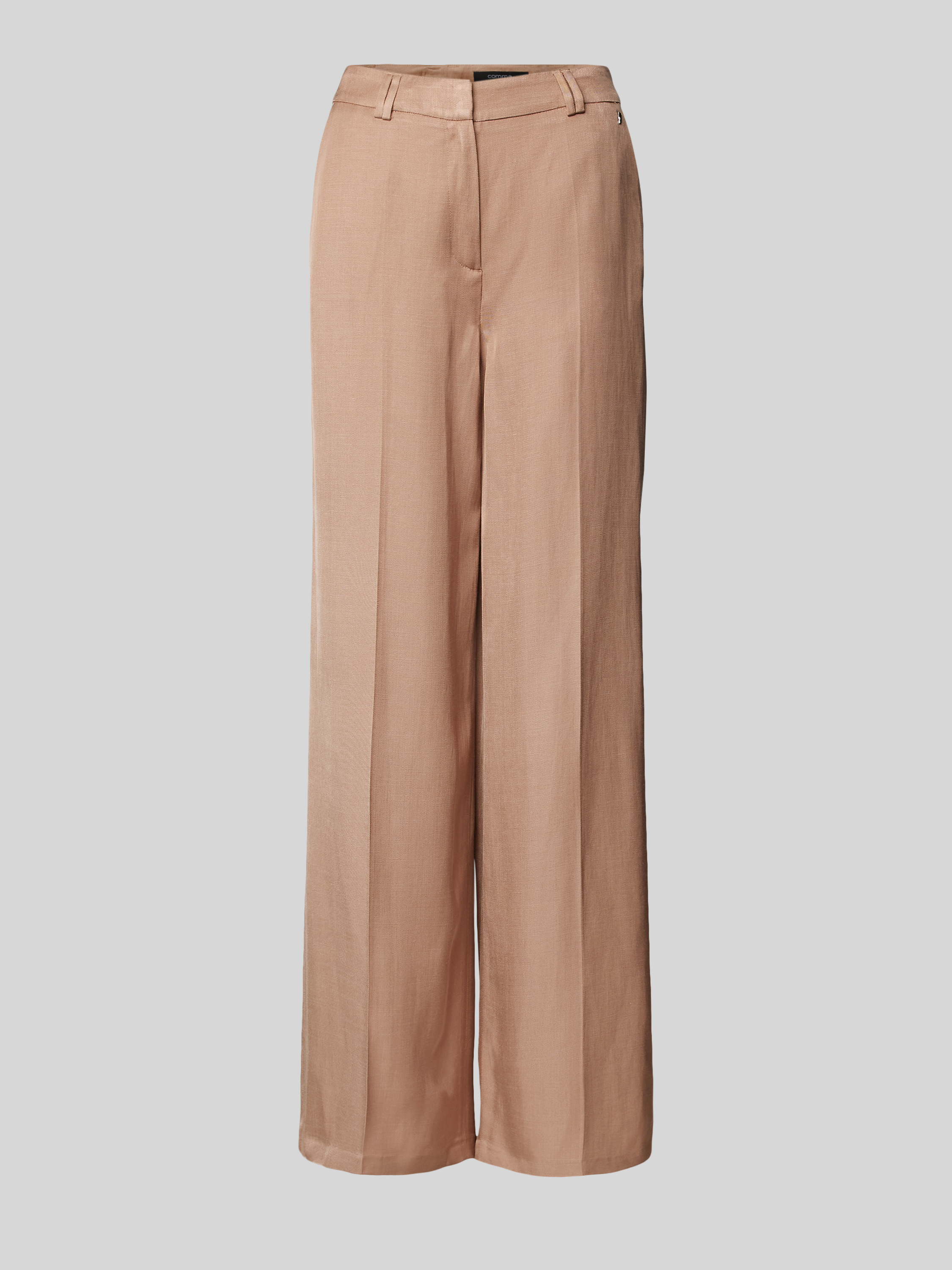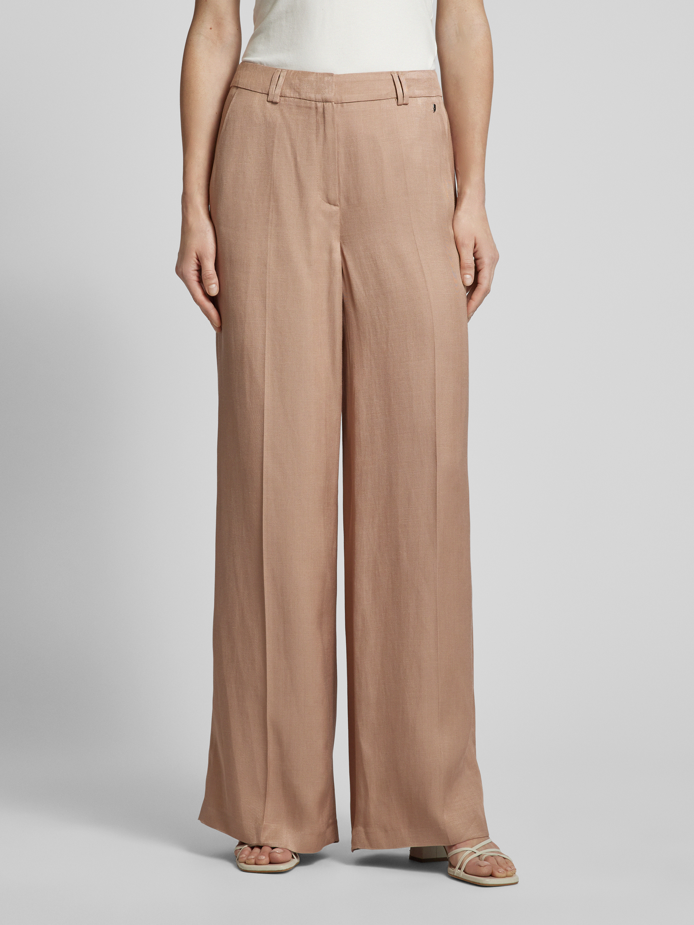 commaBroek van een mix van viscose en linnen met wijde pijpen in taupe