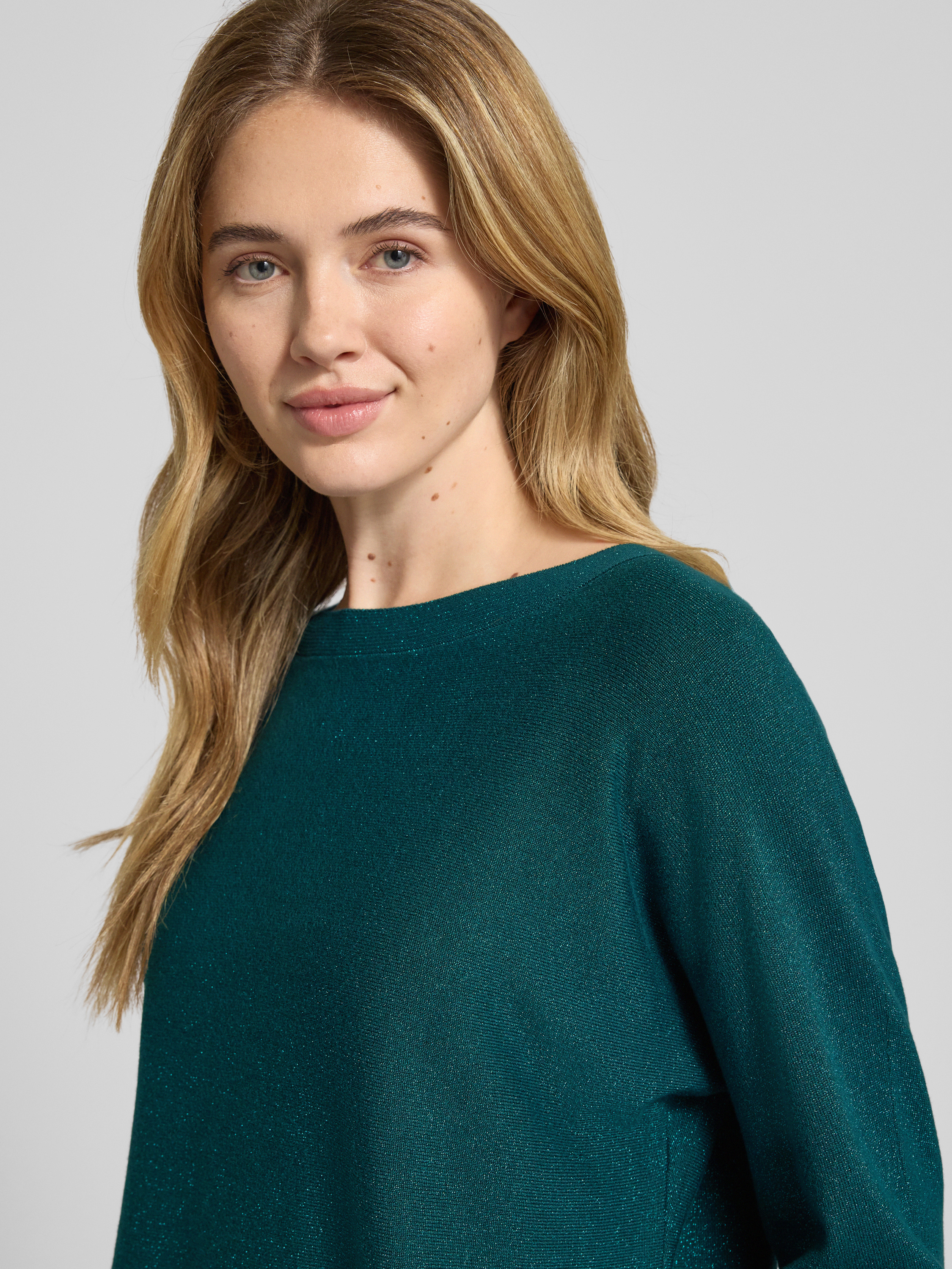 commaGebreide pullover van viscosemix met boothals in petrol