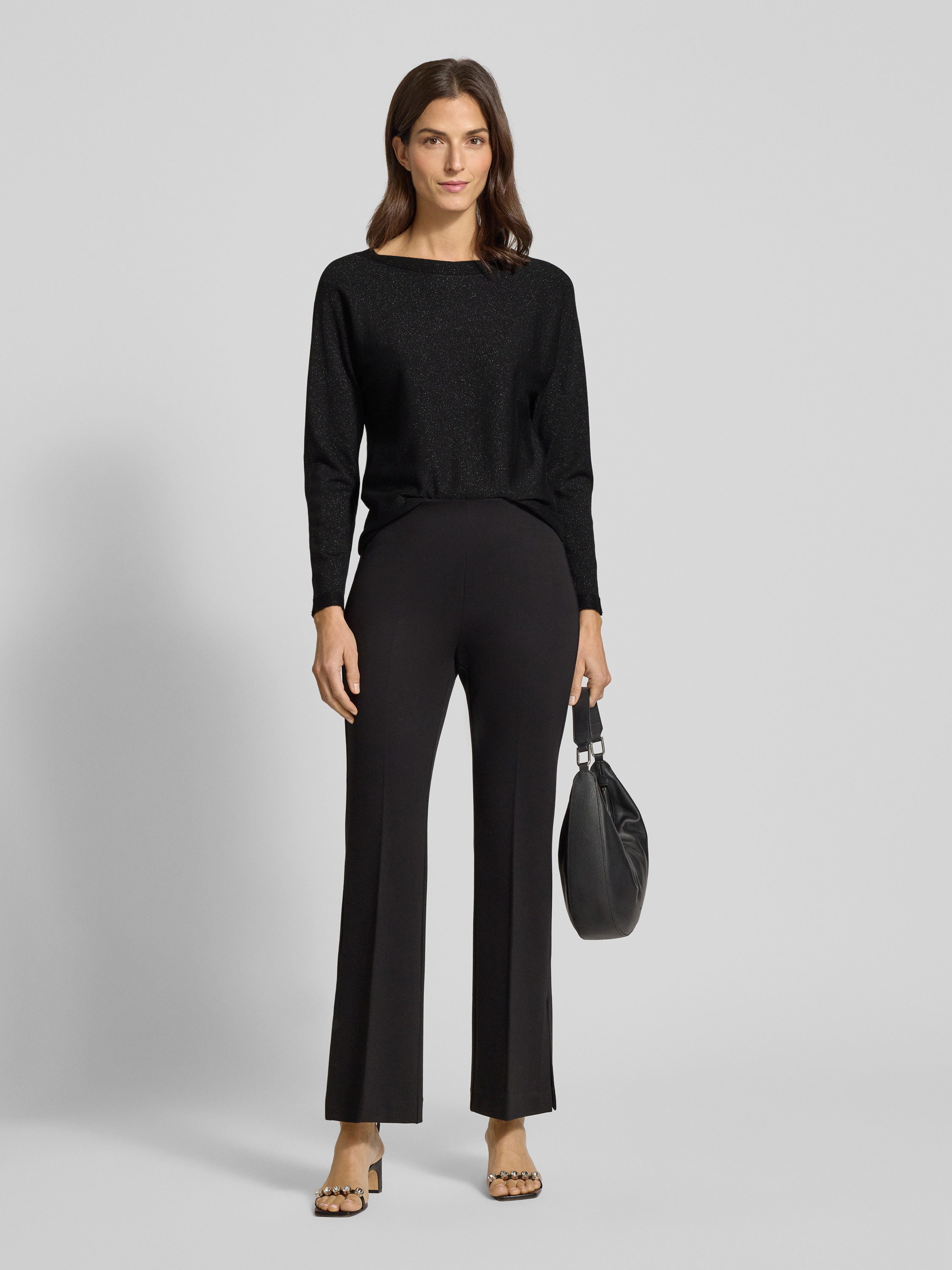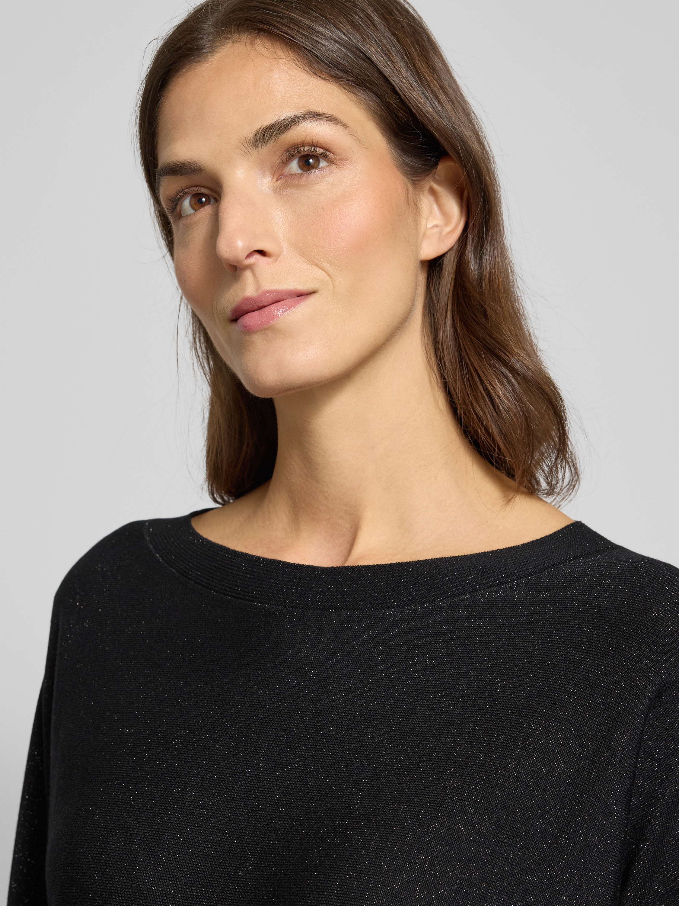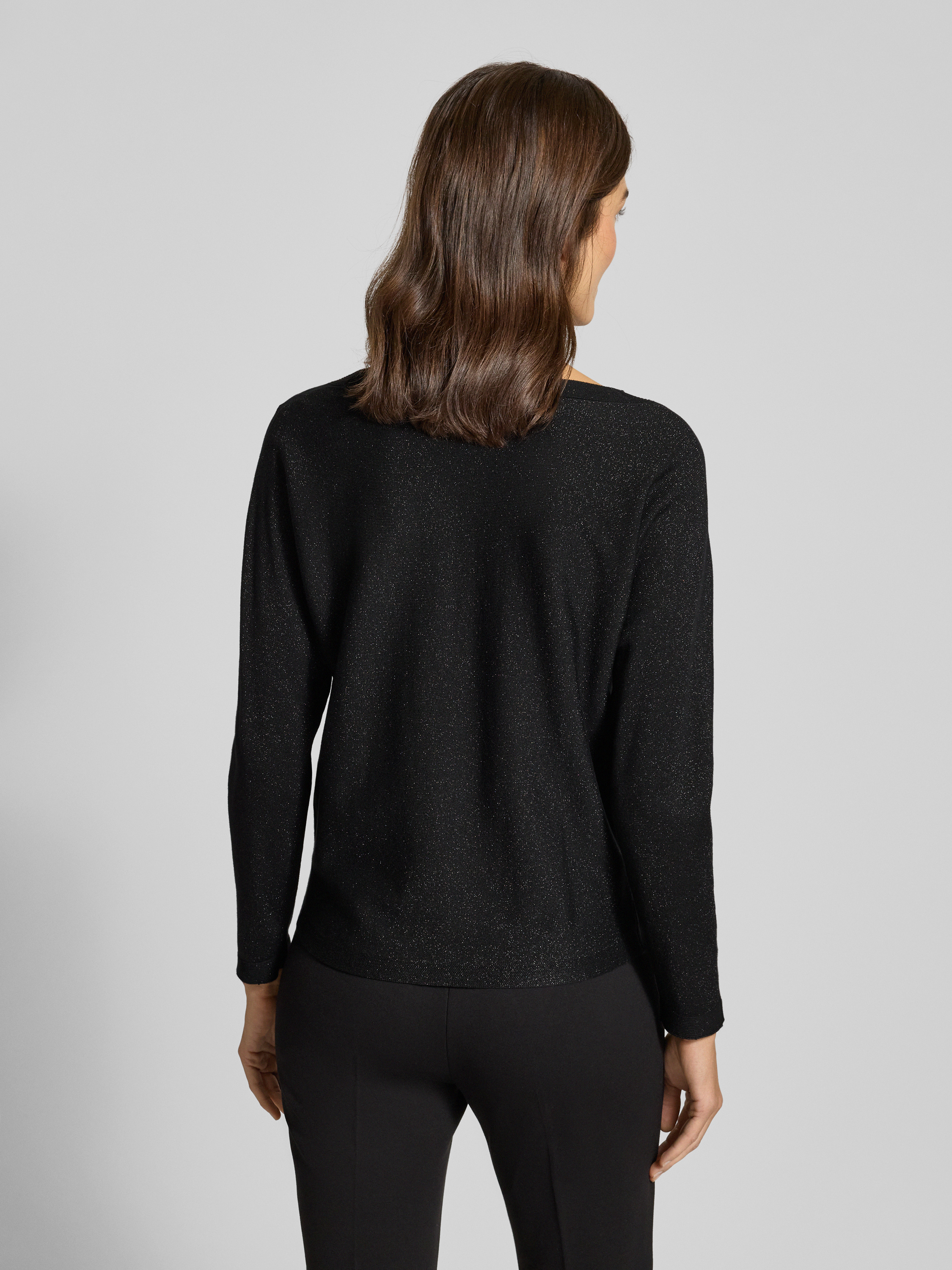 commaGebreide pullover van viscosemix met boothals in zwart