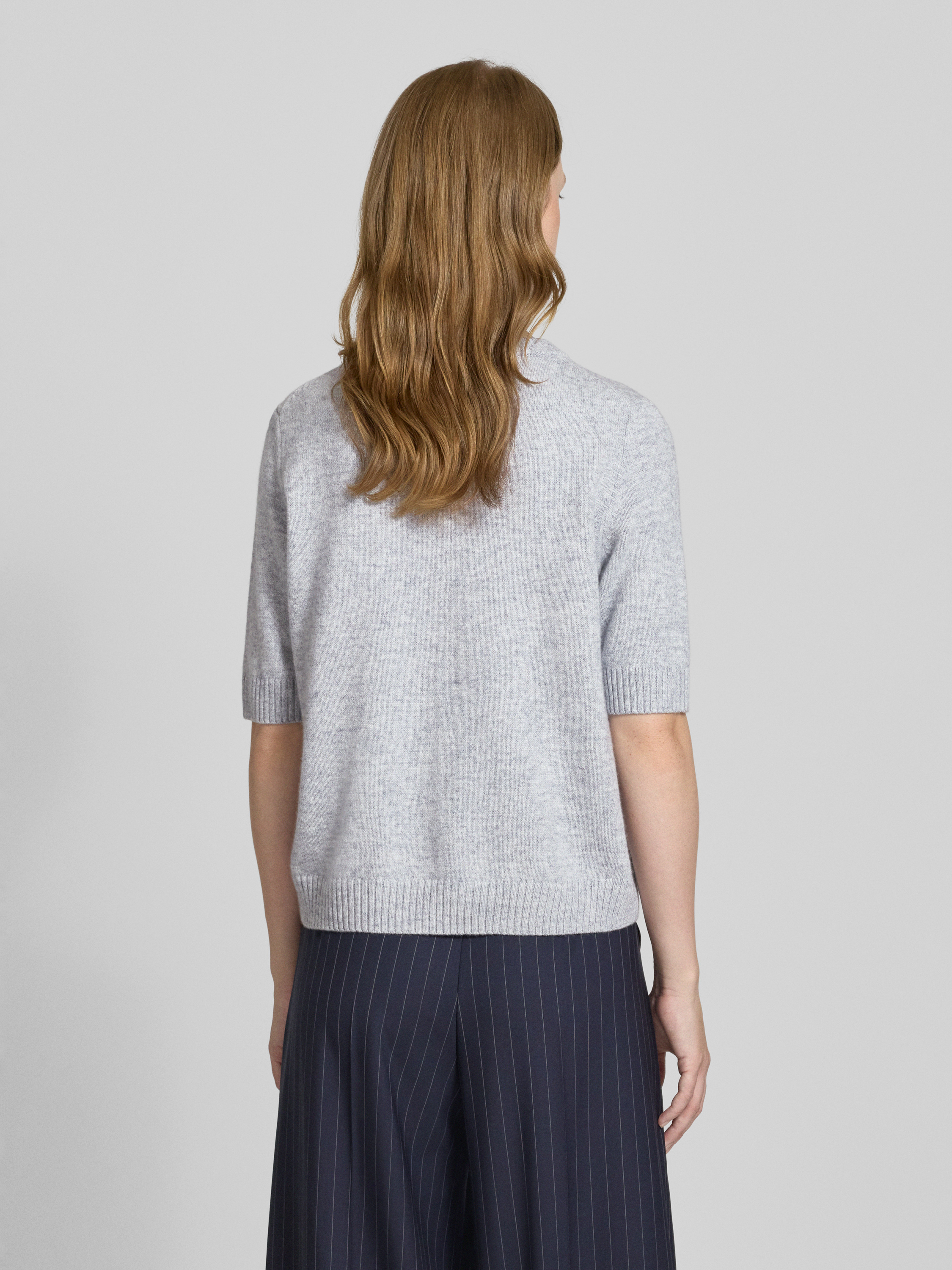 commaGebreide pullover van wolmix met 1/2-mouwen in zilver