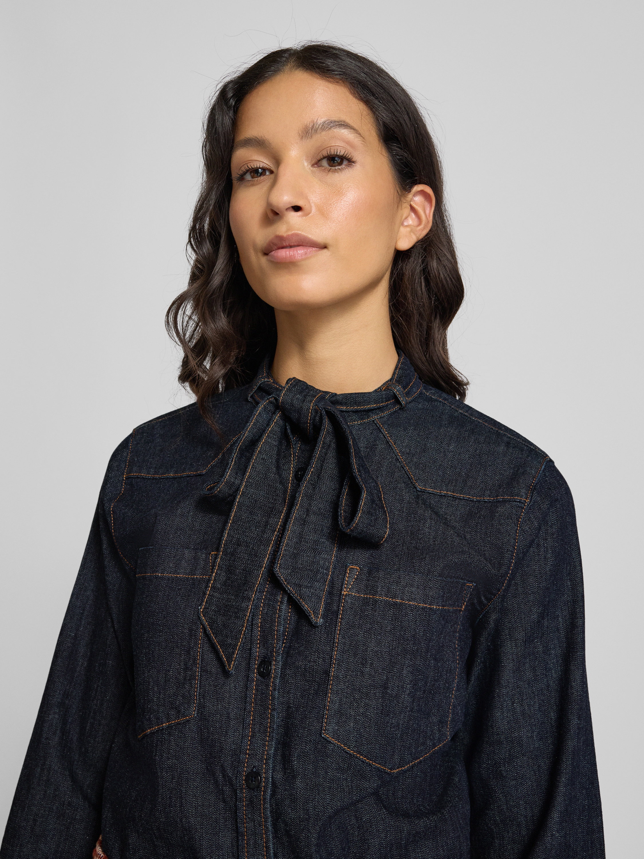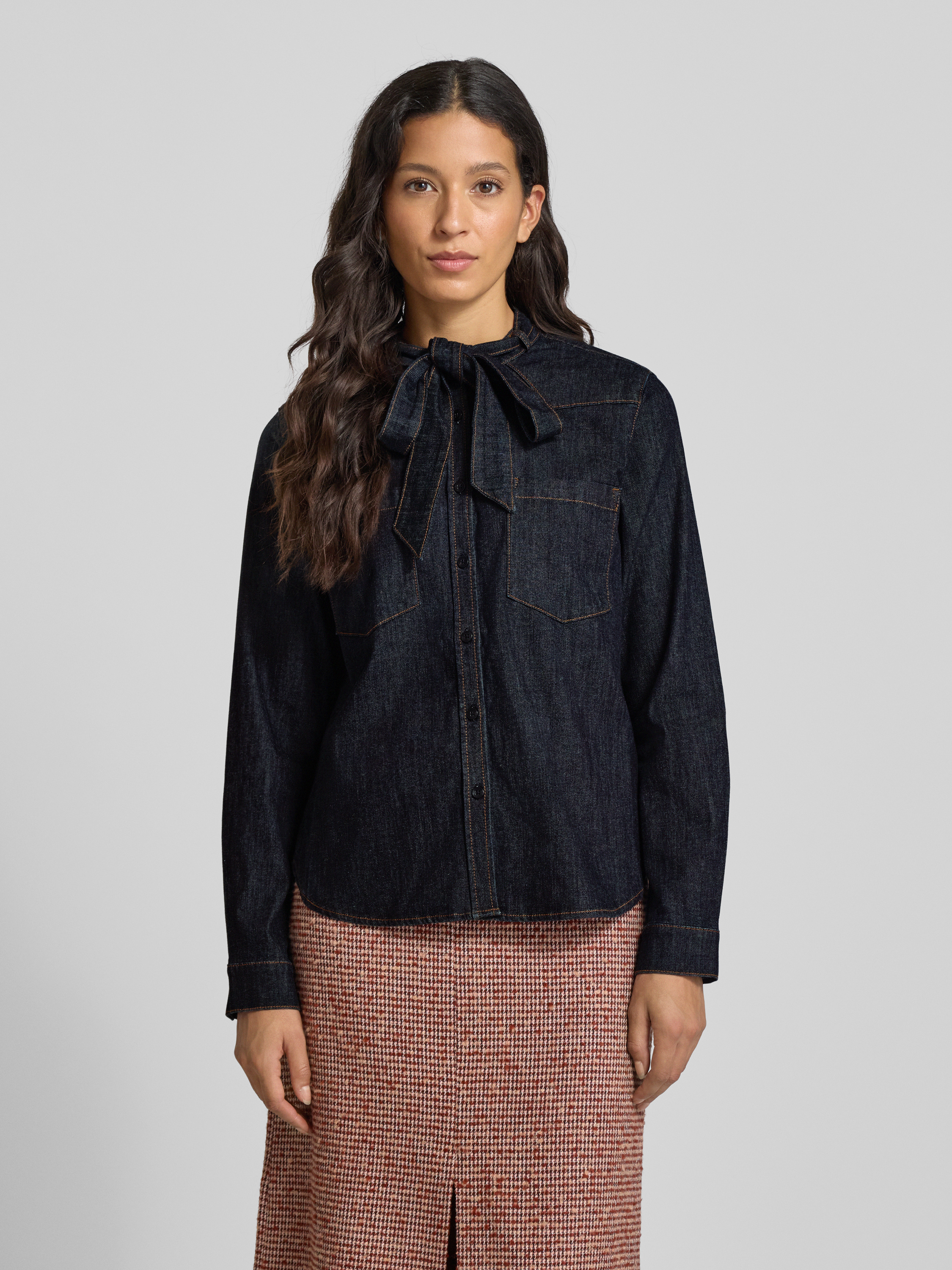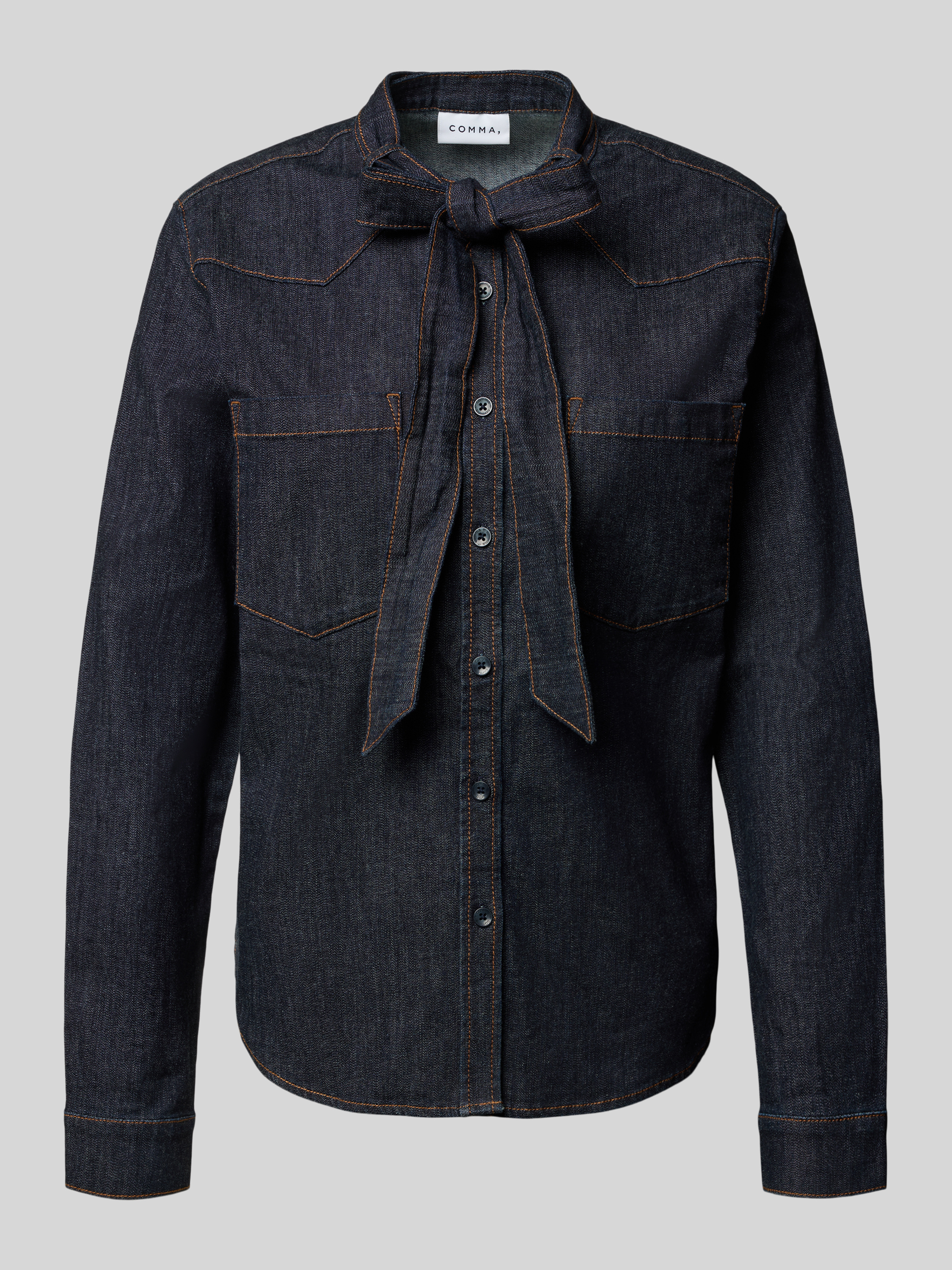 Regular fit jeansblouse met strikdetail in jeansblauw