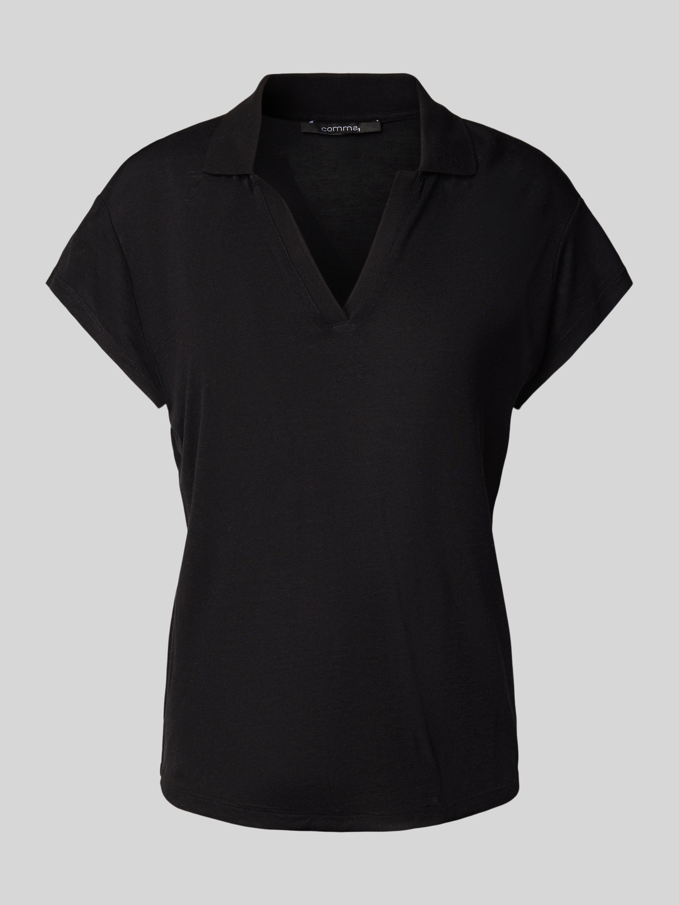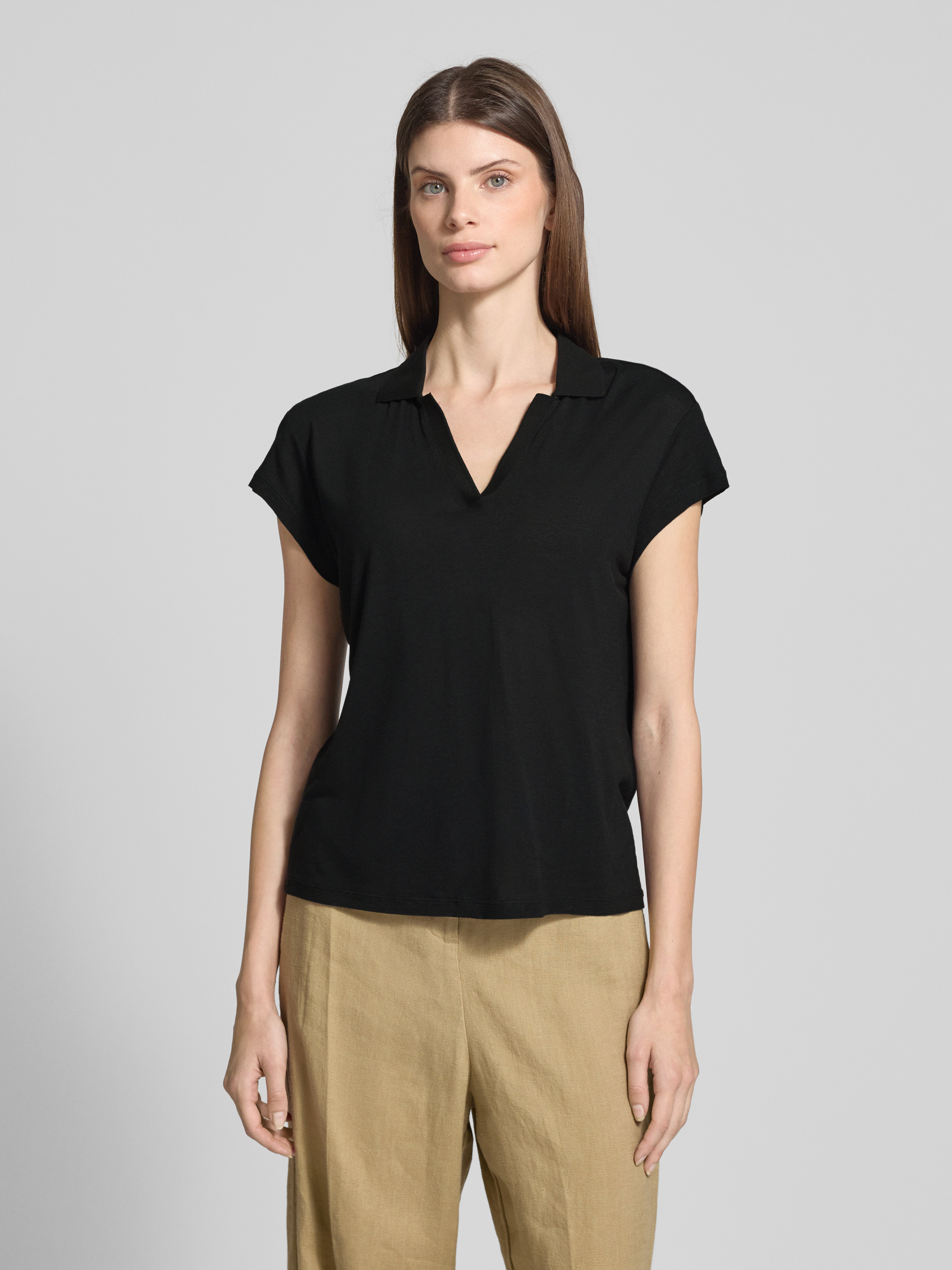 Regular fit poloshirt van een mix van viscose en linnen in zwart
