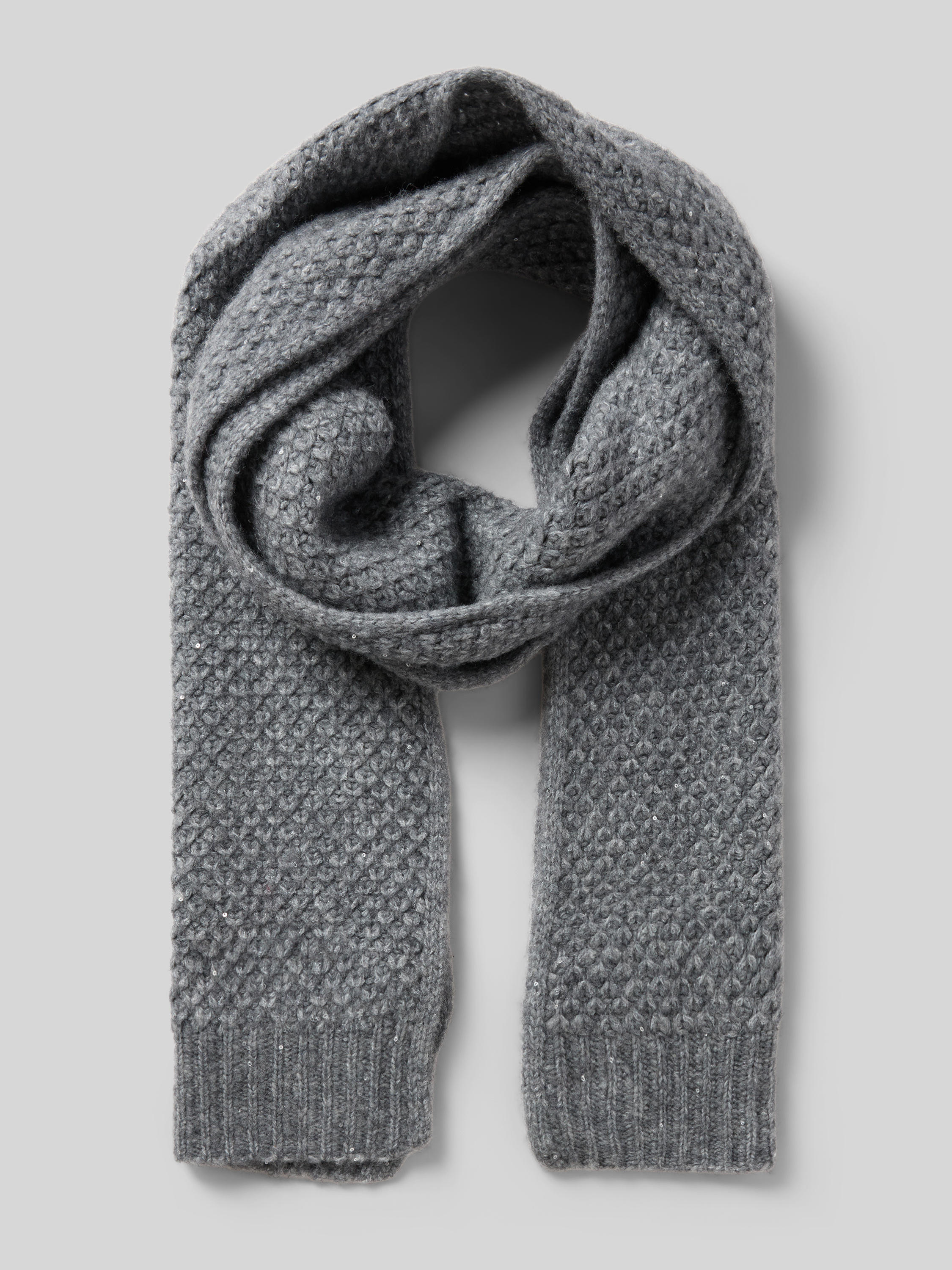 commaSjaal met structuurmotief en pailletten in antraciet