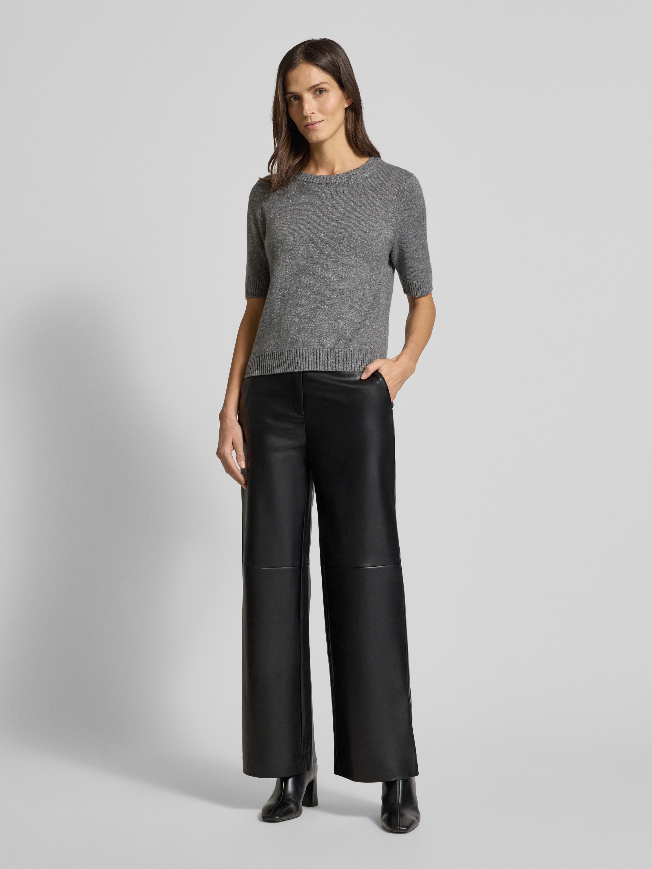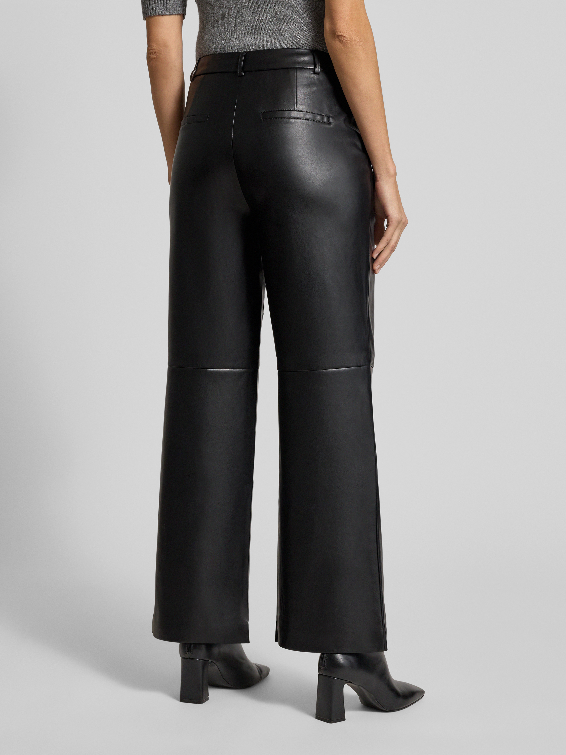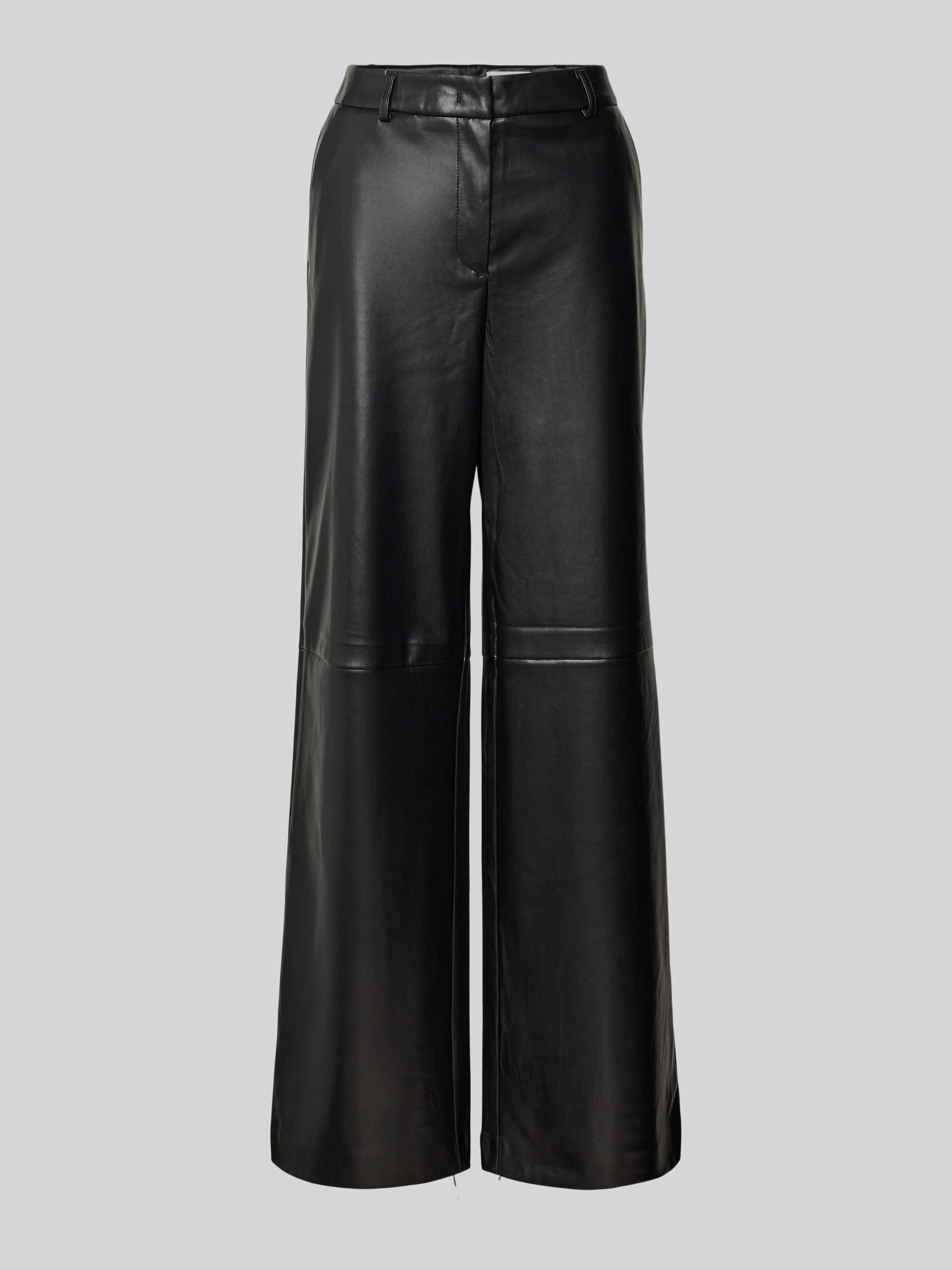 Stoffen broek in leerlook in zwart