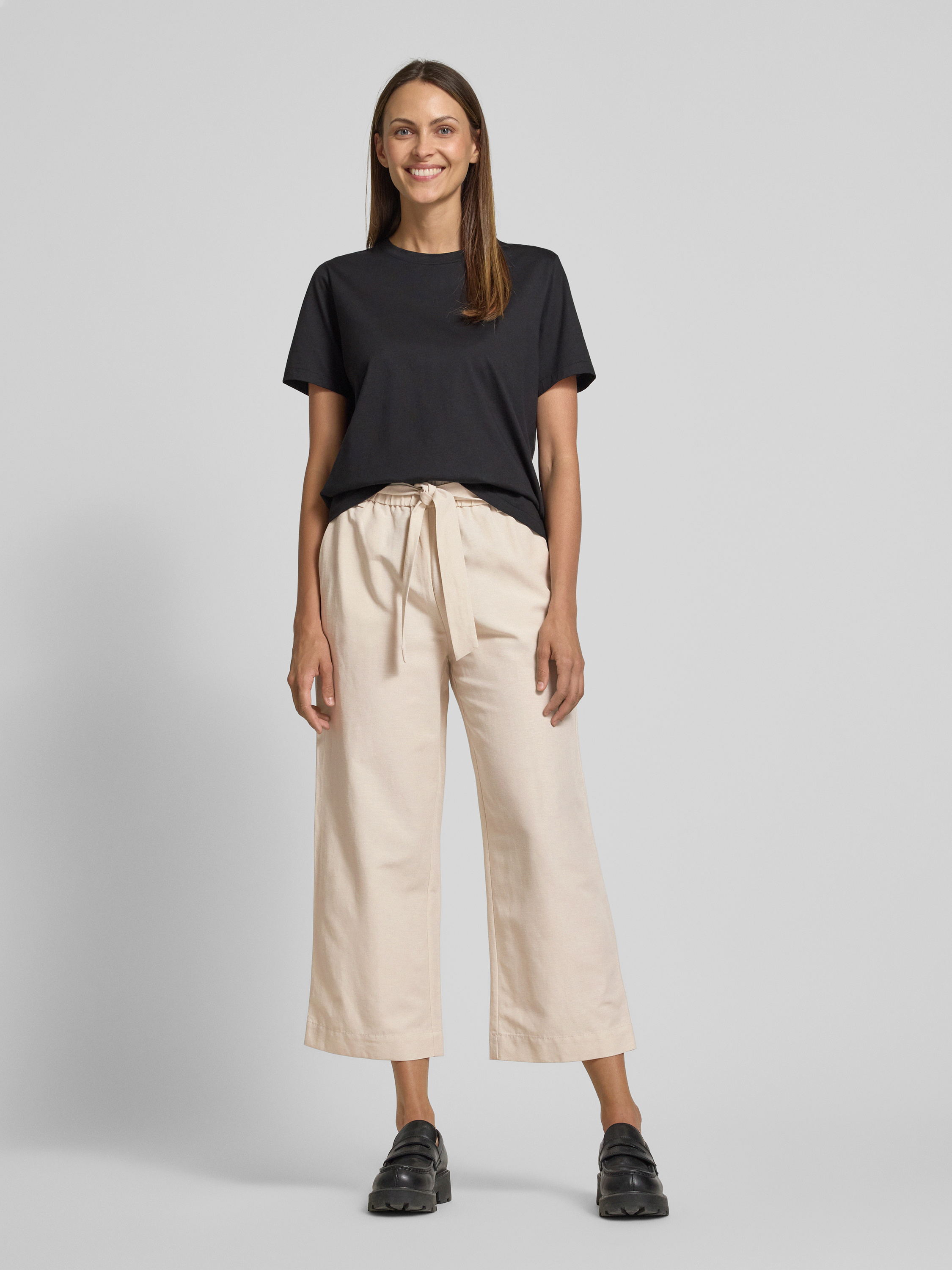 Straight leg stoffen broek met verkort model in zand
