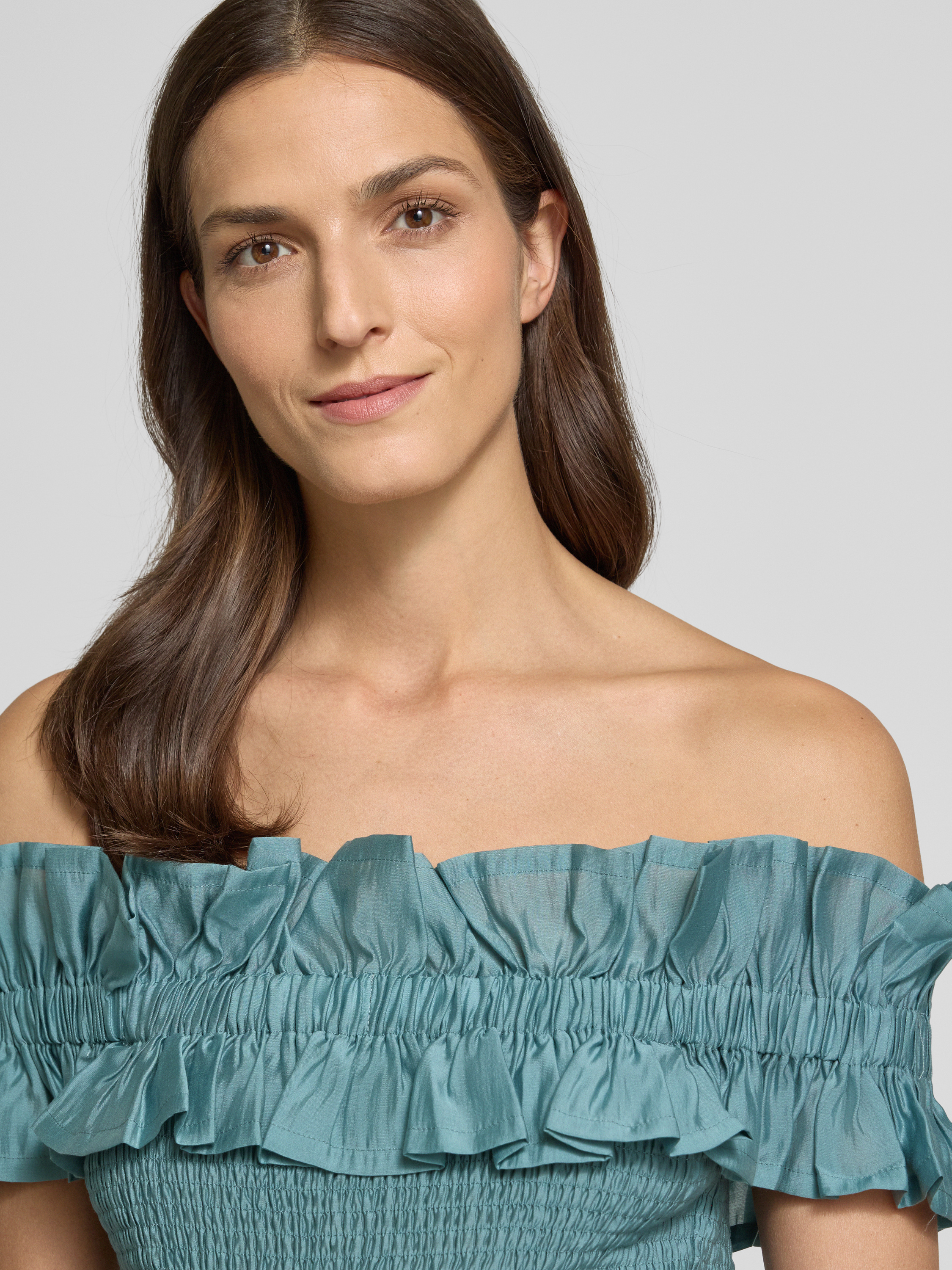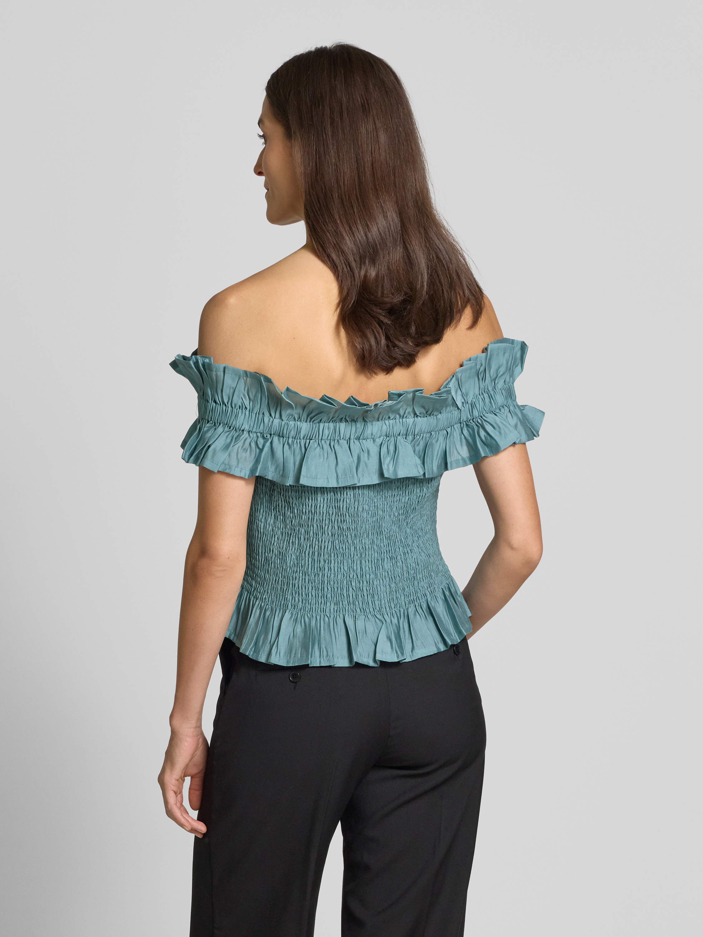 Copenhagen MuseBlouseshirt met carmenhals, model 'MOLLY' in petrol