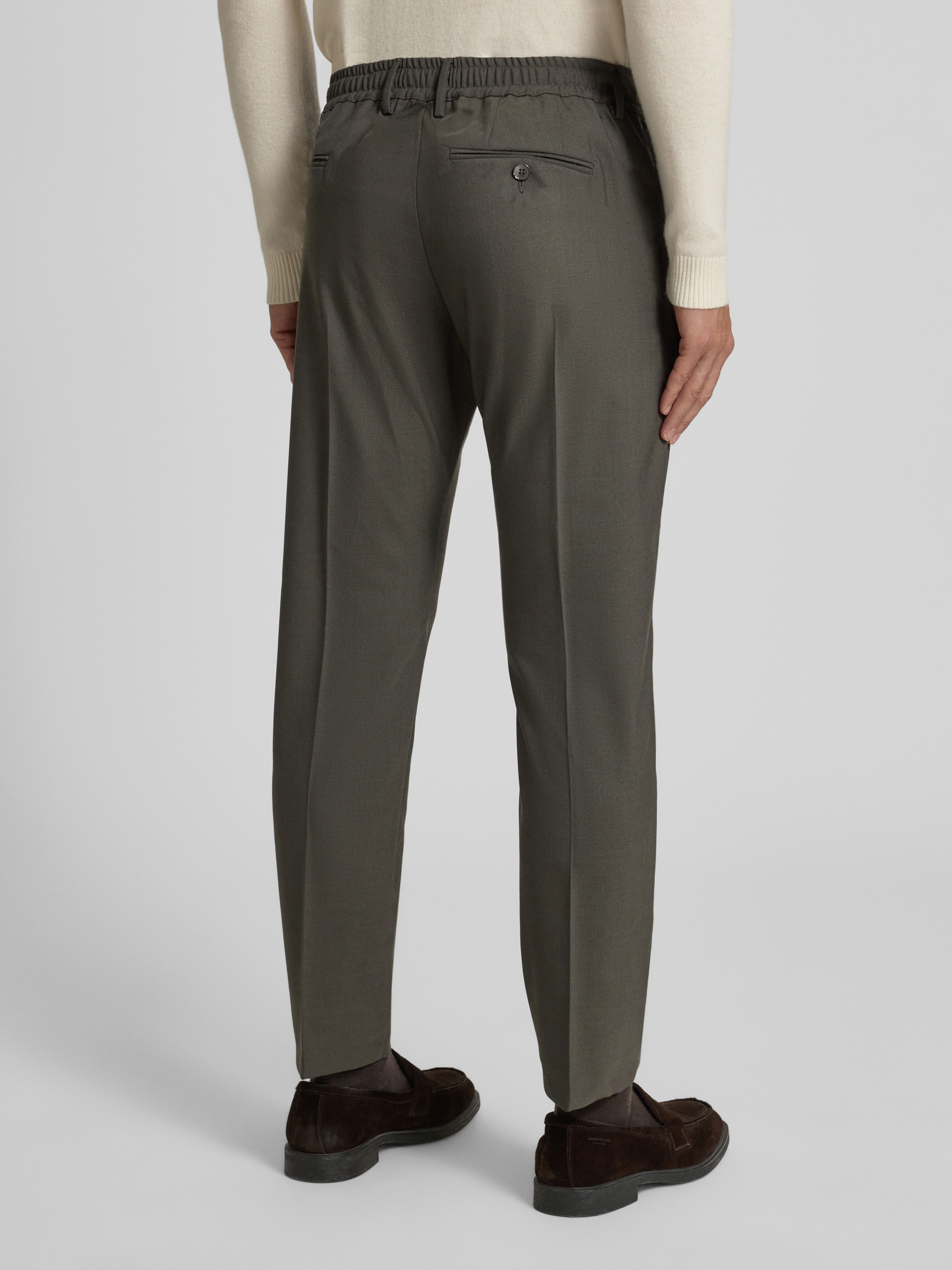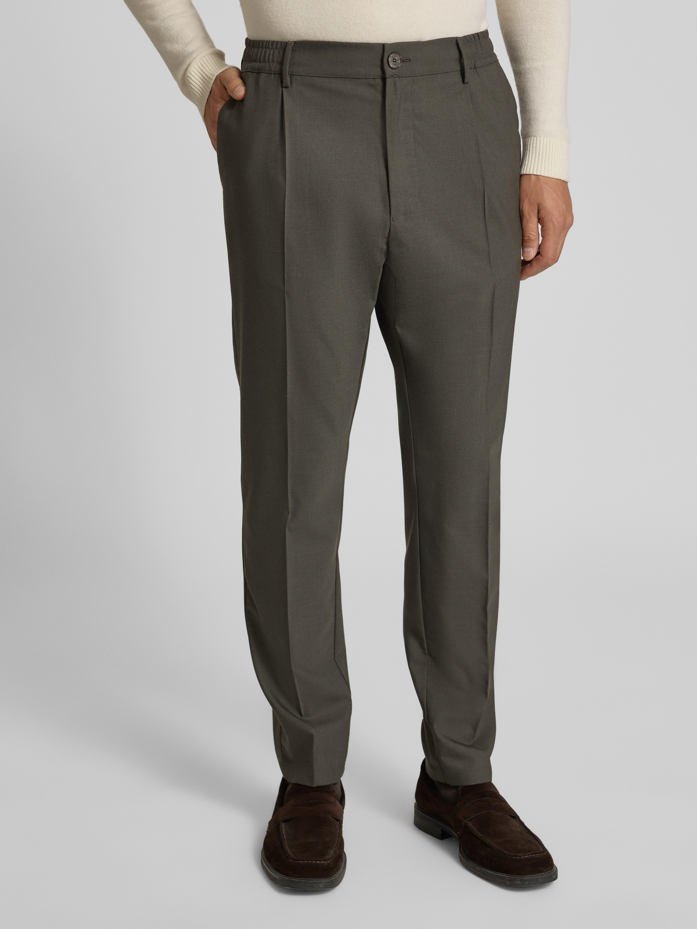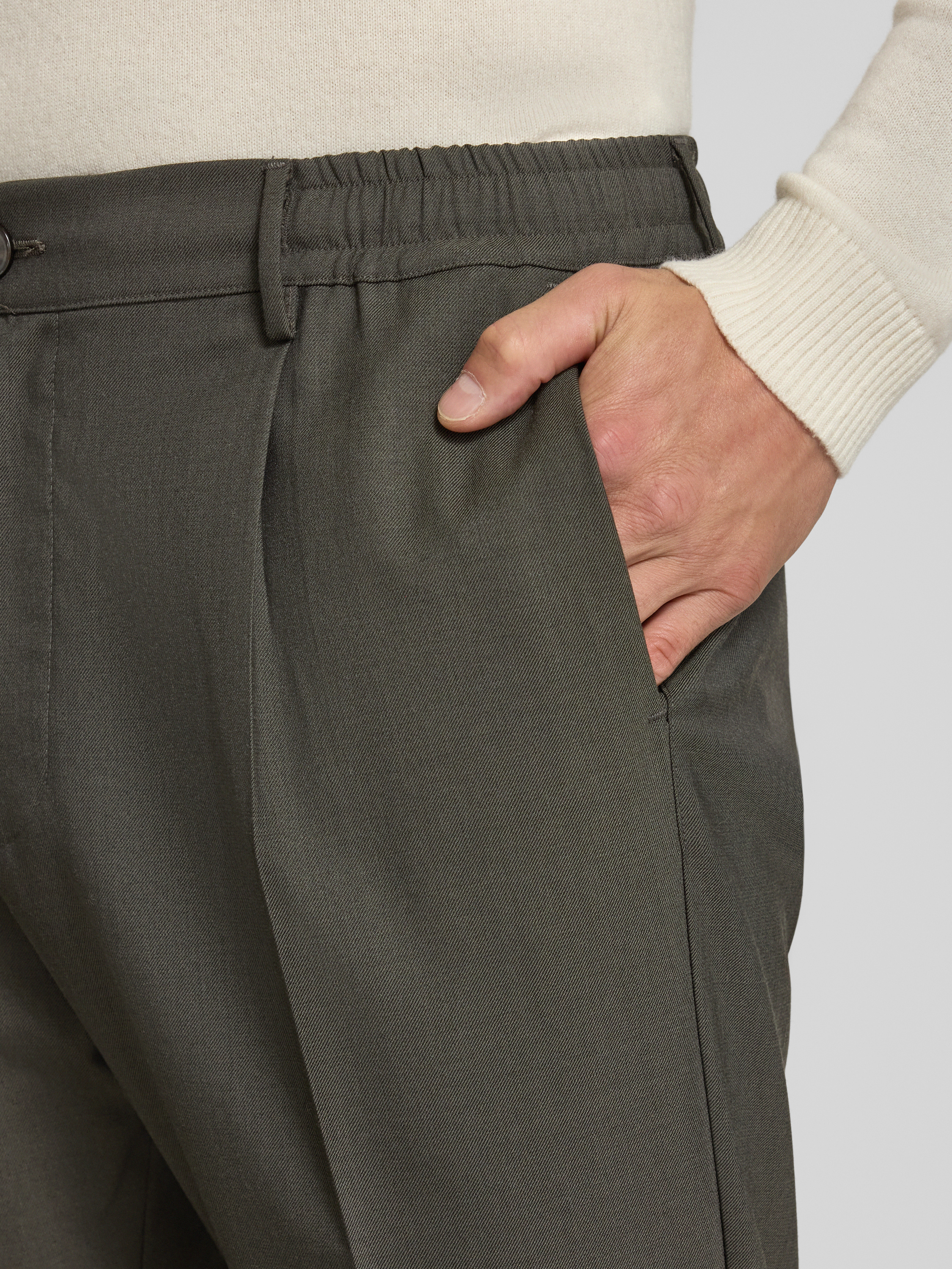Pantalon met bandplooien in kaki