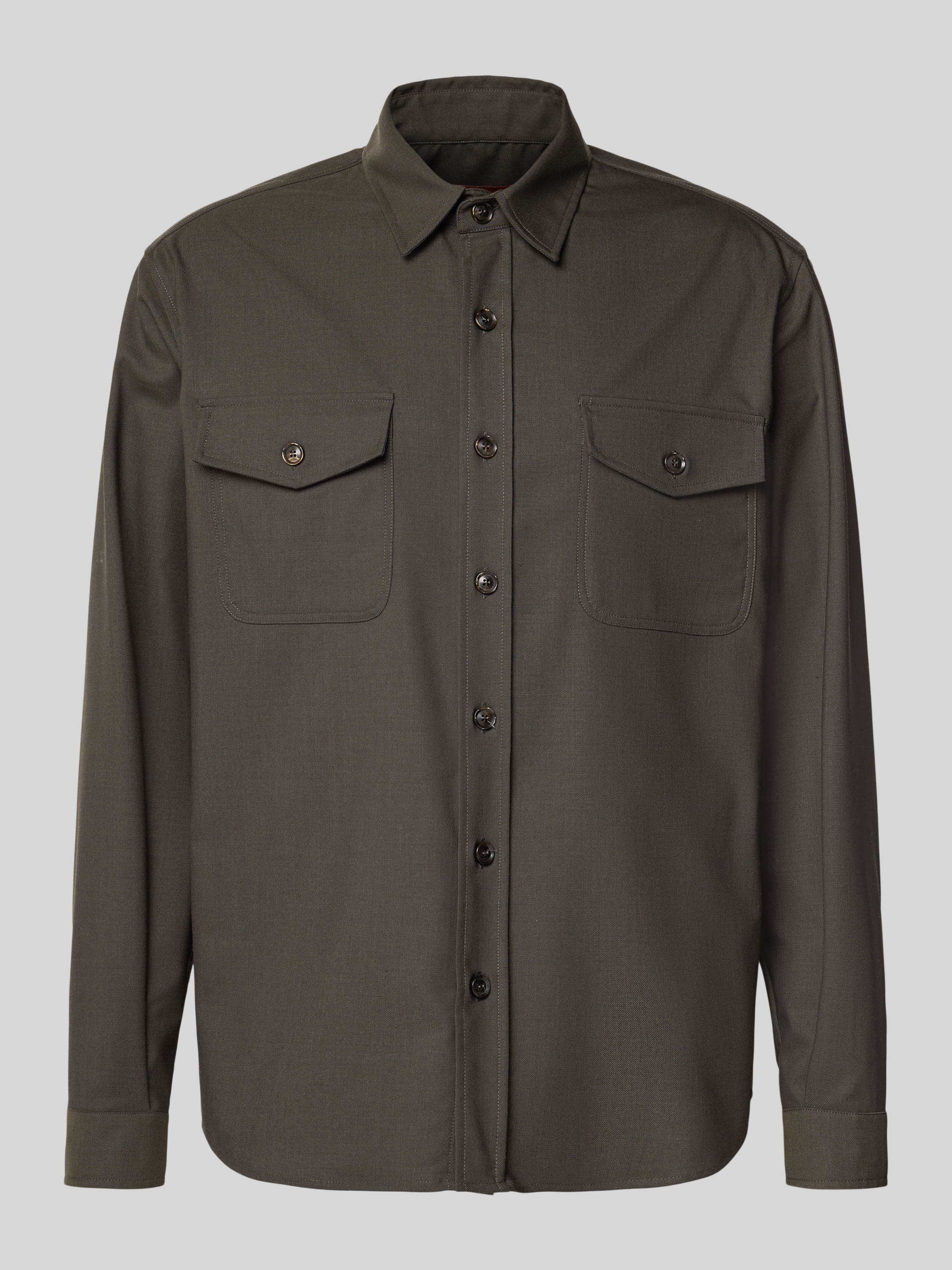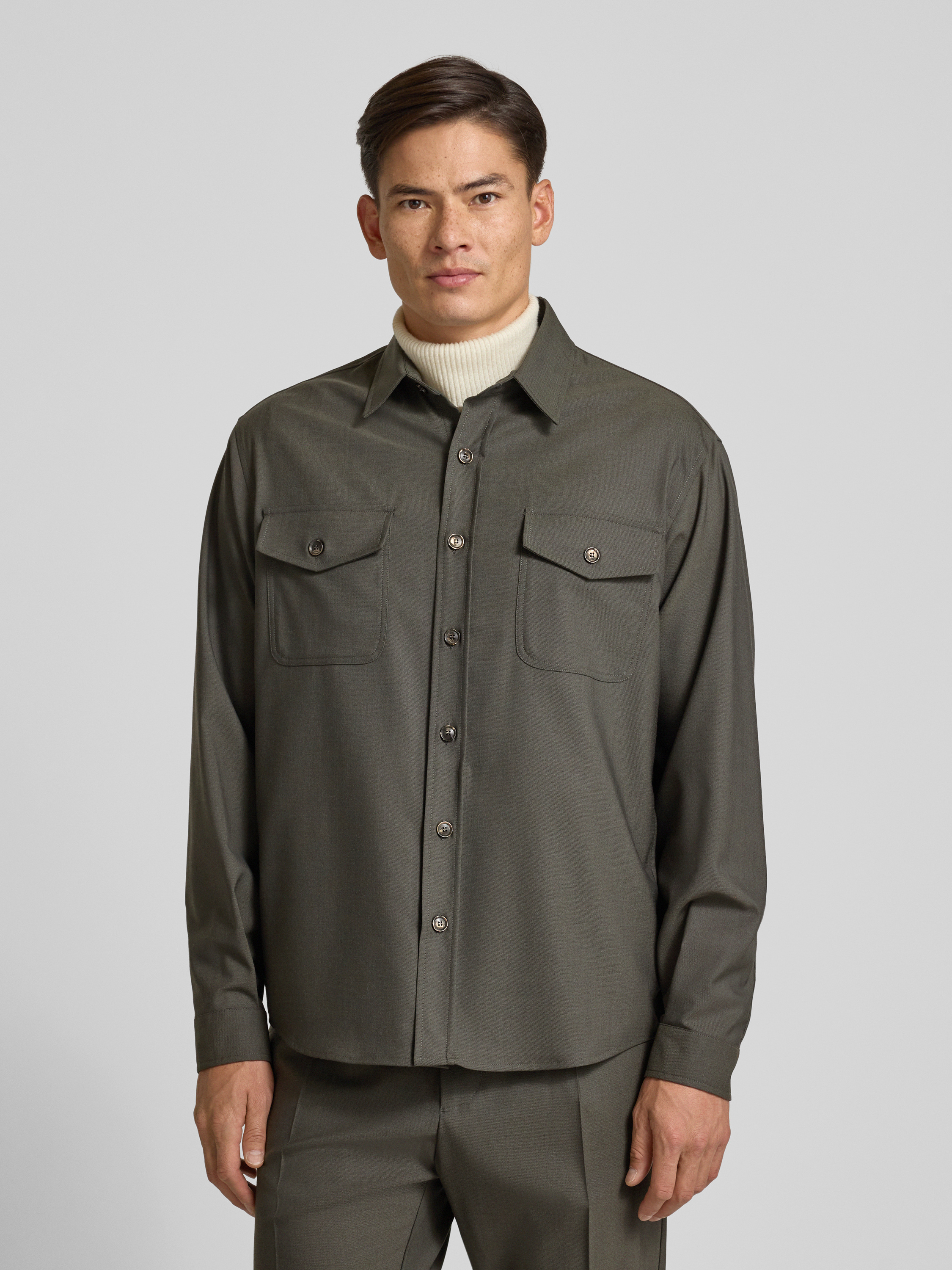 Regular fit overhemdjack met borstzakken, model 'Osaka' in kaki