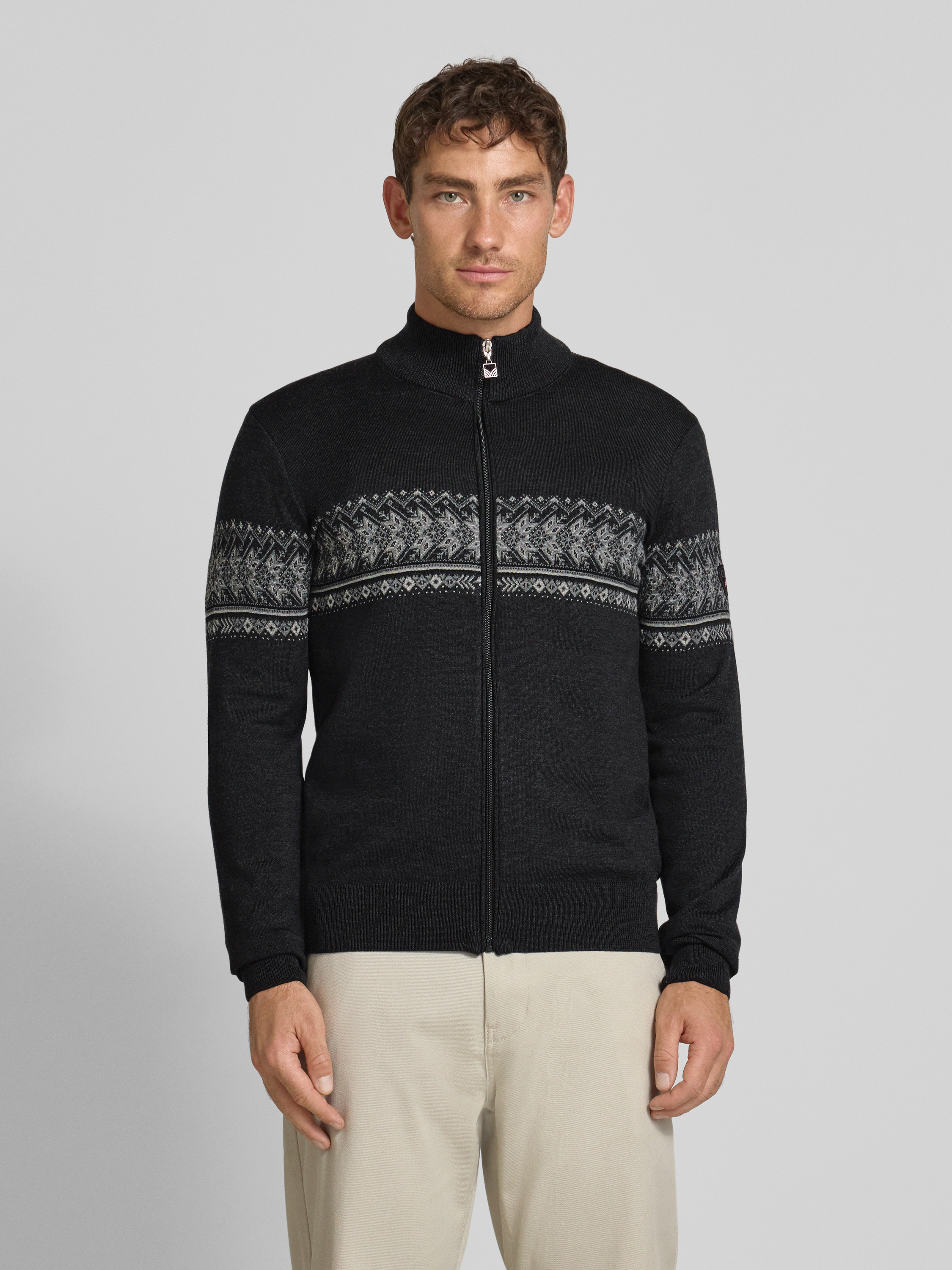 Gebreid jack met opstaande kraag en ritssluiting in antraciet