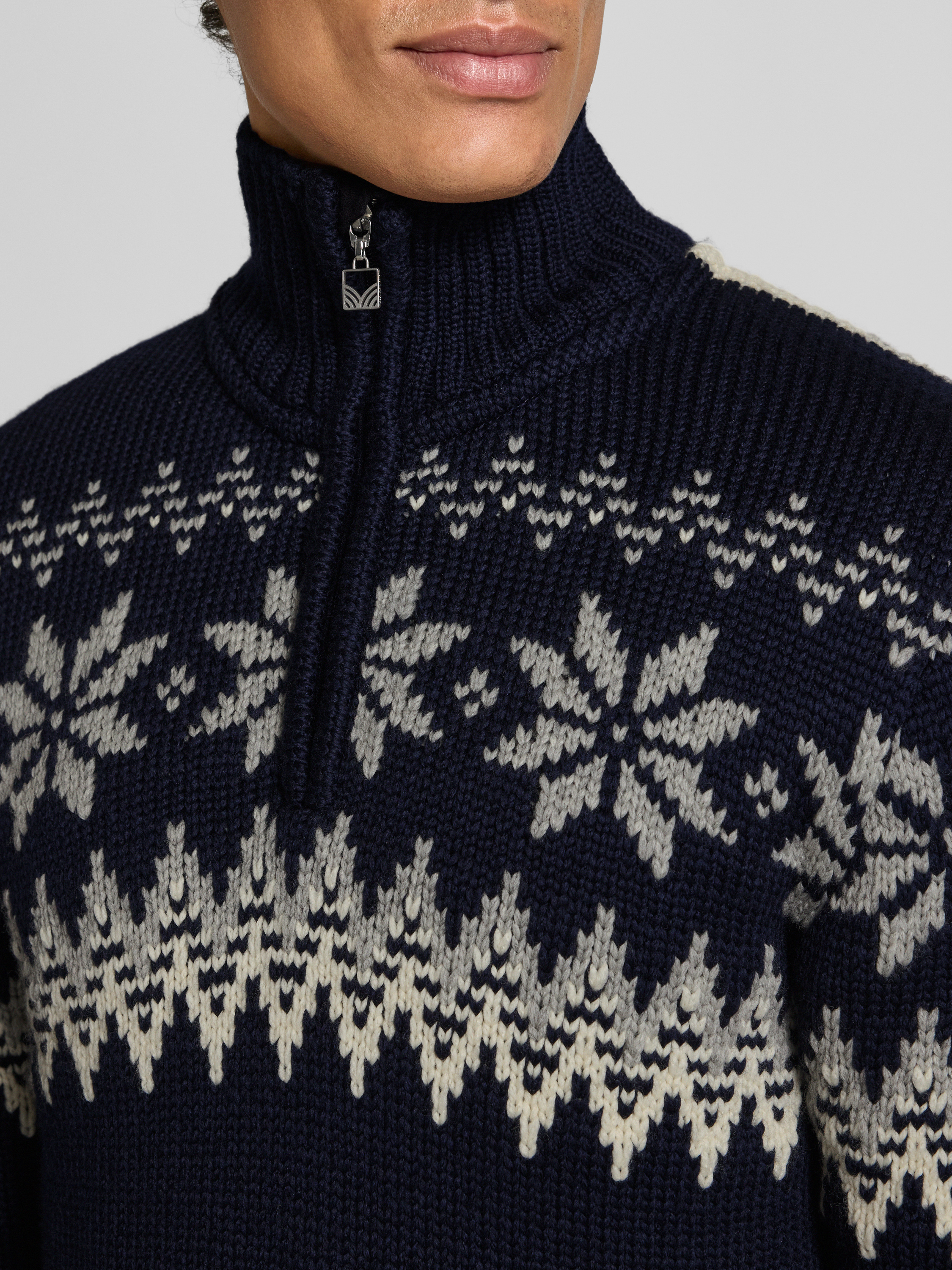 Noorse trui met schipperskraag van wolmix, model 'Myking' in marineblauw