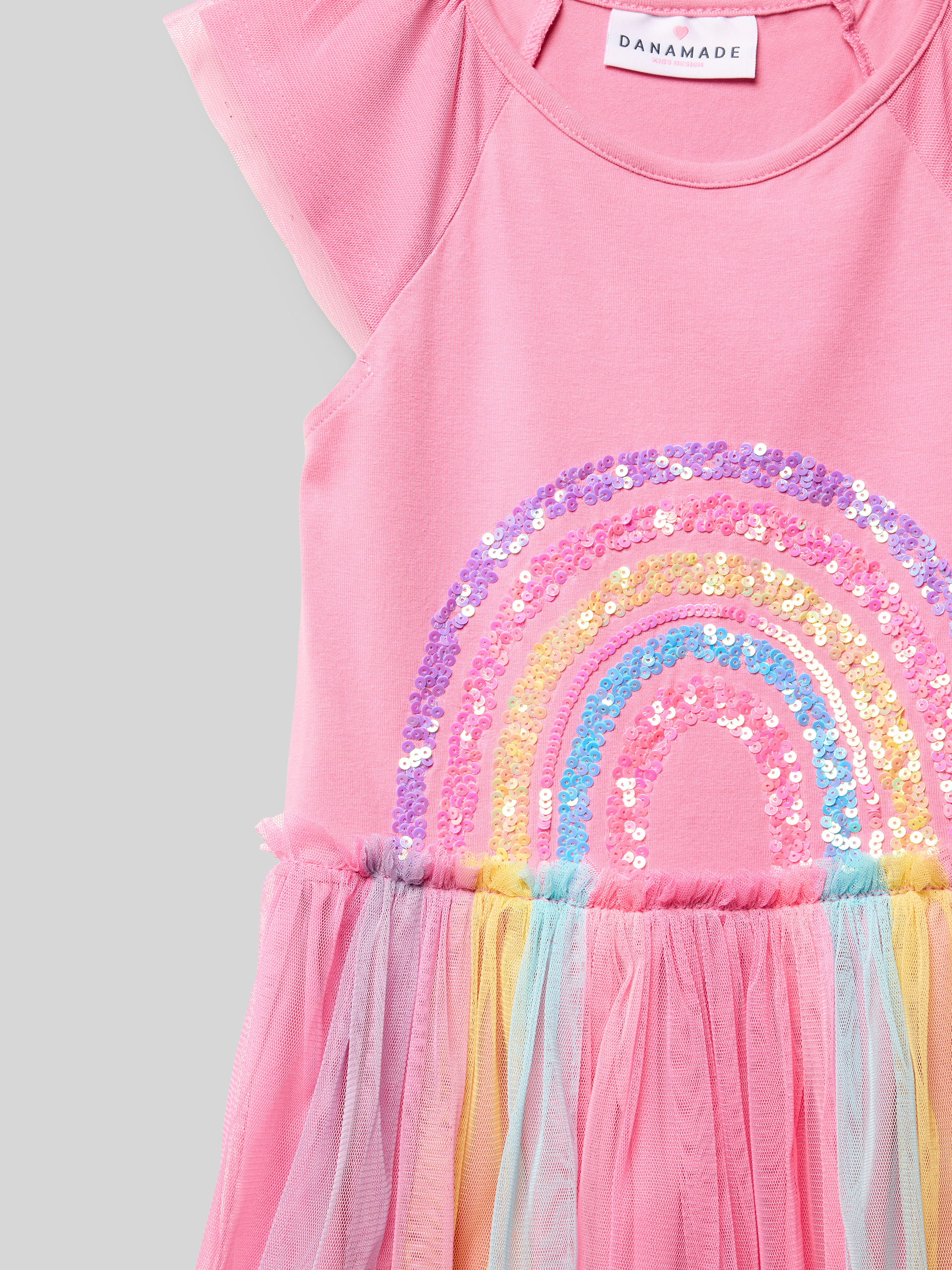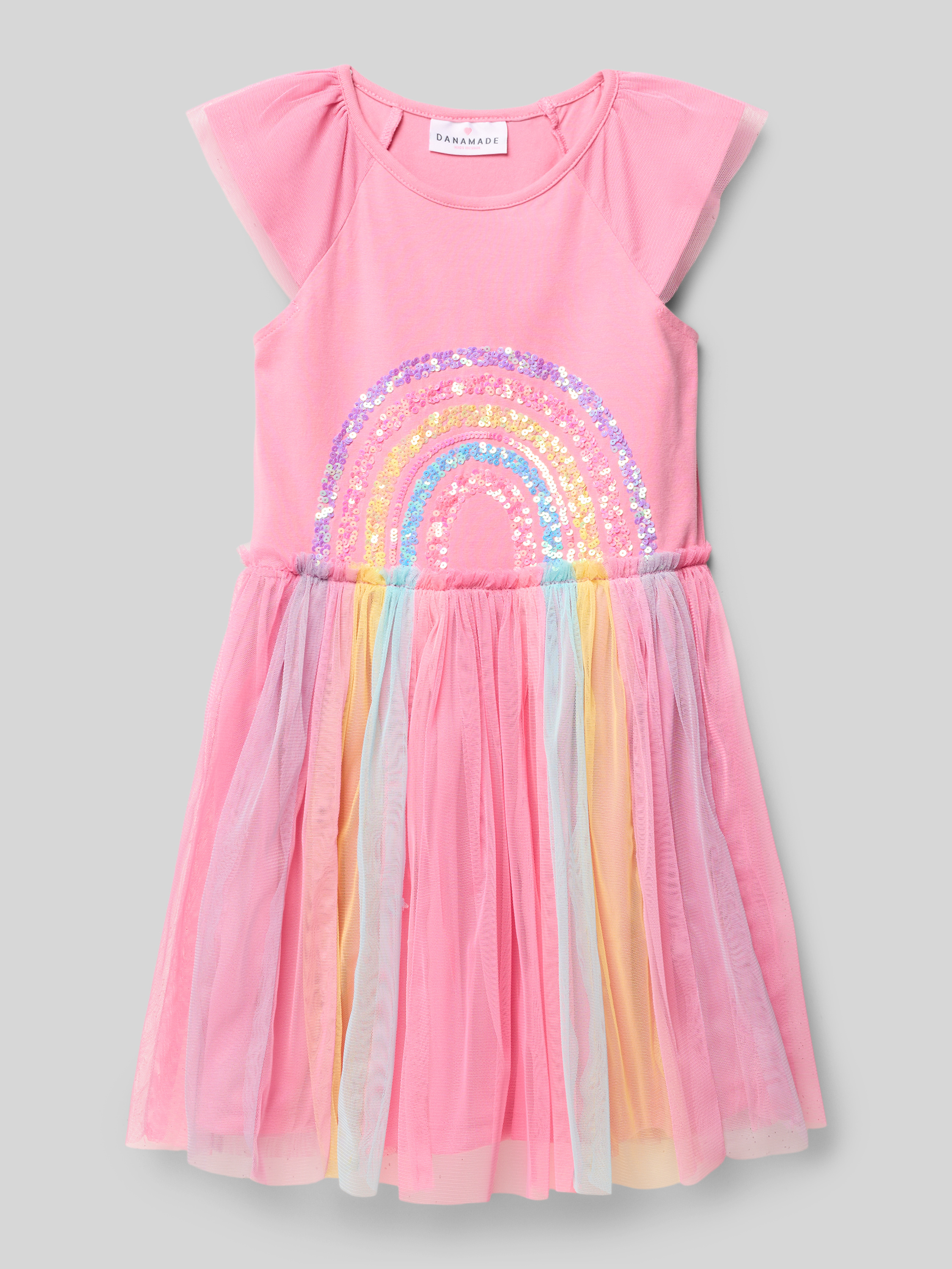 Jurk met tule en pailletten in felroze
