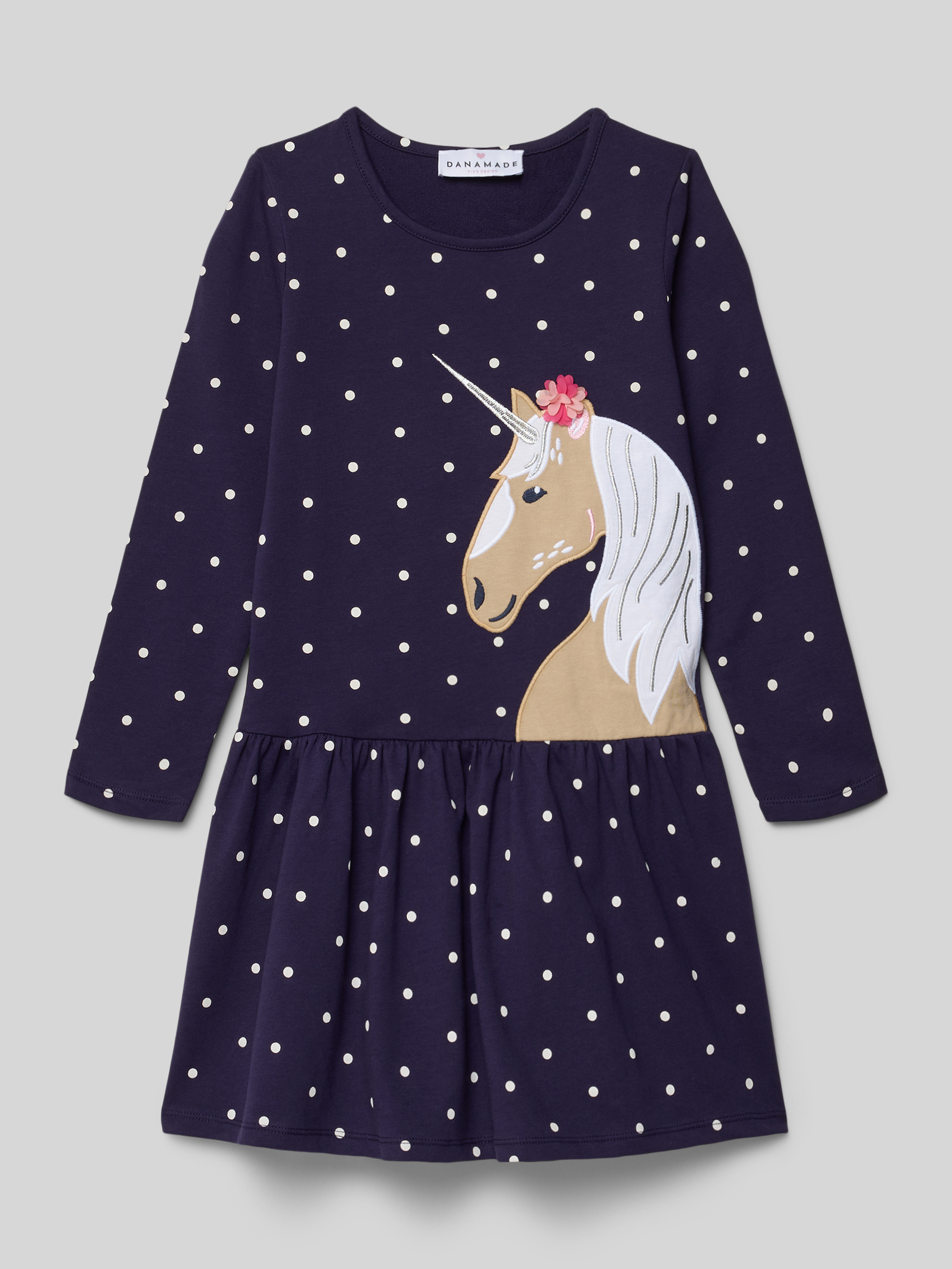 Mini-jurk met motiefprint, model 'FERAY' in marineblauw