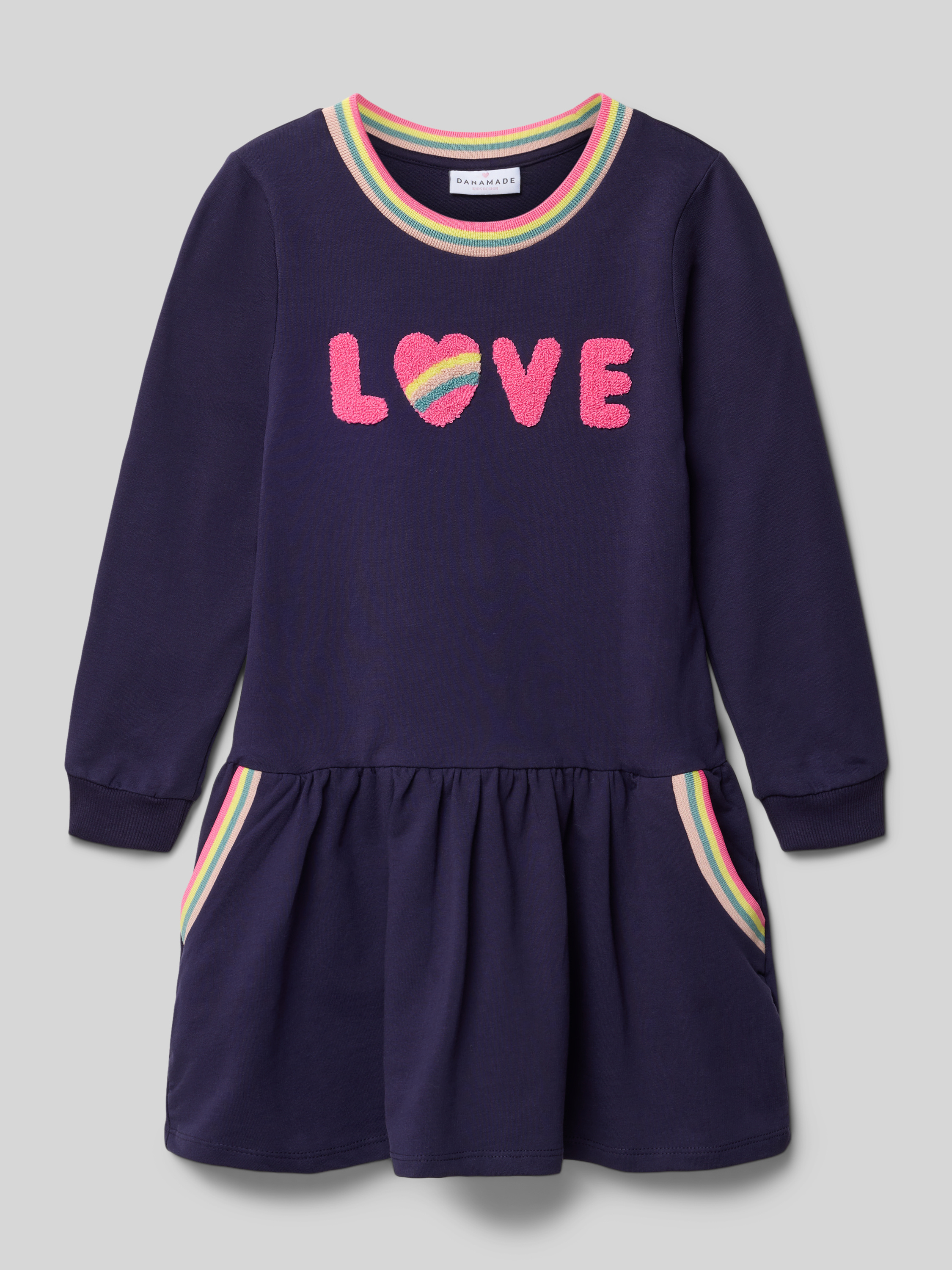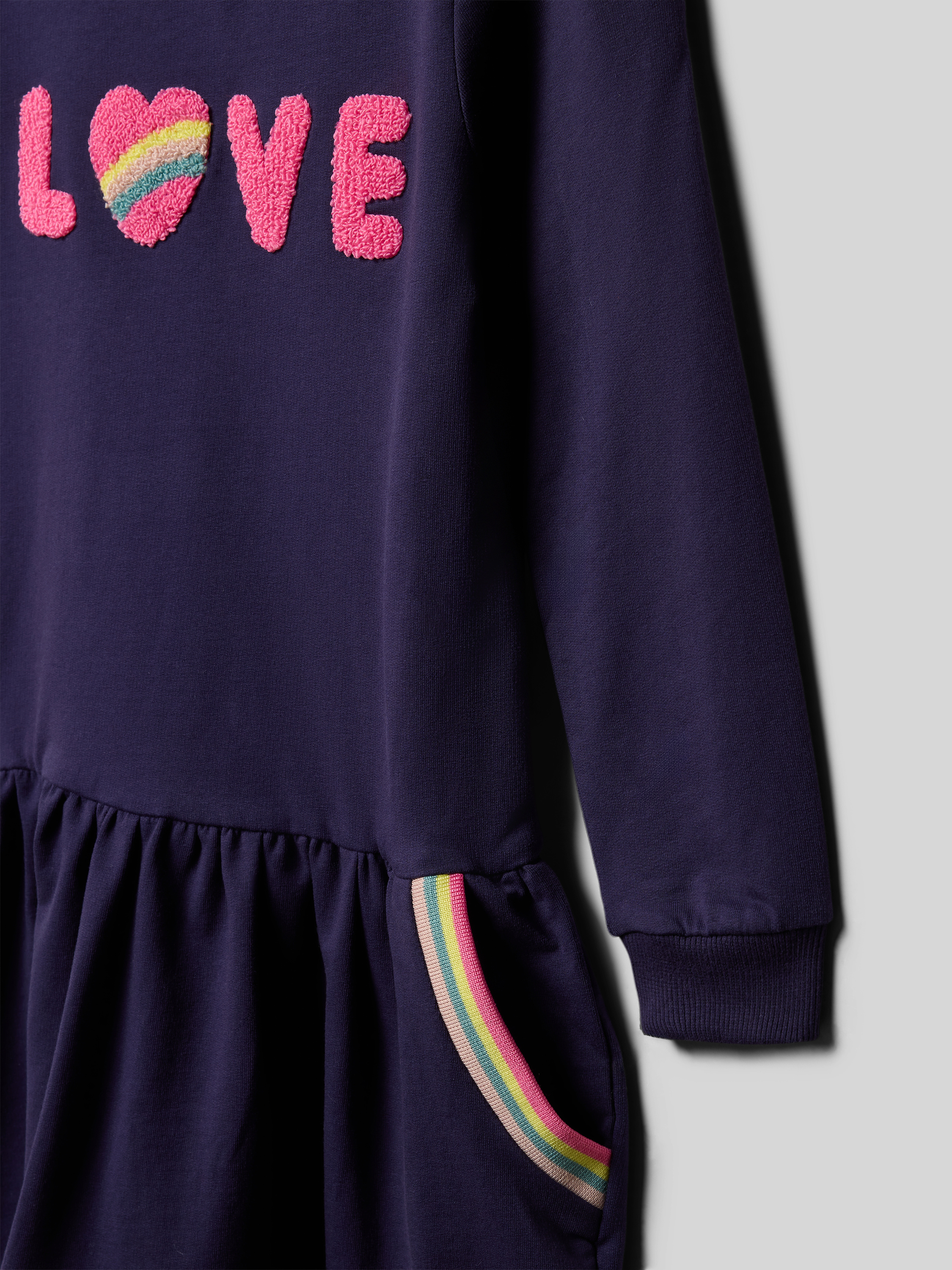 Regular fit jurk met statementapplicatie, model 'Elma' in marineblauw