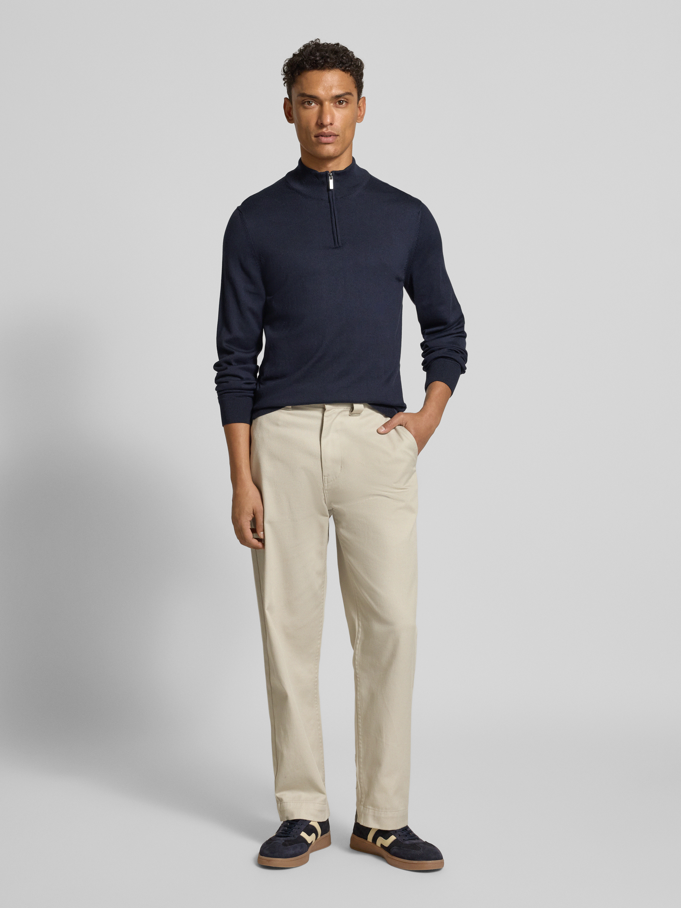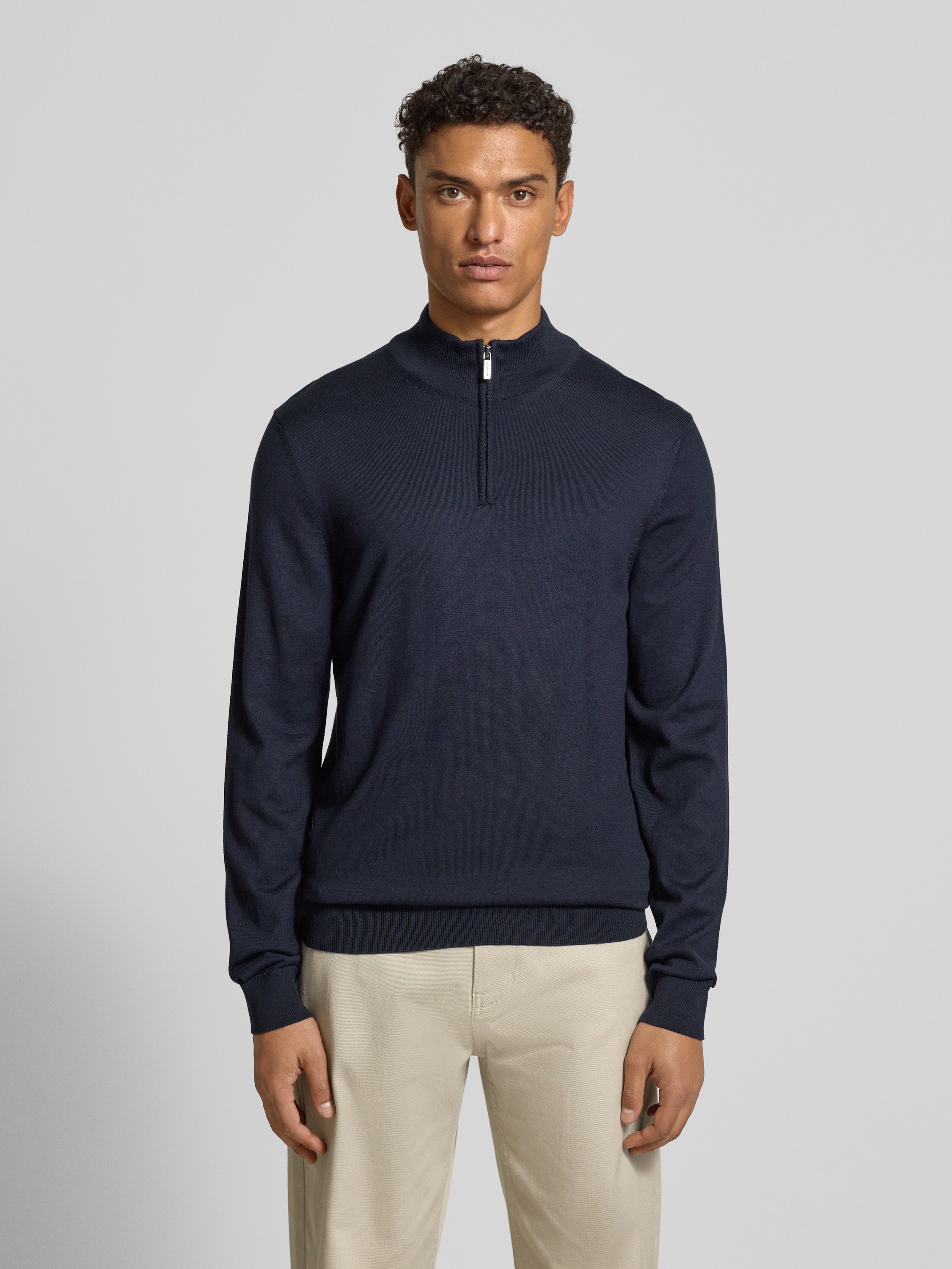 HECHTER PARISGebreide pulllover met opstaande kraag en ritssluiting in marineblauw