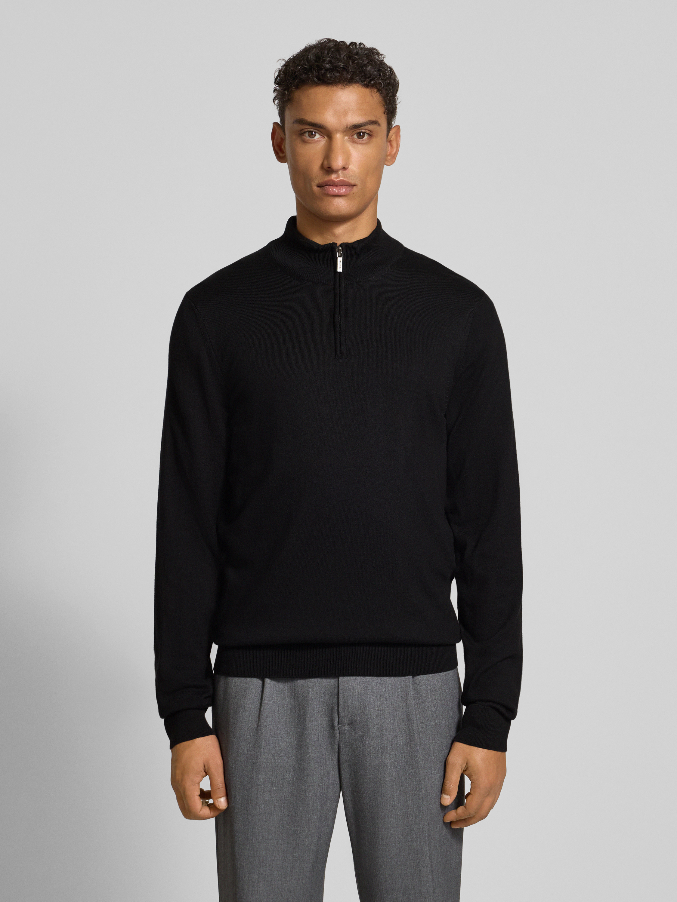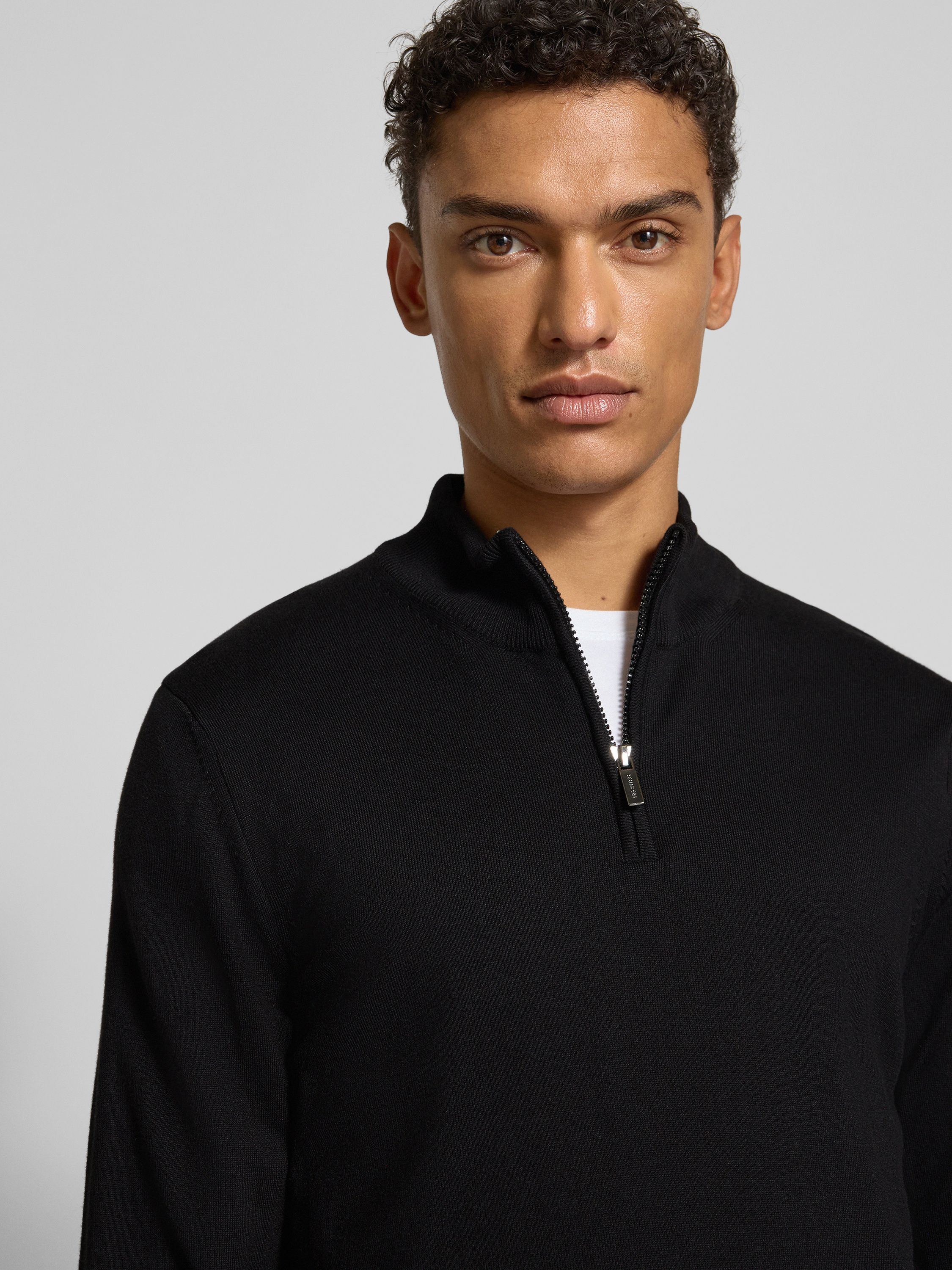 HECHTER PARISGebreide pulllover met opstaande kraag en ritssluiting in zwart