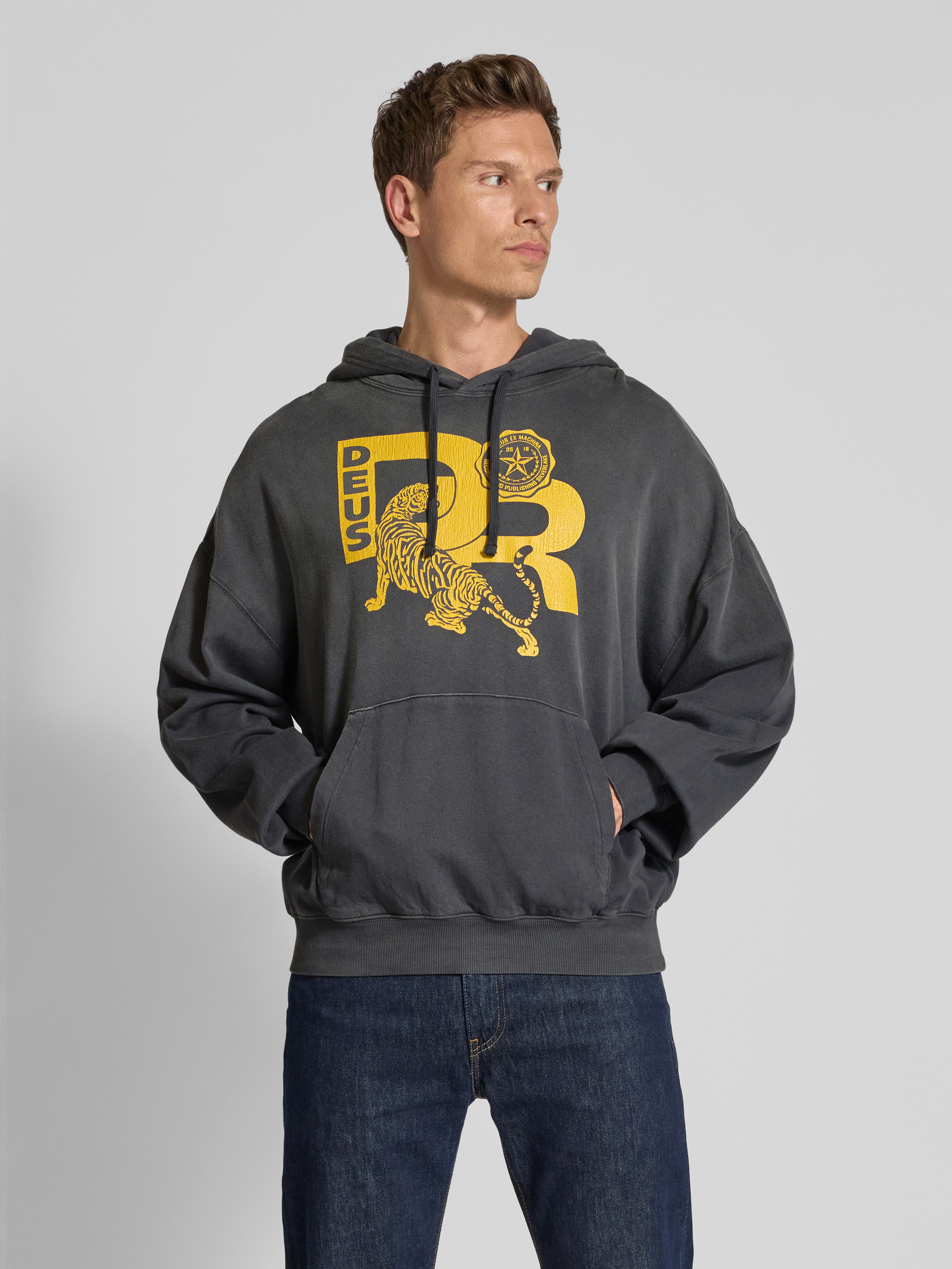 Hoodie met kangoeroezak en extra brede schouders in antraciet