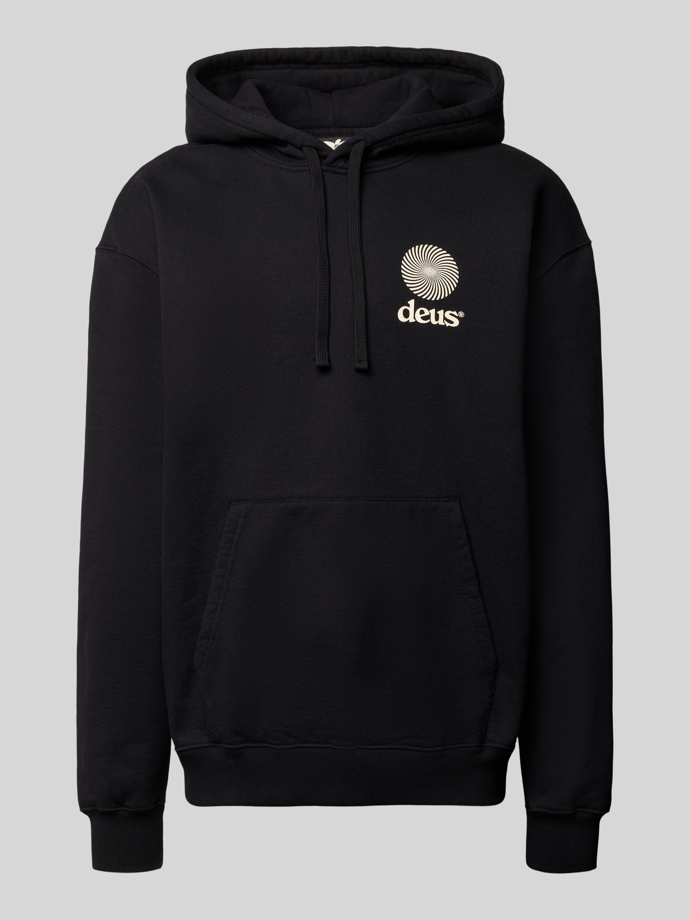 Relaxed fit hoodie met logoprint, model 'Strata' in zwart