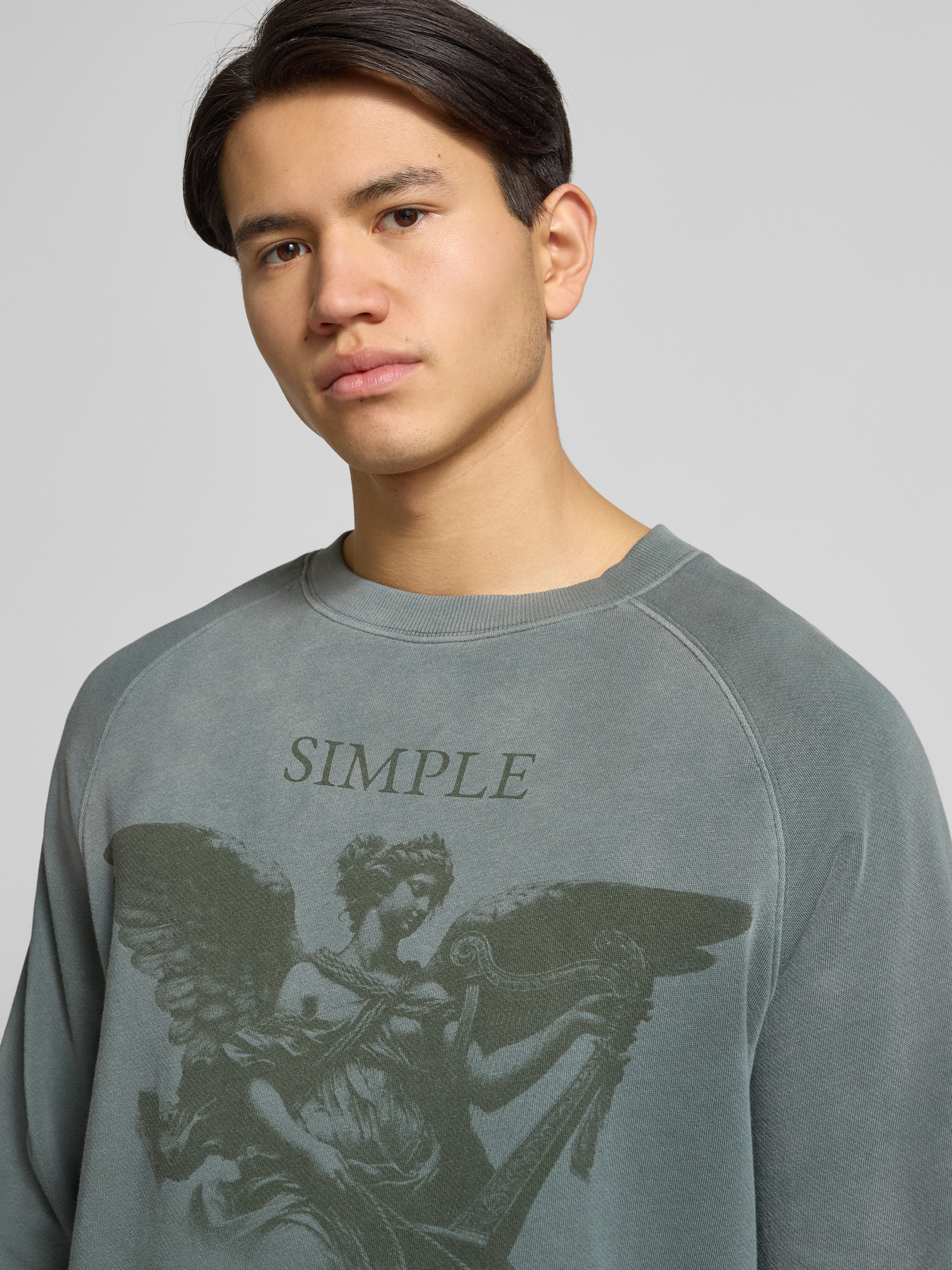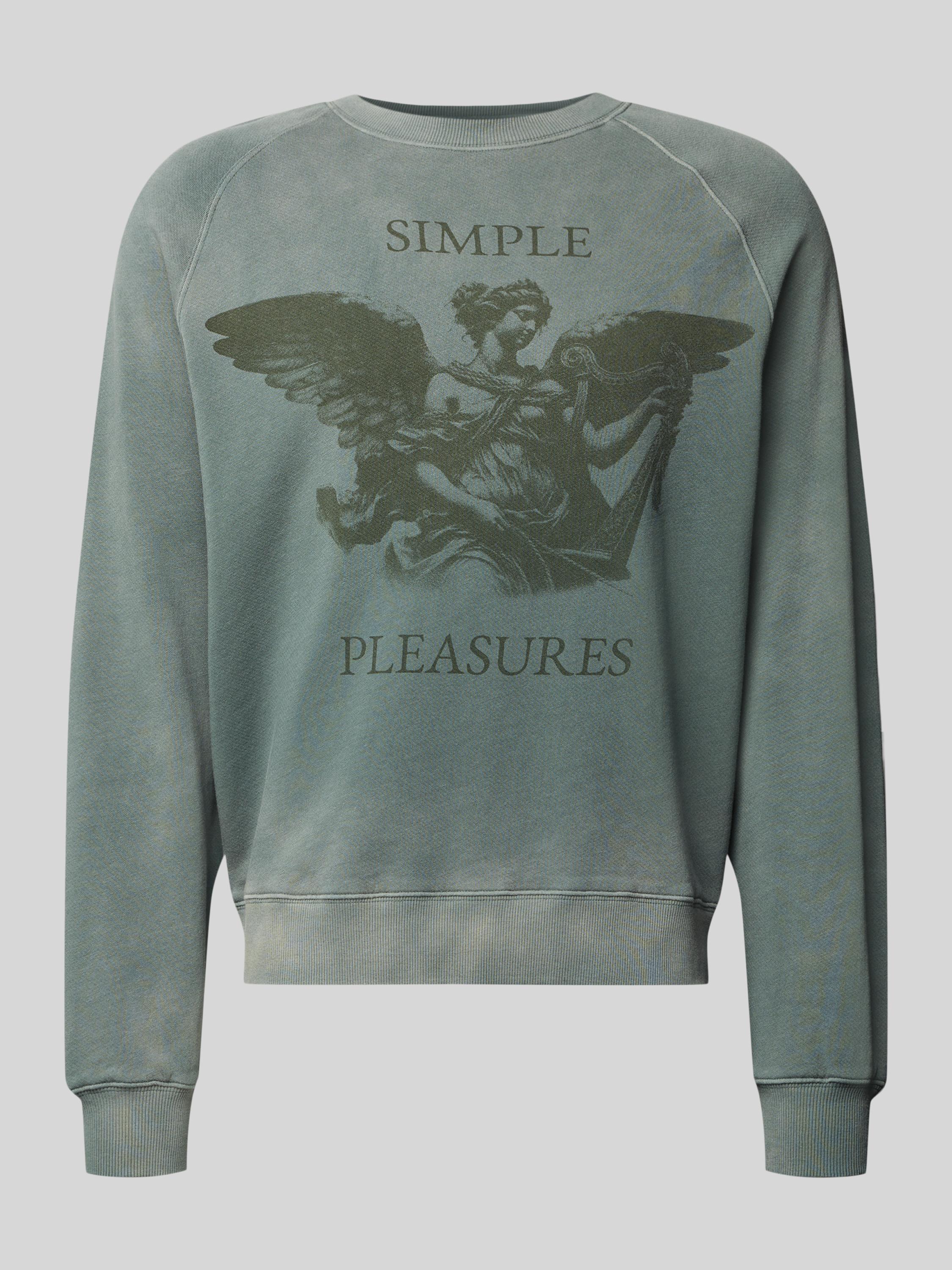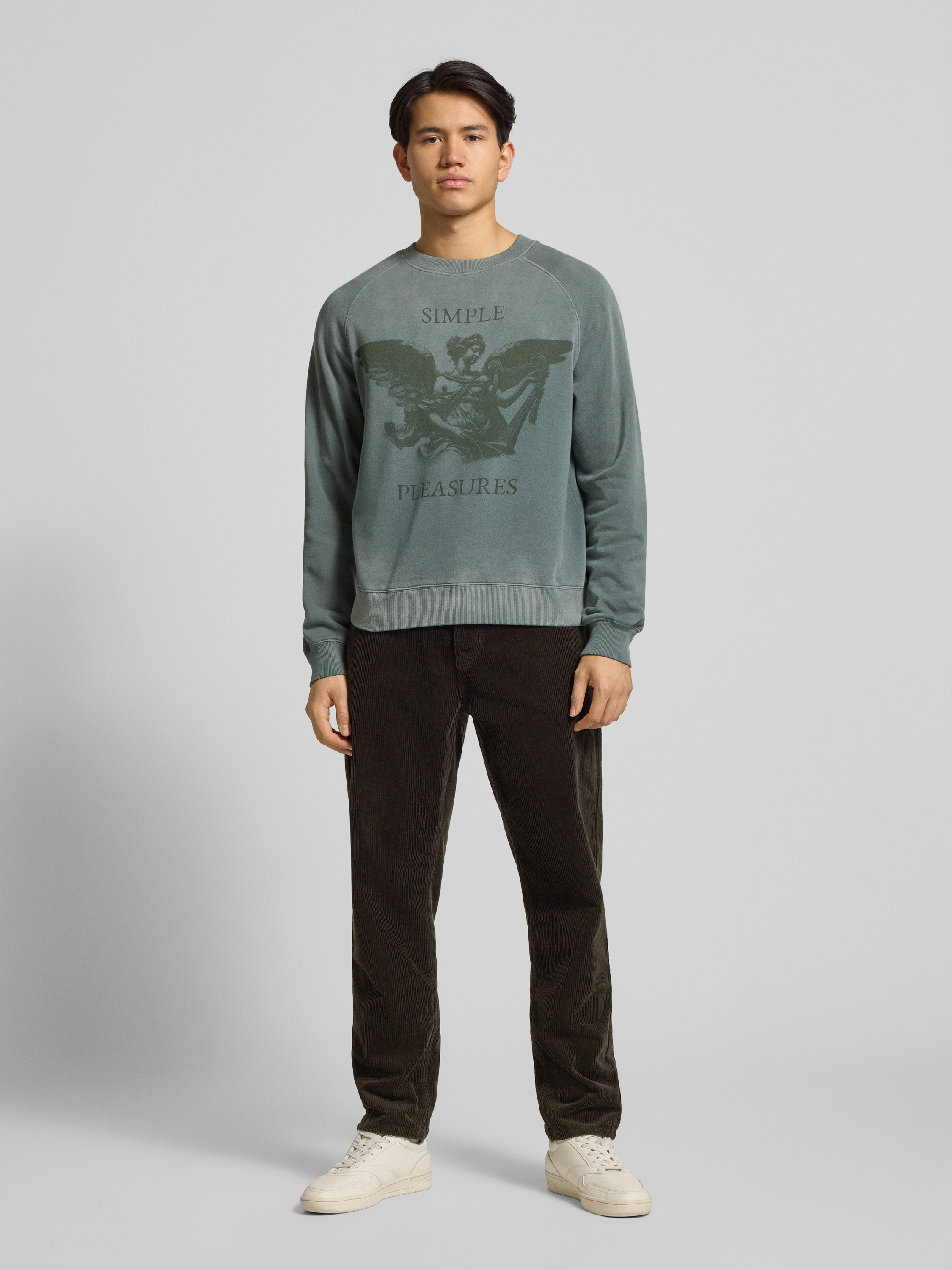 Sweatshirt met motiefprint en ronde hals in donkergroen