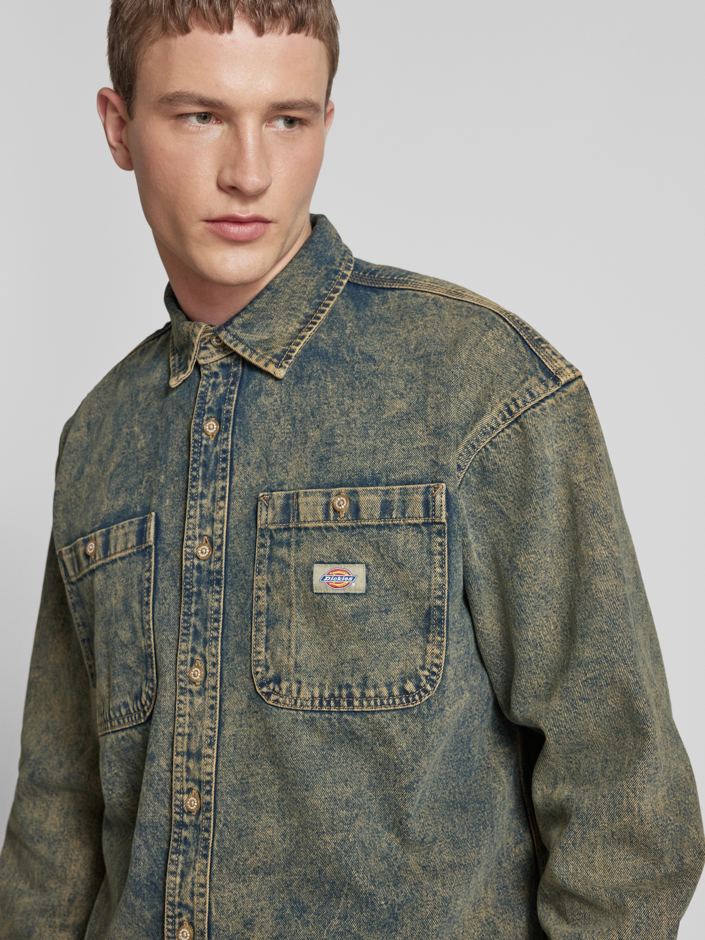 Relaxed fit jeansoverhemd met borstzakken, model 'HOUSTON' in jeansblauw