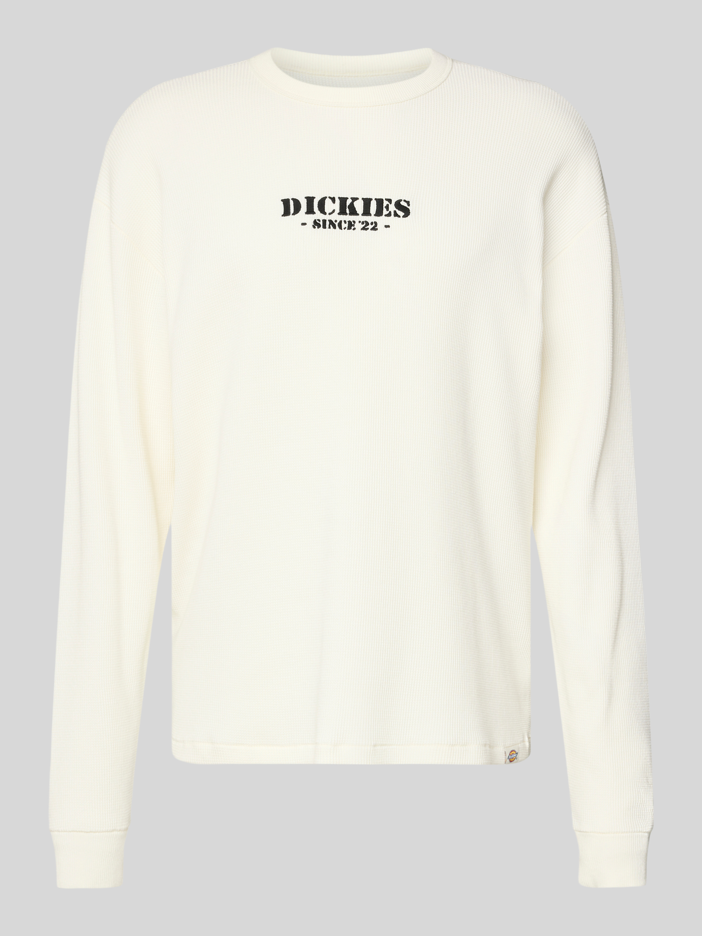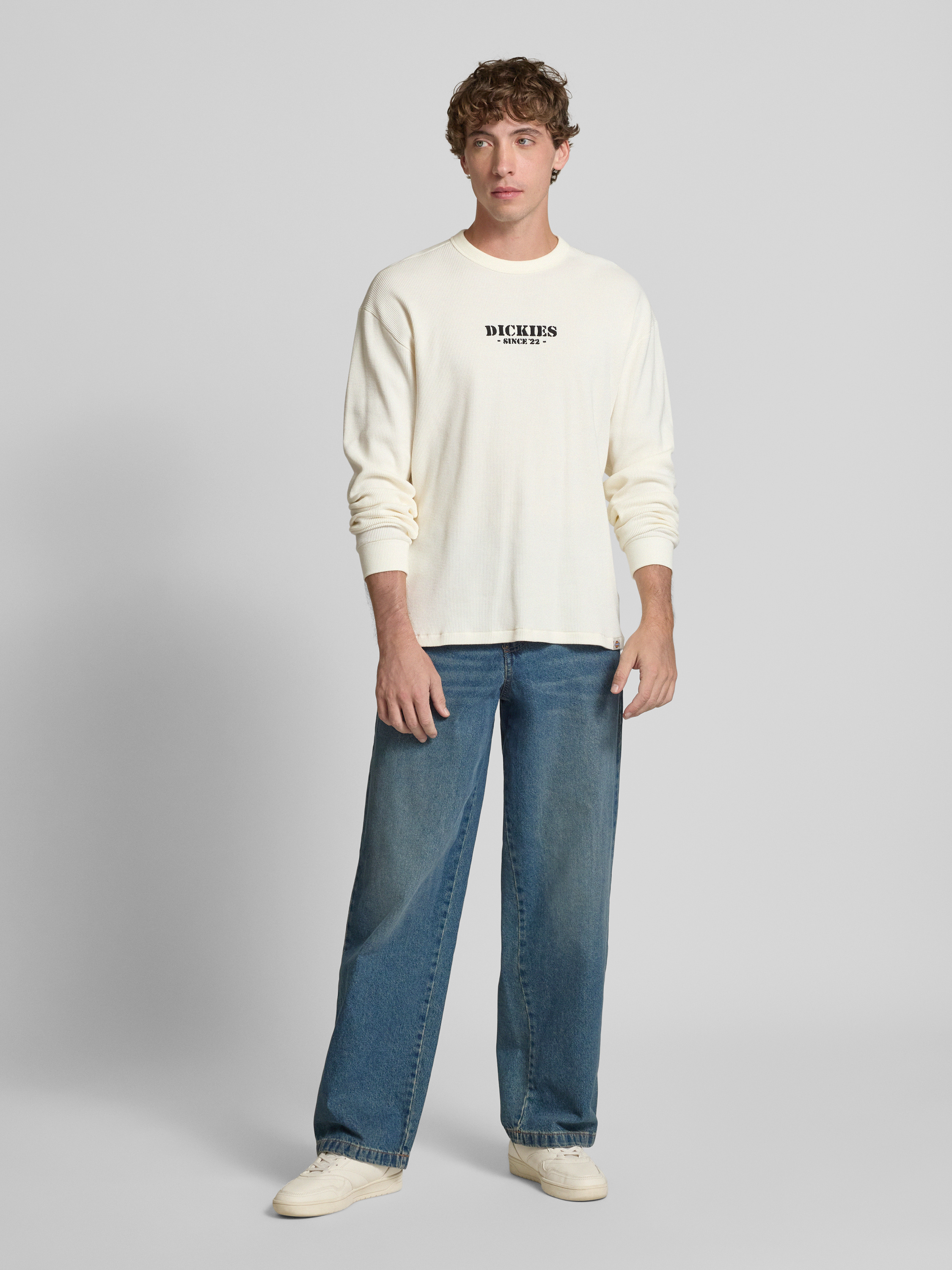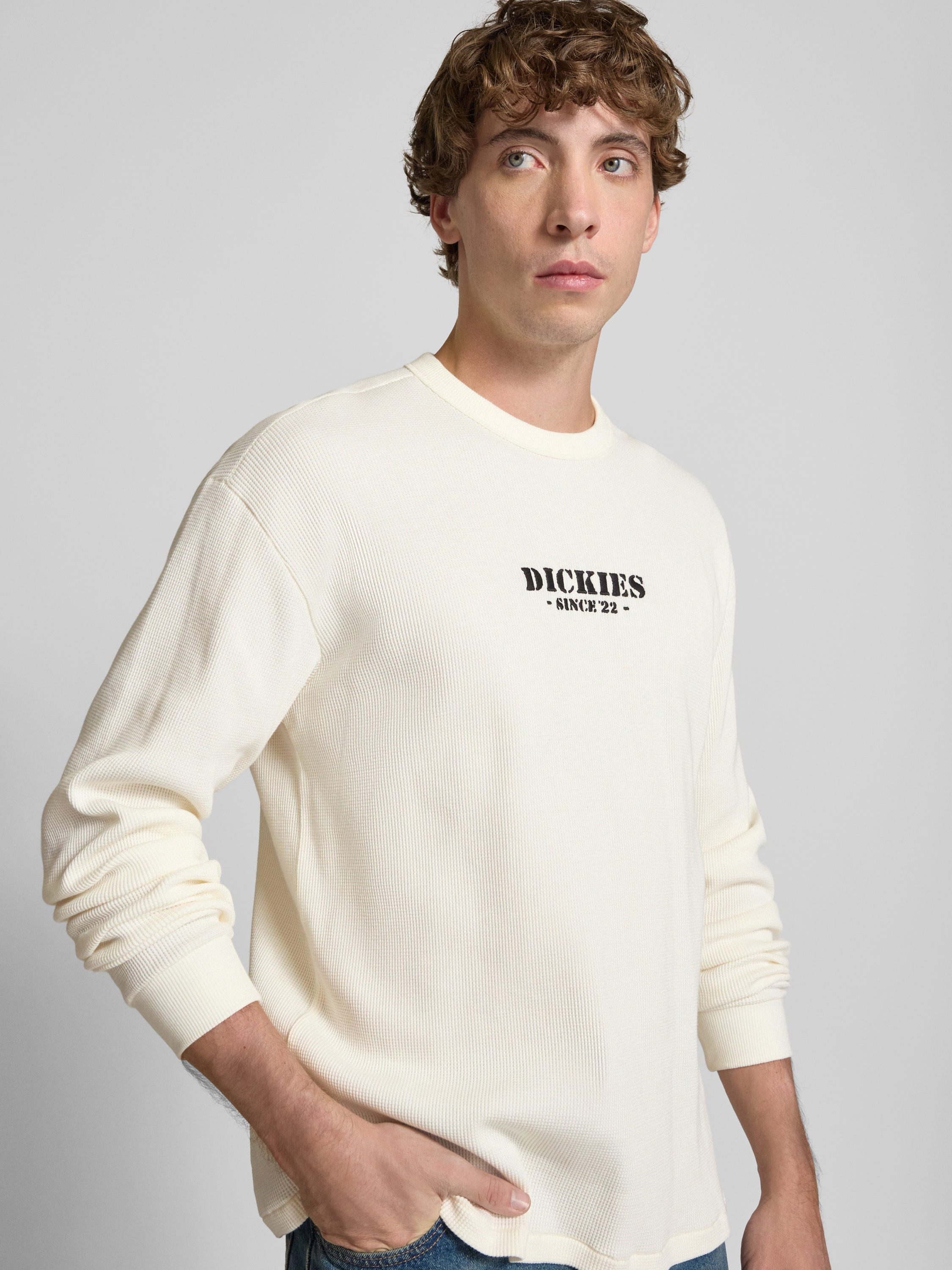 Shirt met lange mouwen, labelstitching en ronde hals in offwhite