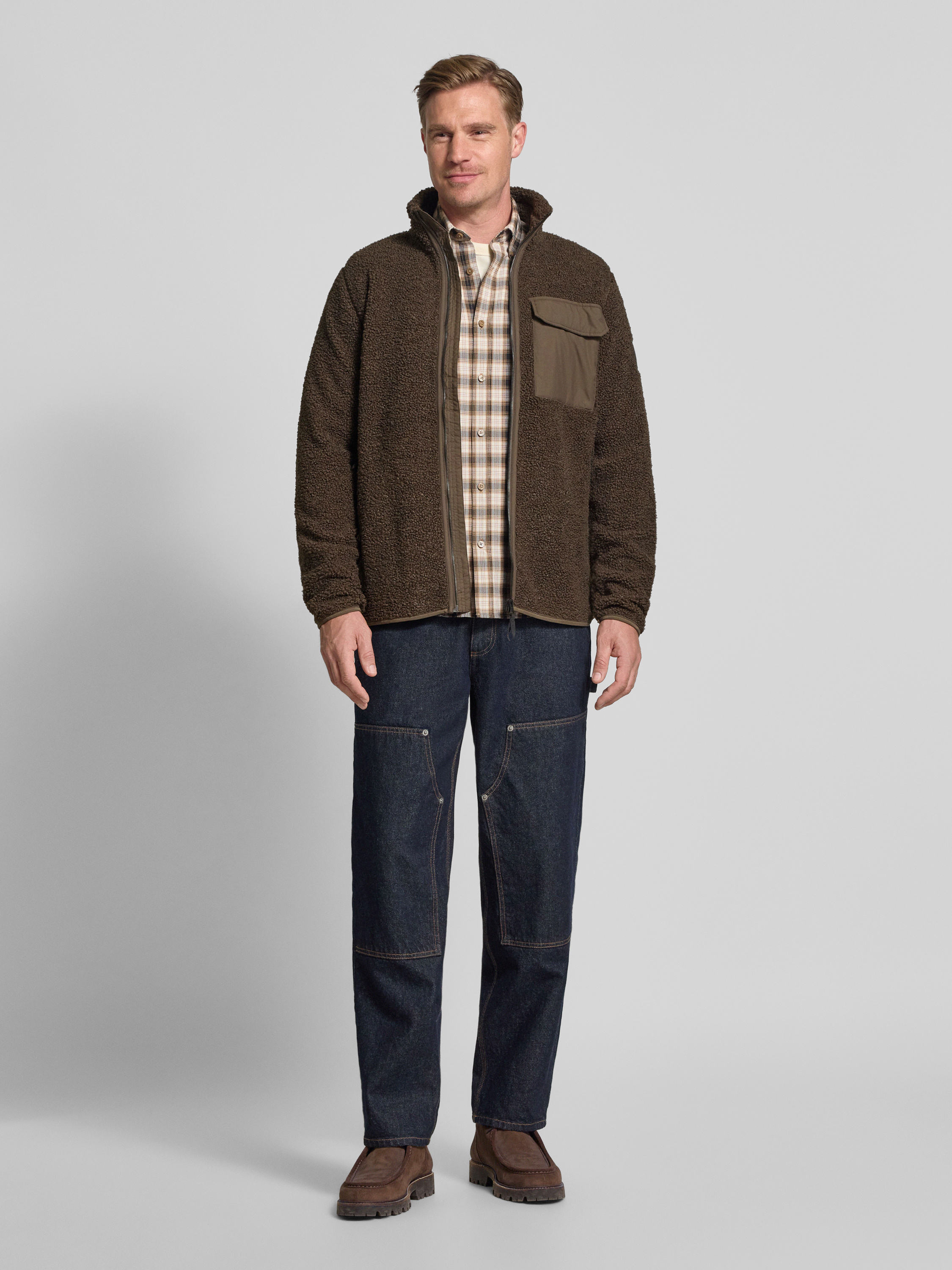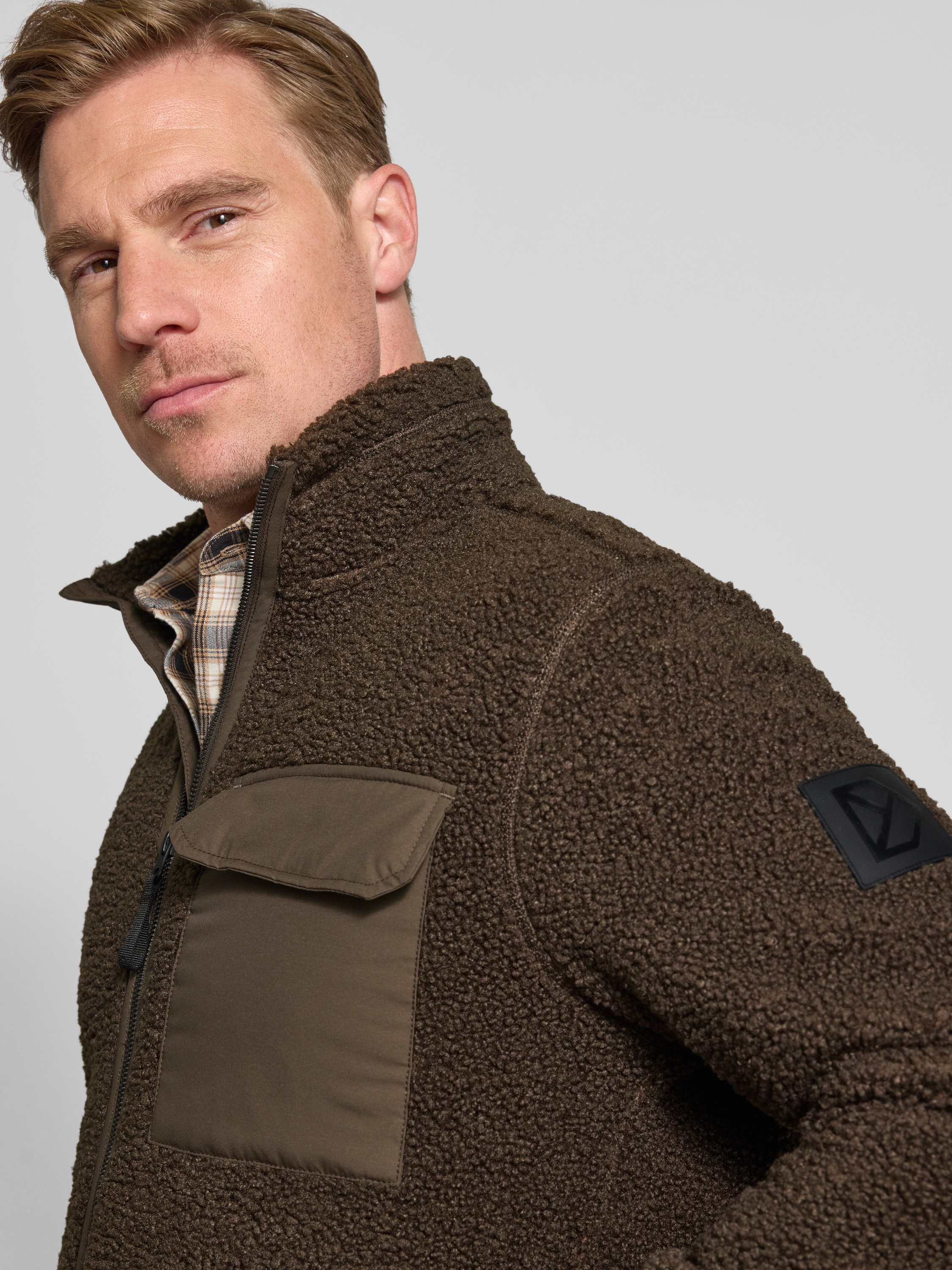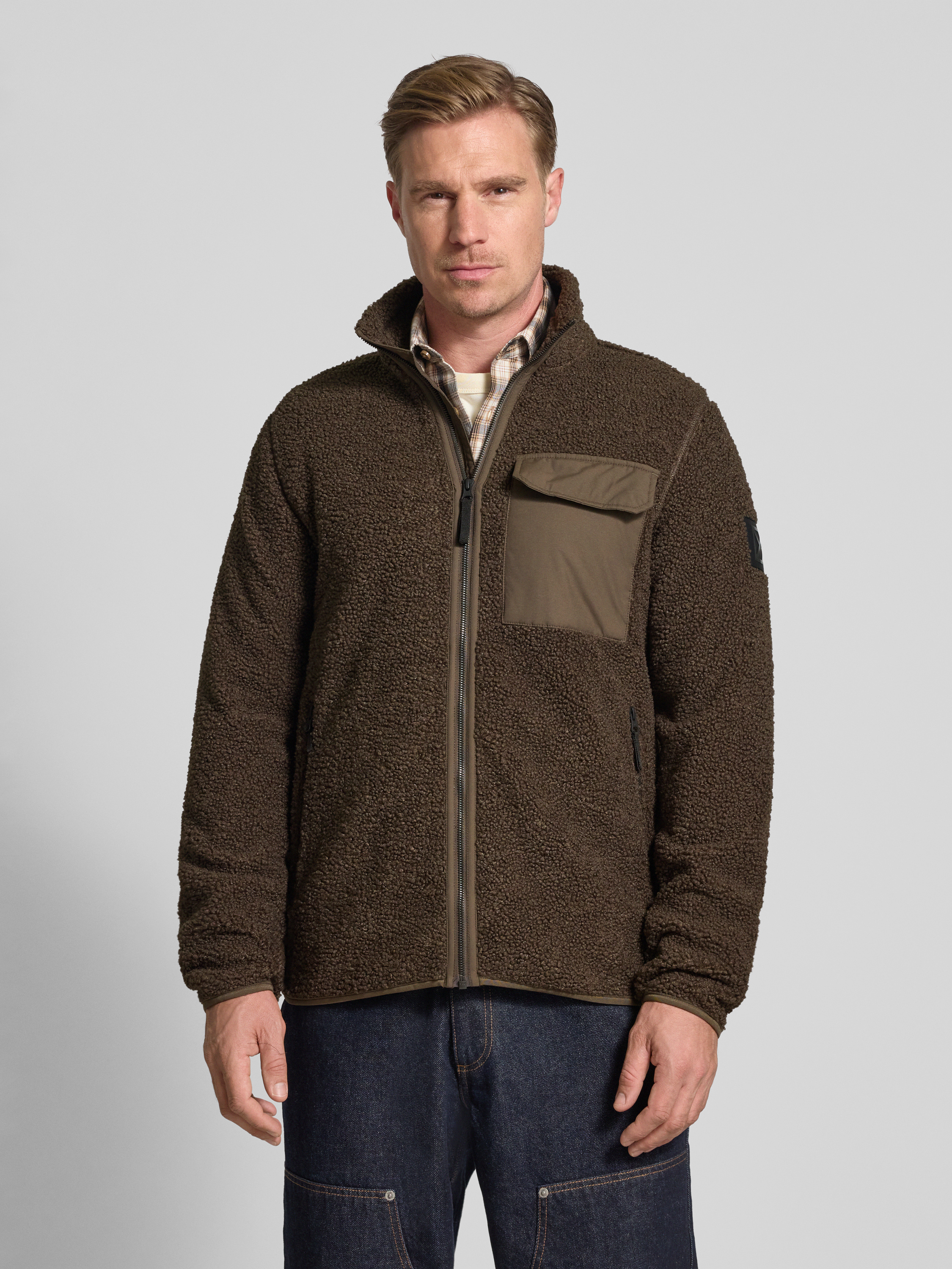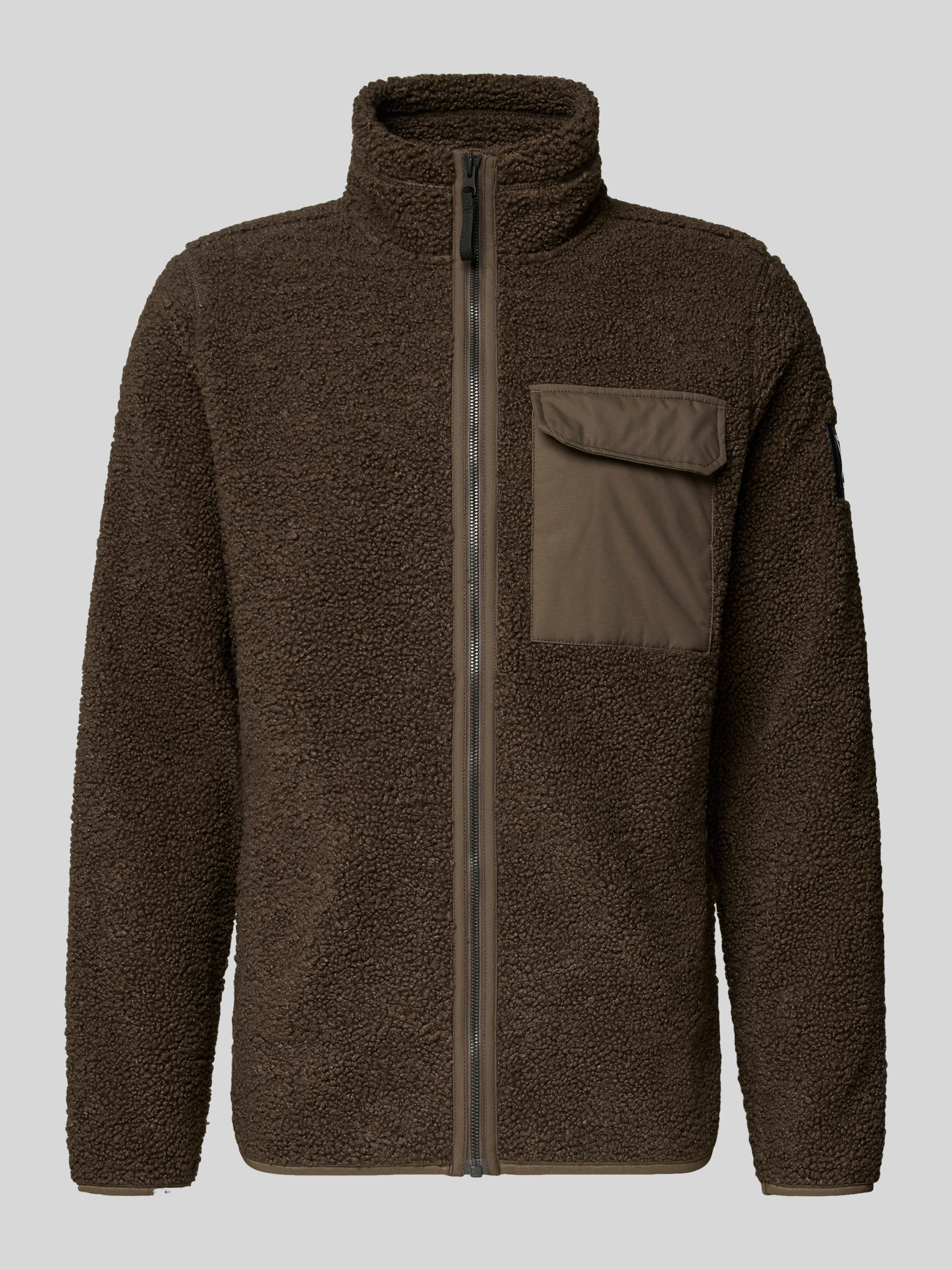 Fleecejack met borstzak, model 'PETER' in donkerbruin