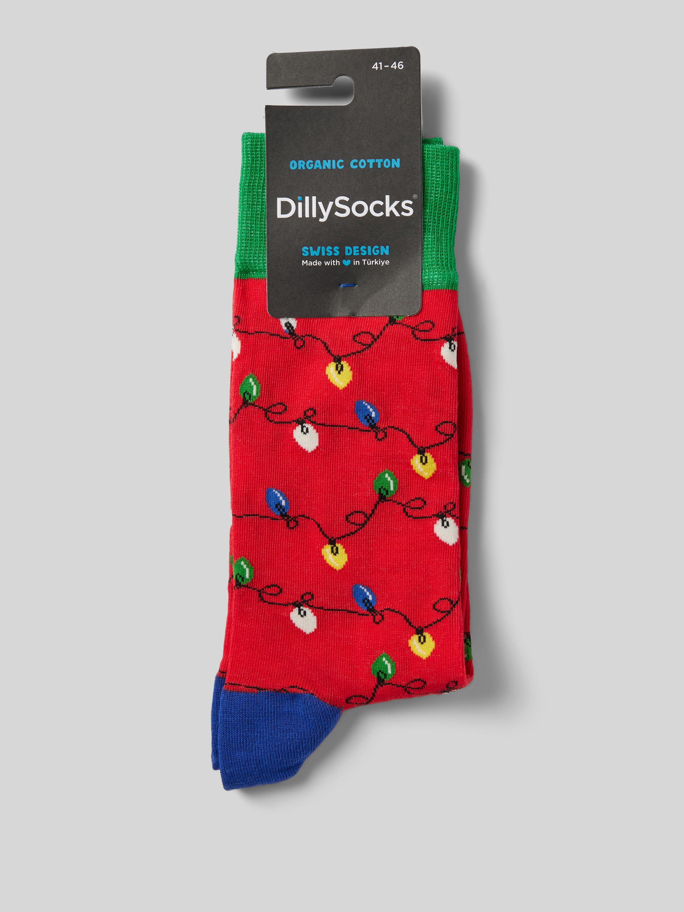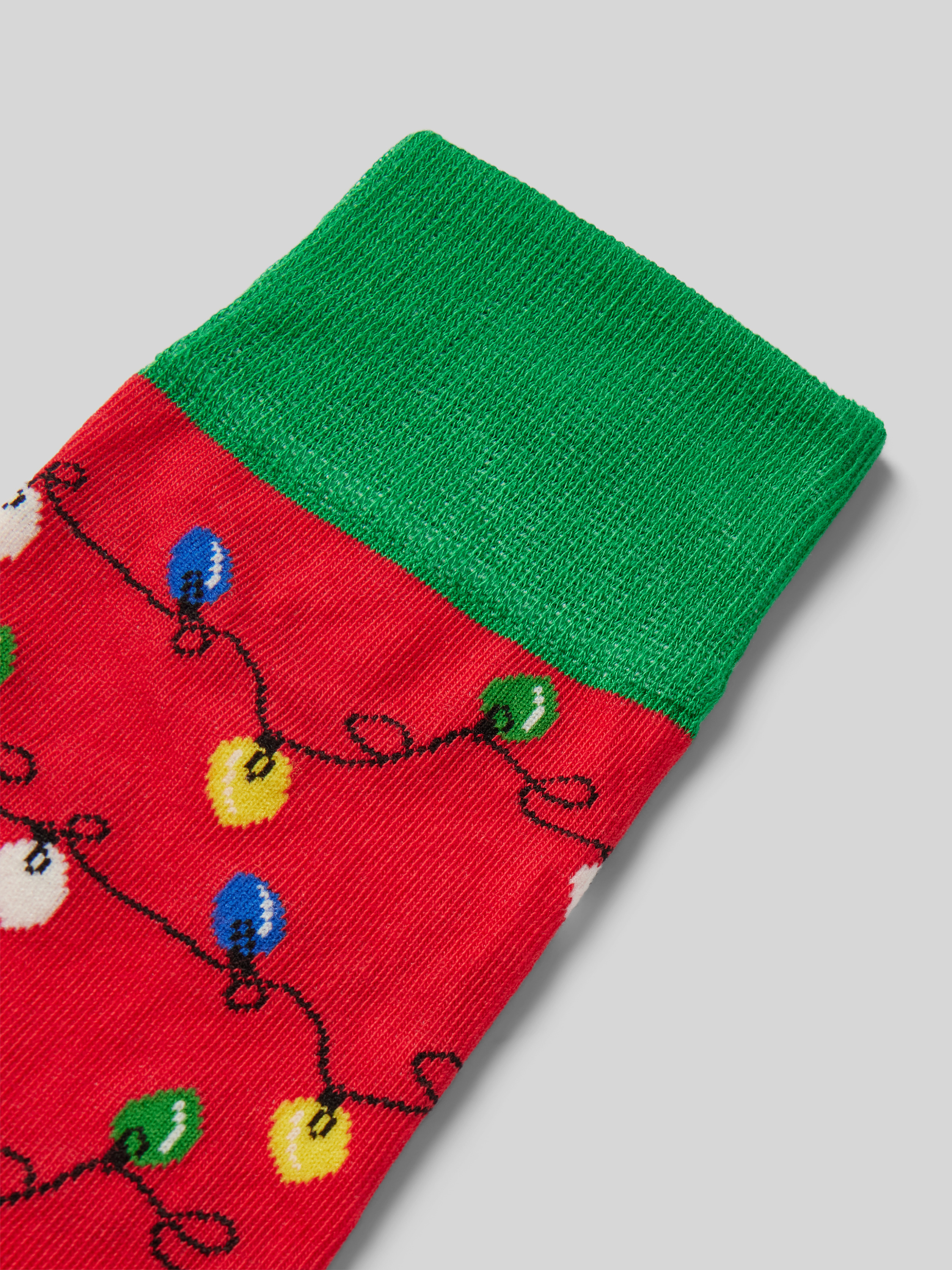 Sokken met motiefstitching, model 'Light It Down' in lichtrood