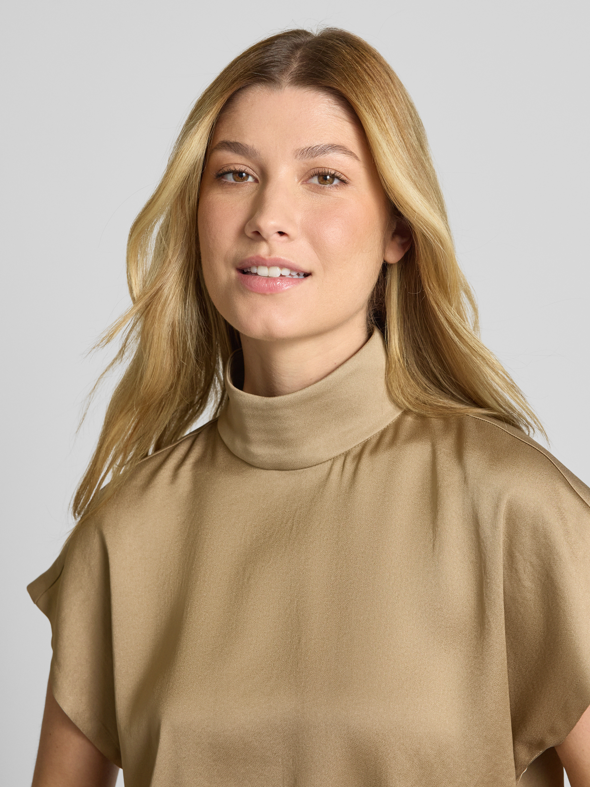 DrykornBlouseshirt met opstaande kraag, model 'ALARIA' in camel