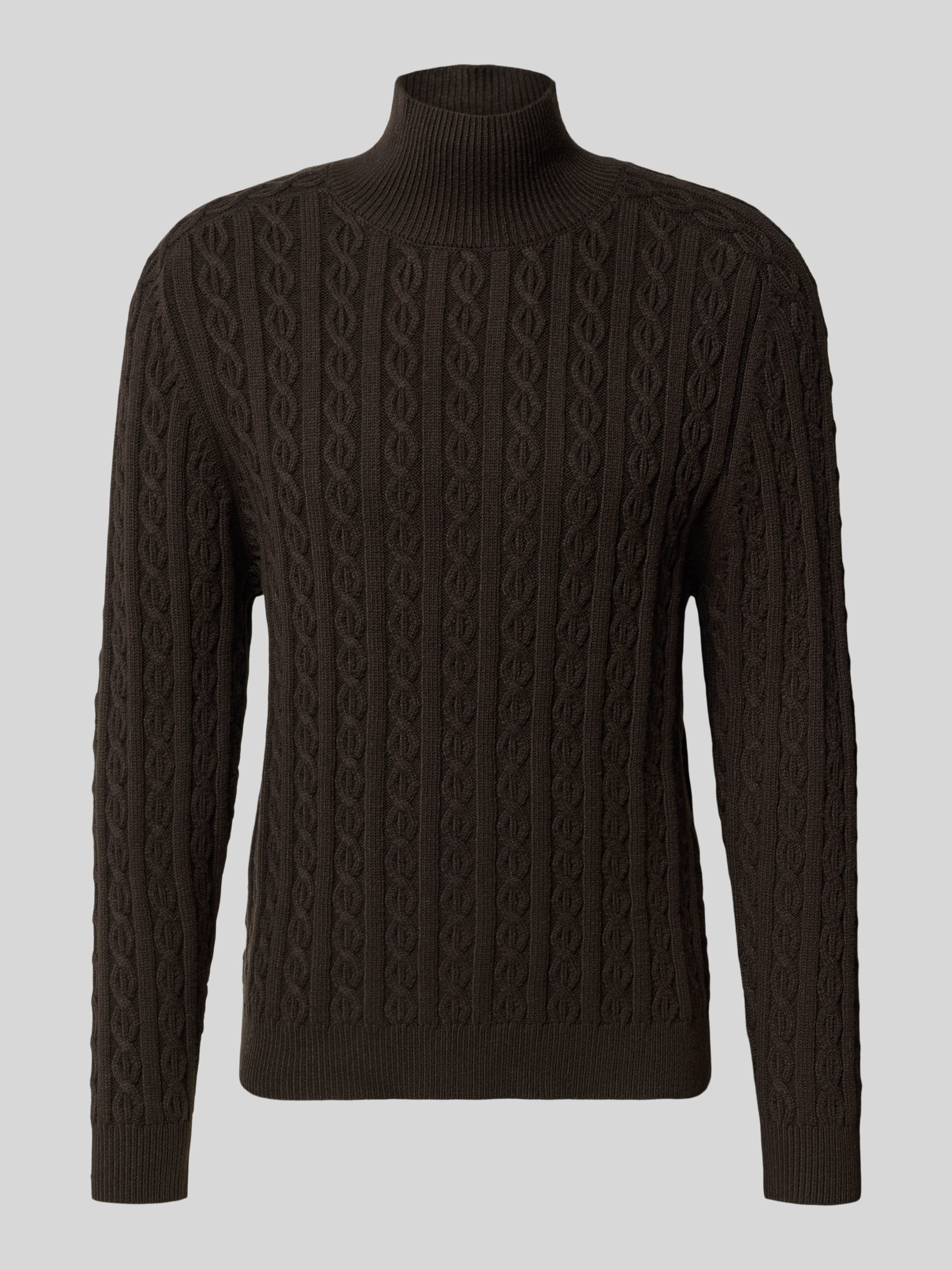DrykornGebreide pullover met opstaande kraag, model 'EDDARD' in donkerbruin