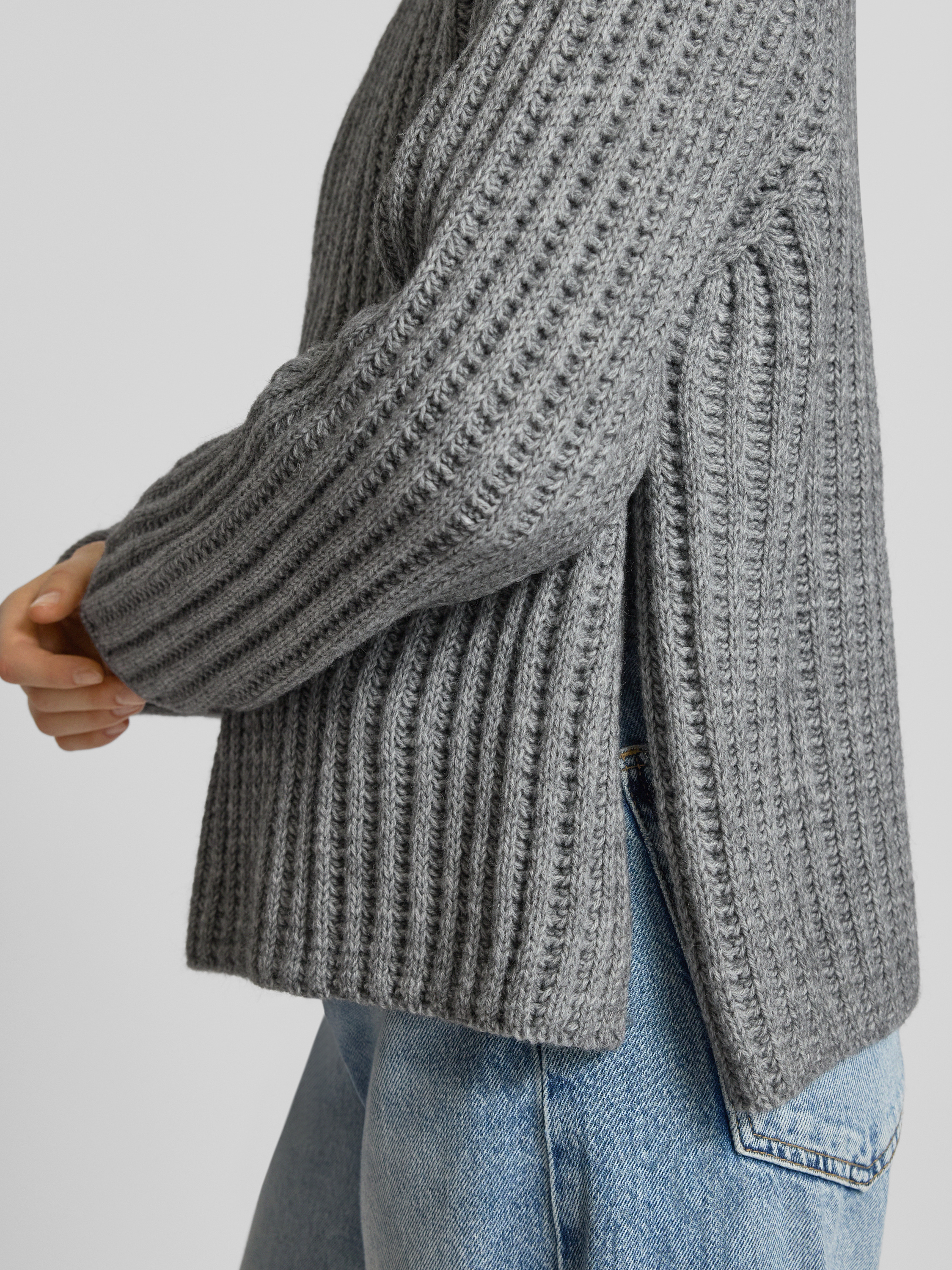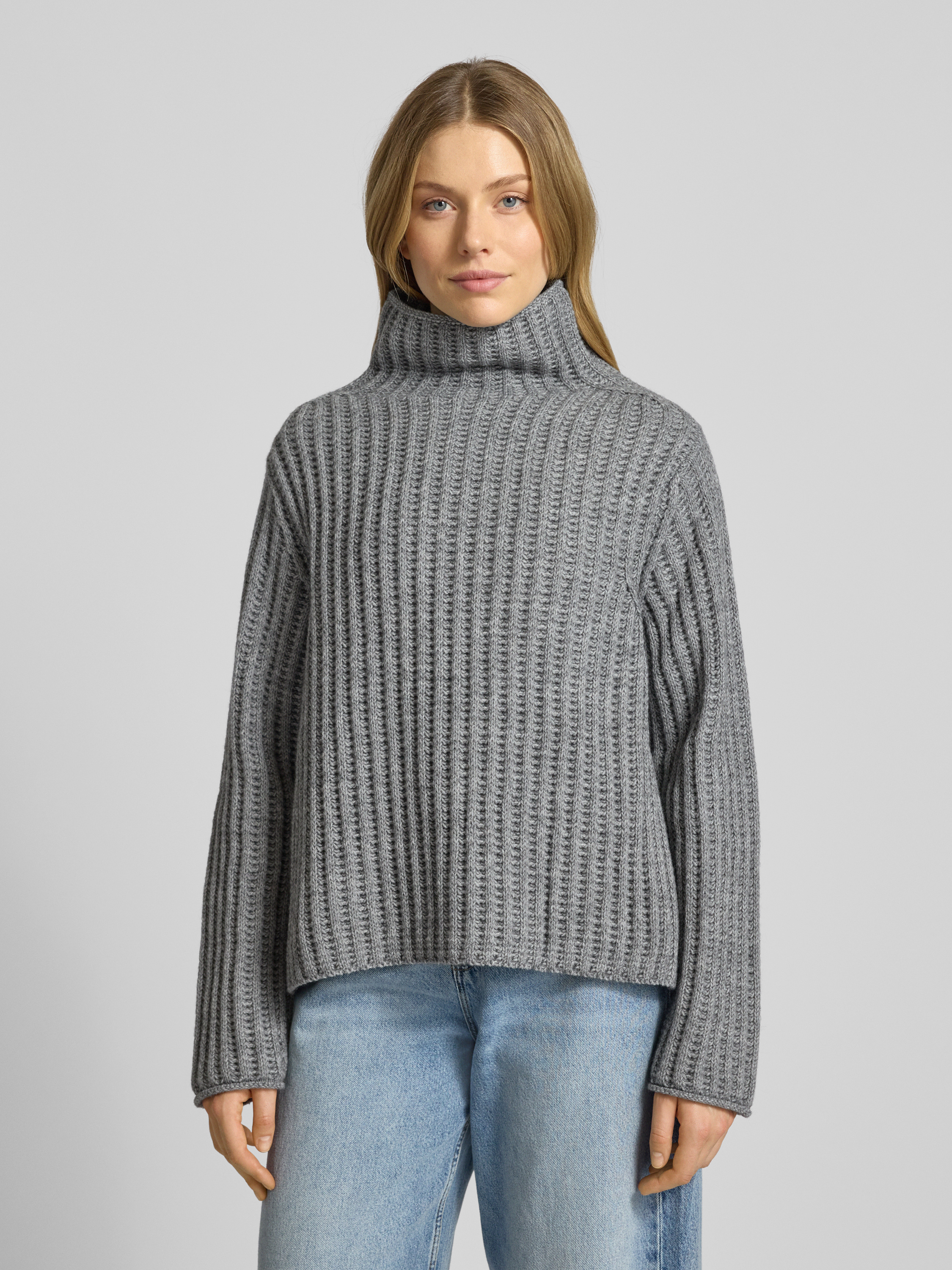 DrykornGebreide pullover met opstaande kraag, model 'VARISA' in middengrijs gemêleerd