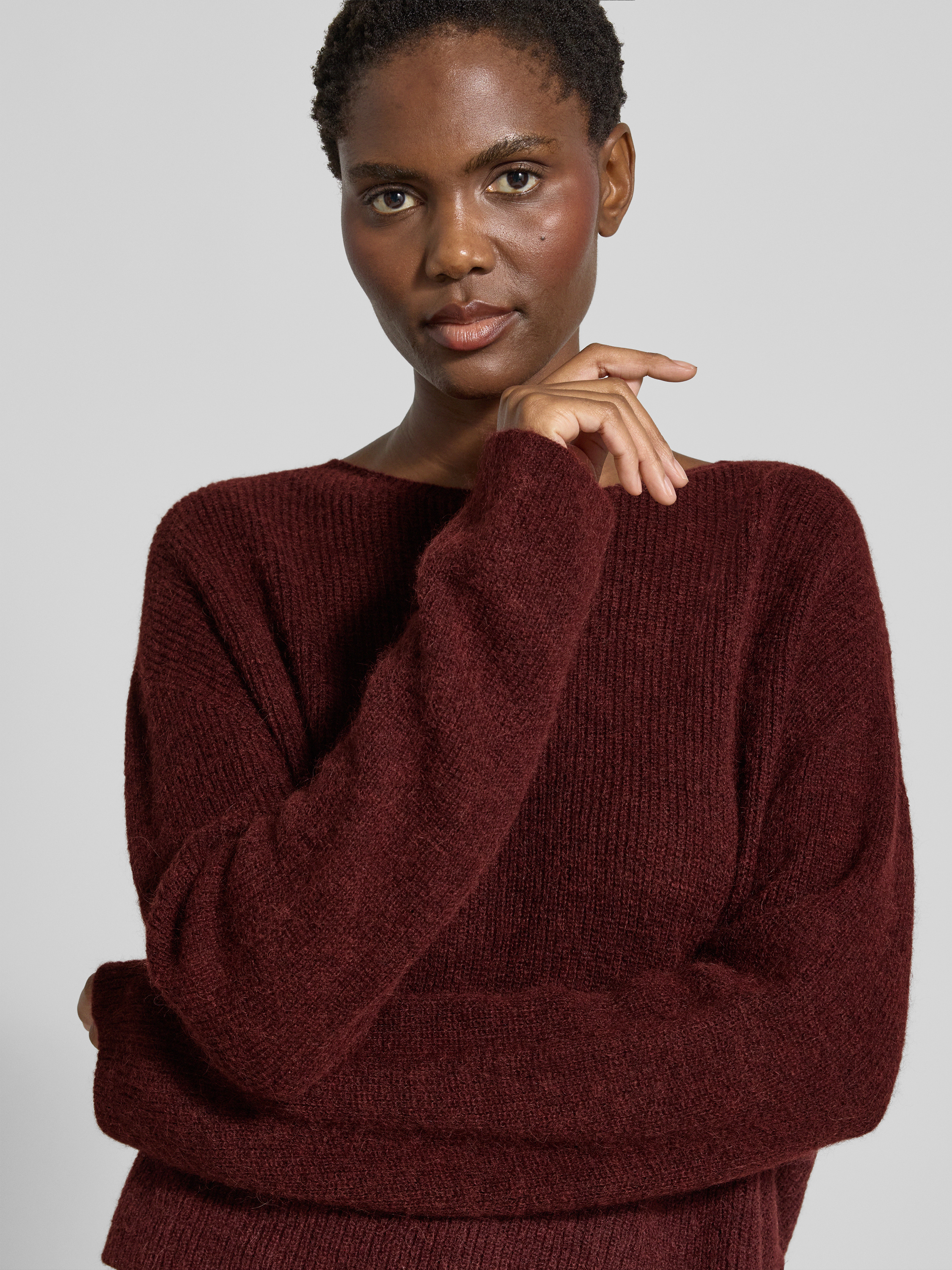 DrykornGebreide pullover met ronde hals, model 'IMENY' in bordeaux