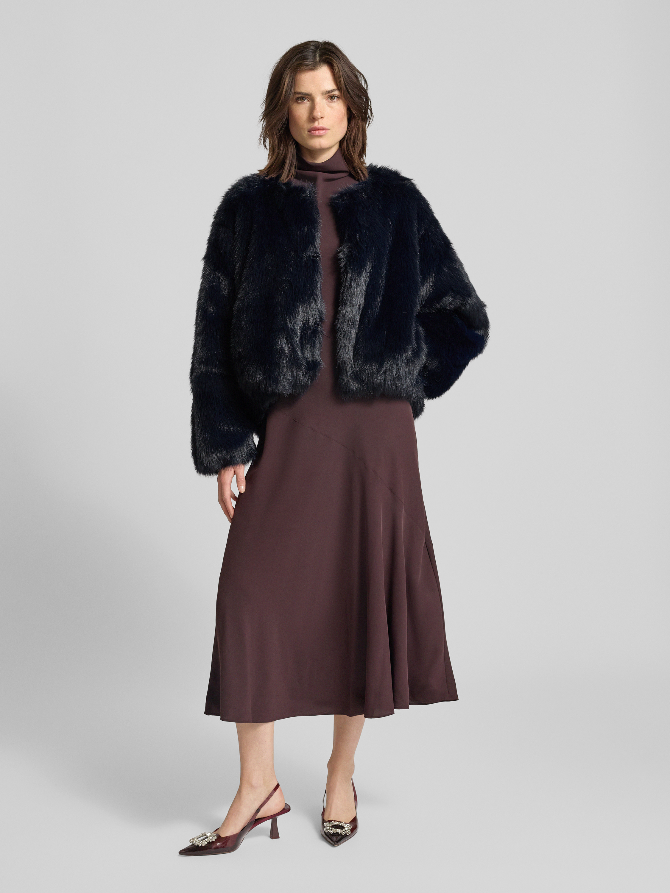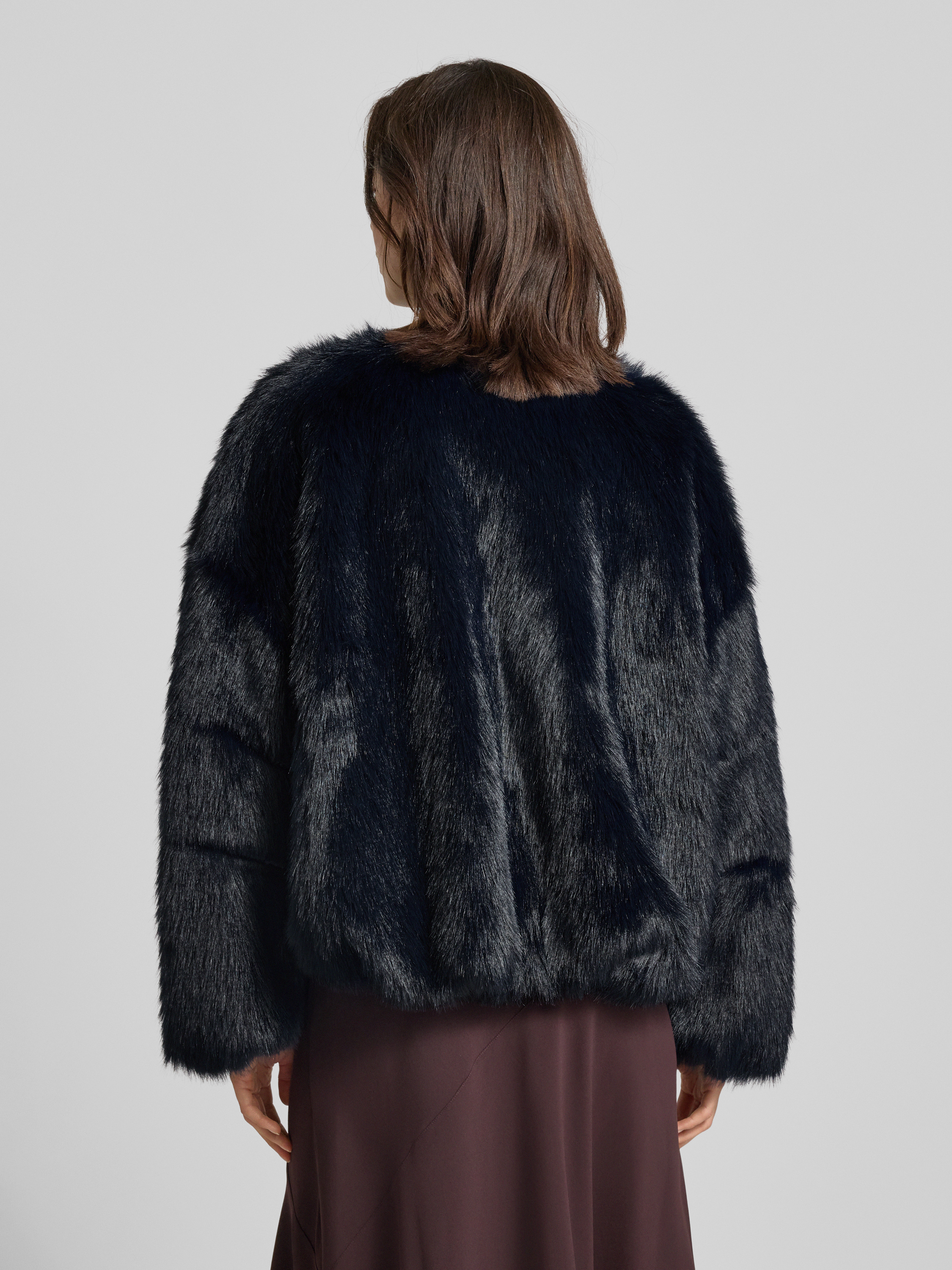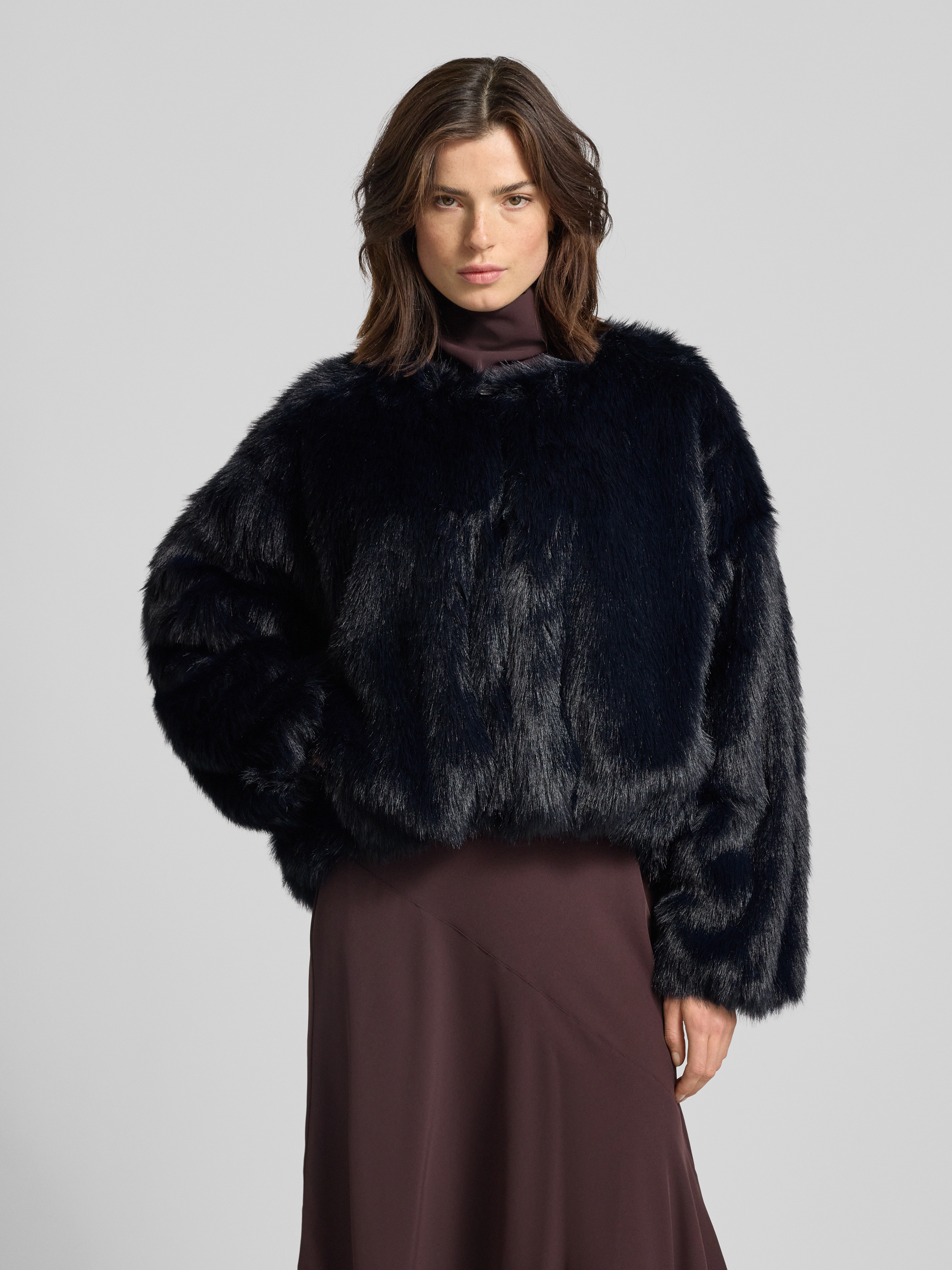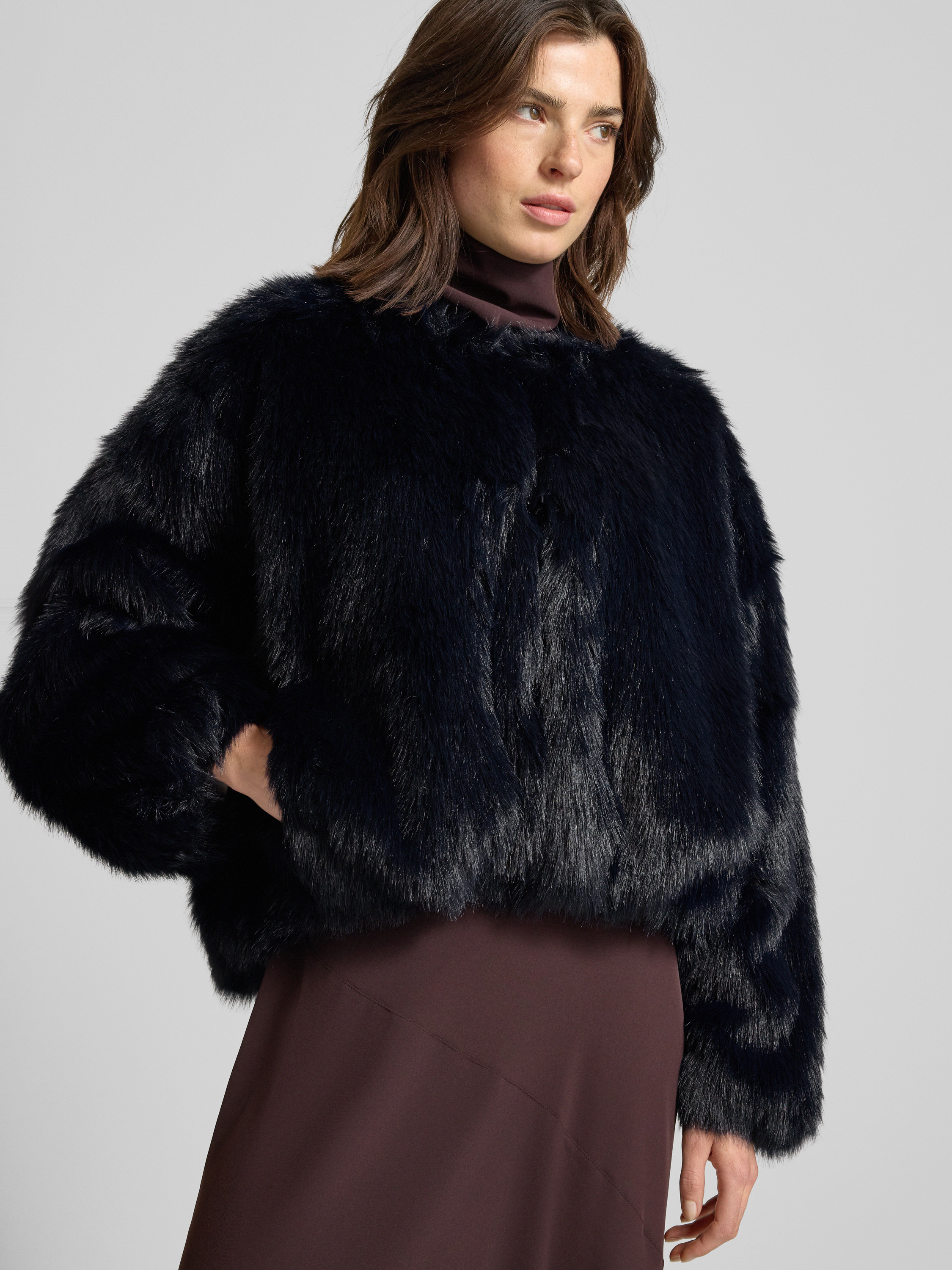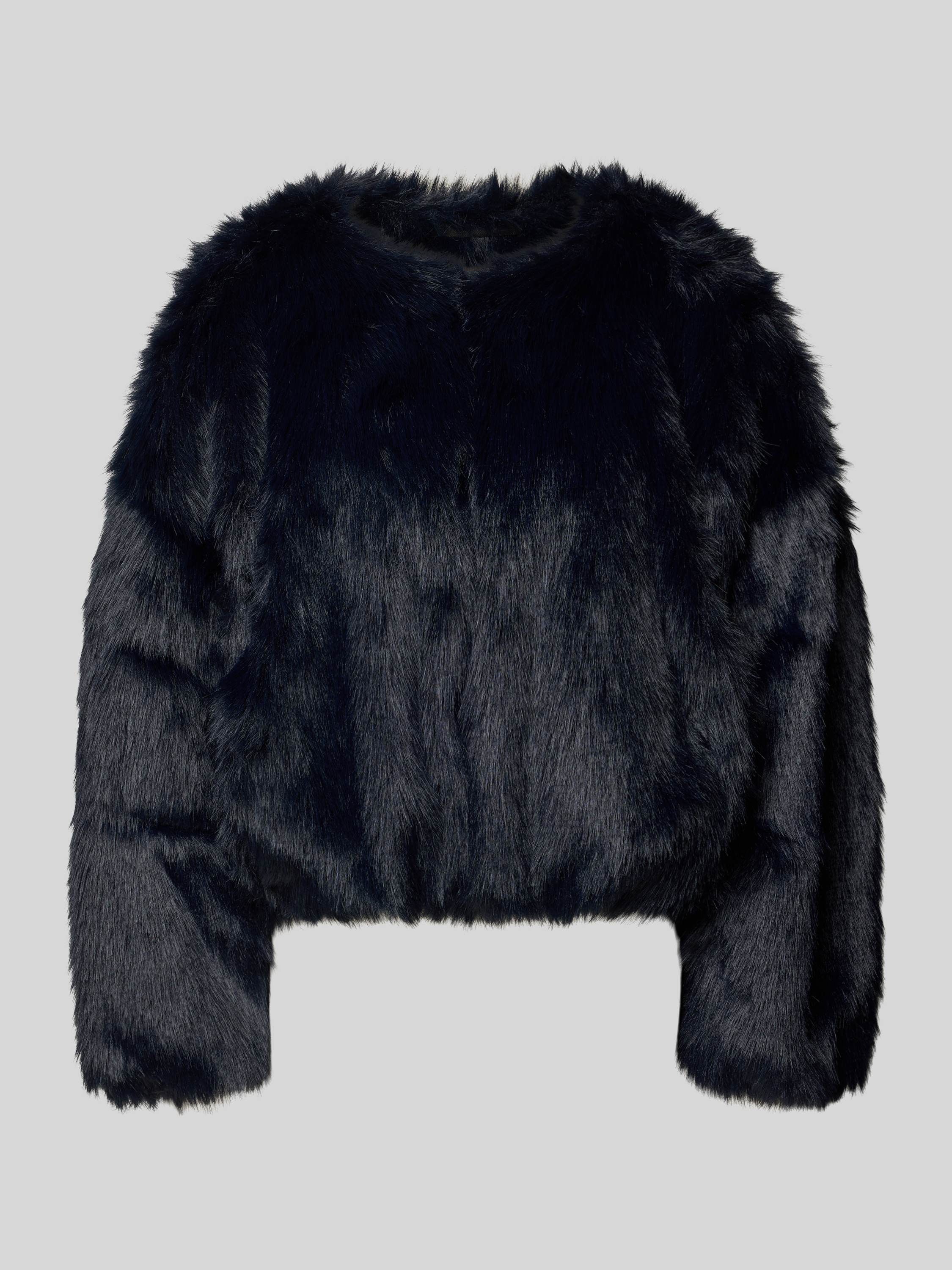 DrykornJack van imitatiebont met ronde hals, model 'KILLCHURN' in marineblauw