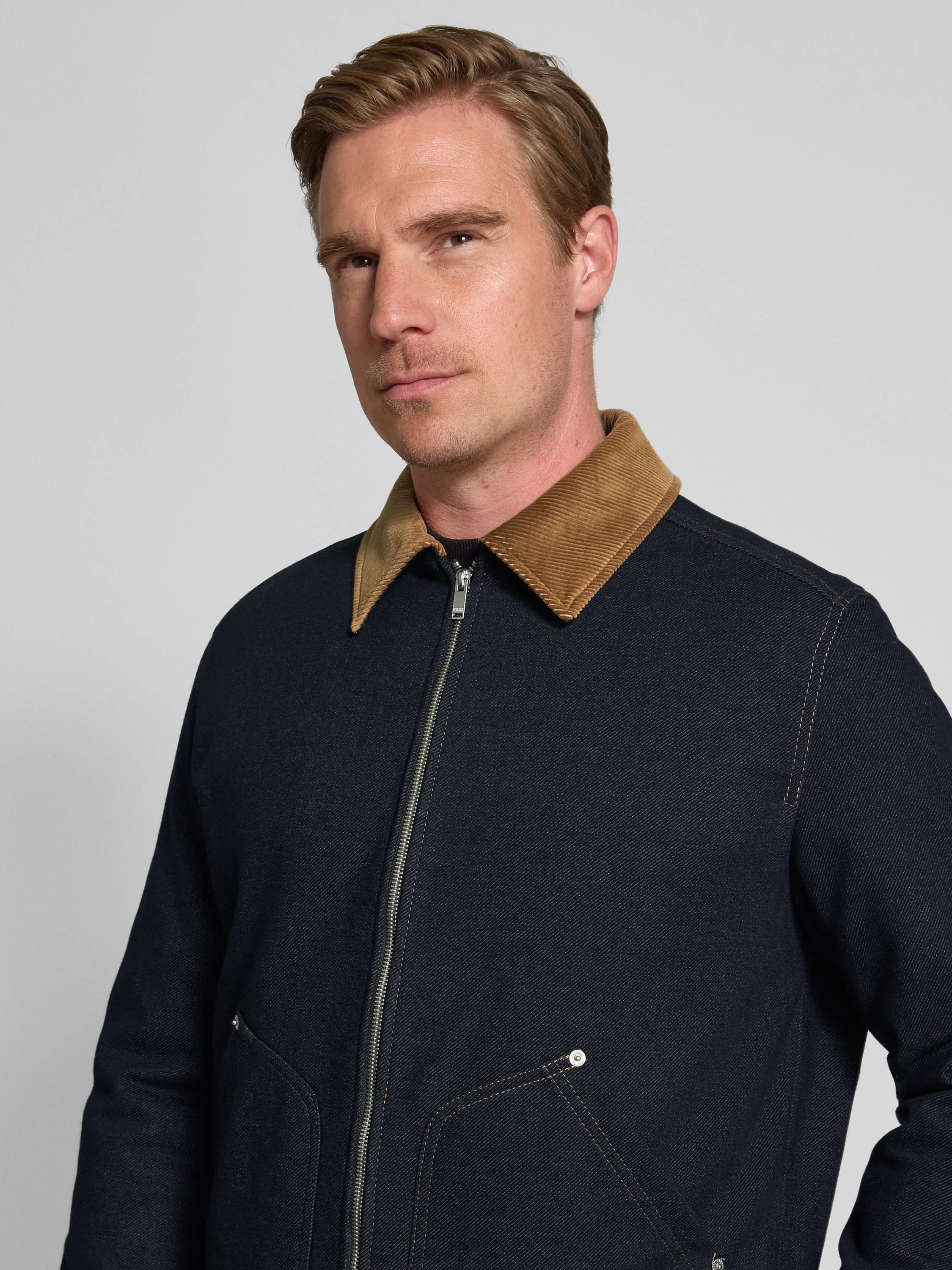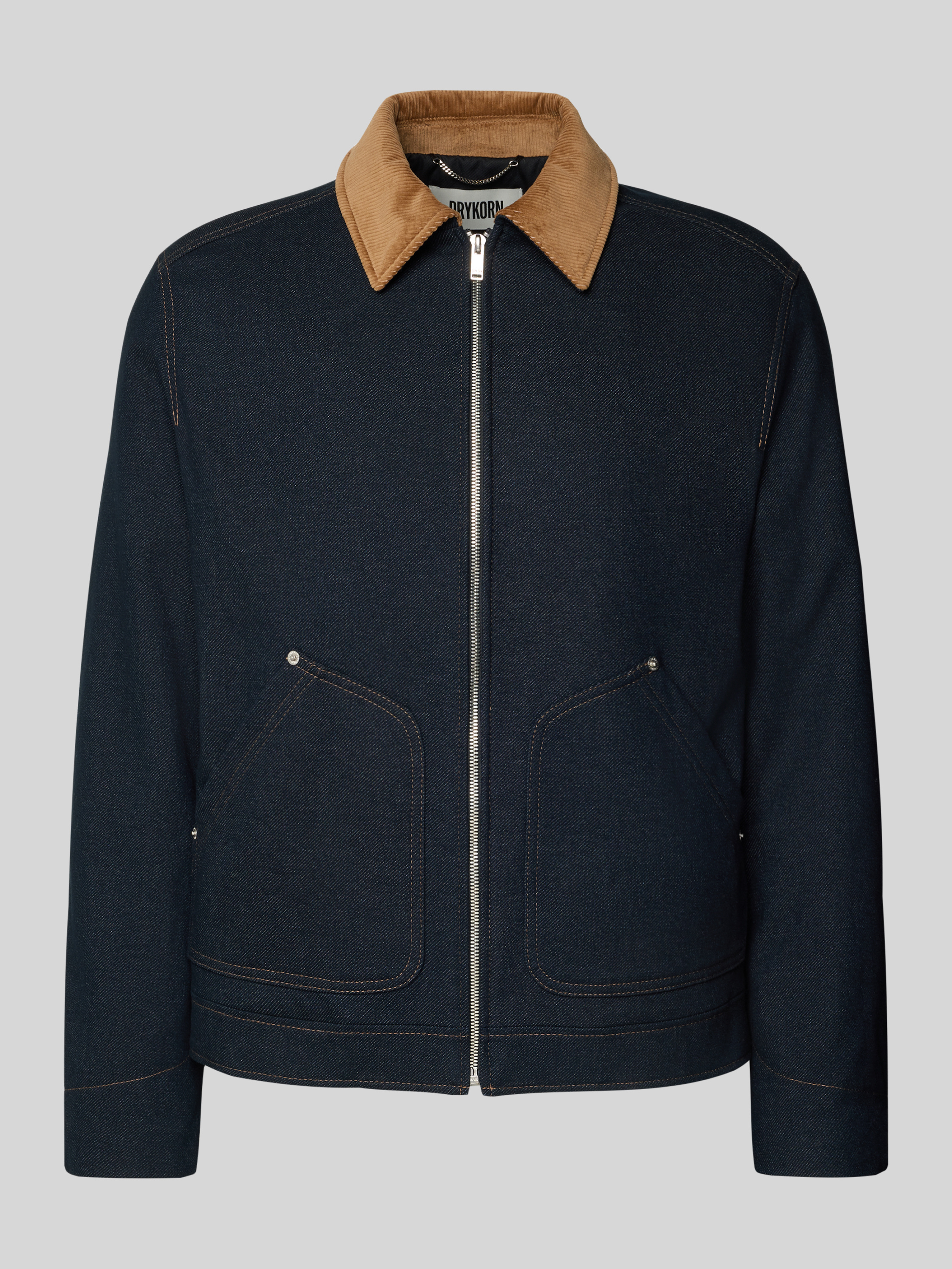 DrykornJeansjack met platte kraag en ritssluiting, model 'RIKALO' in marineblauw