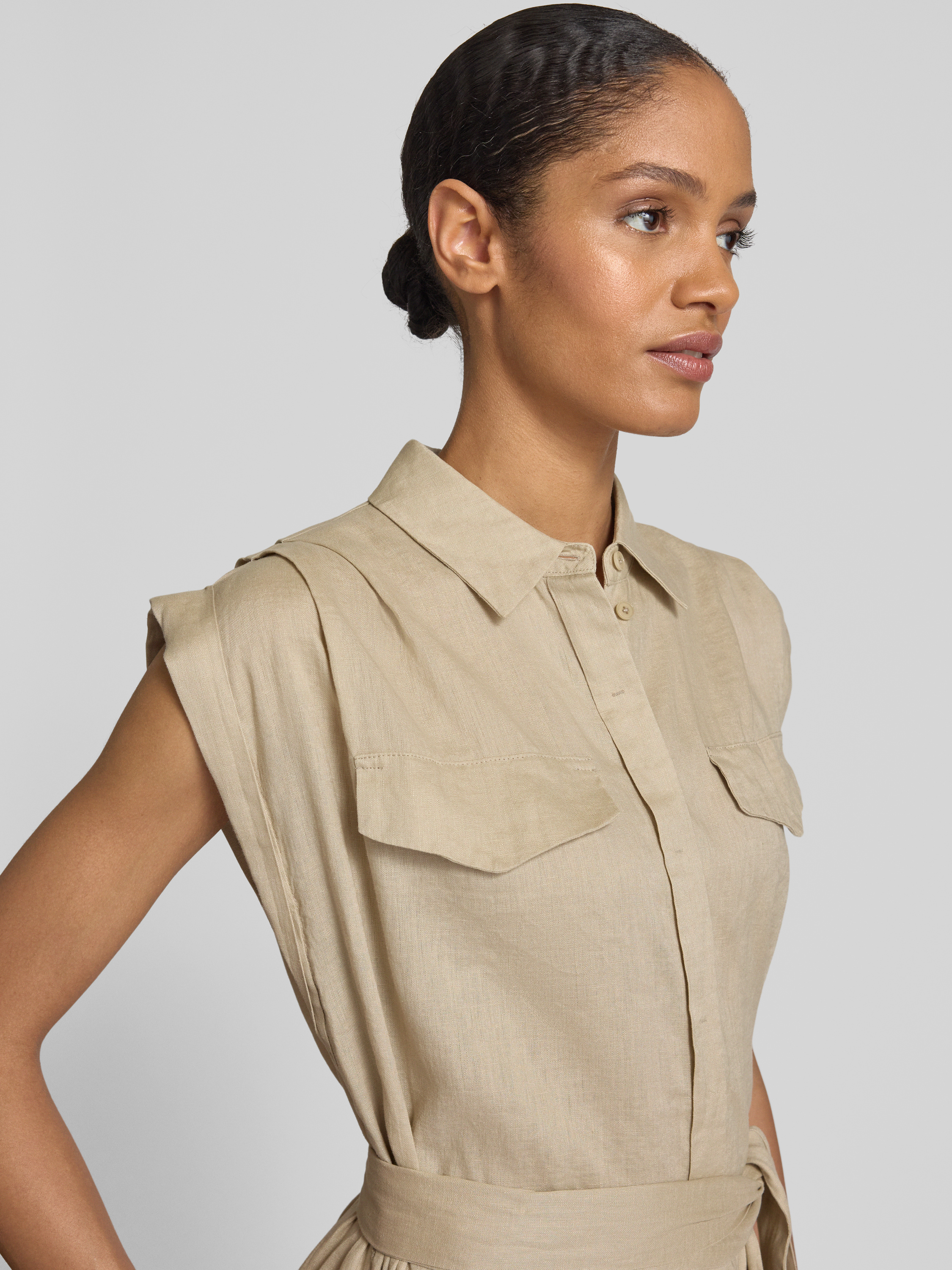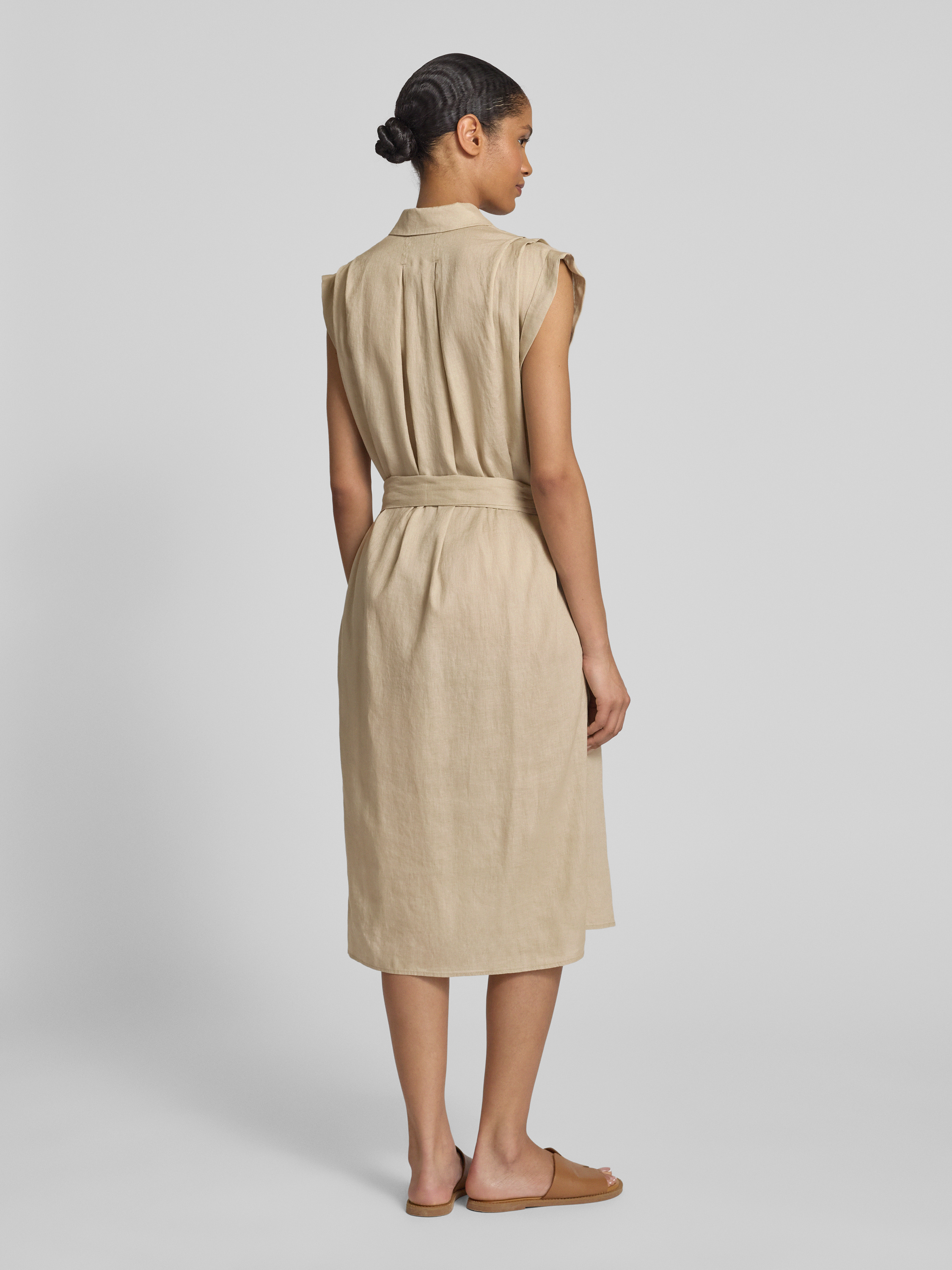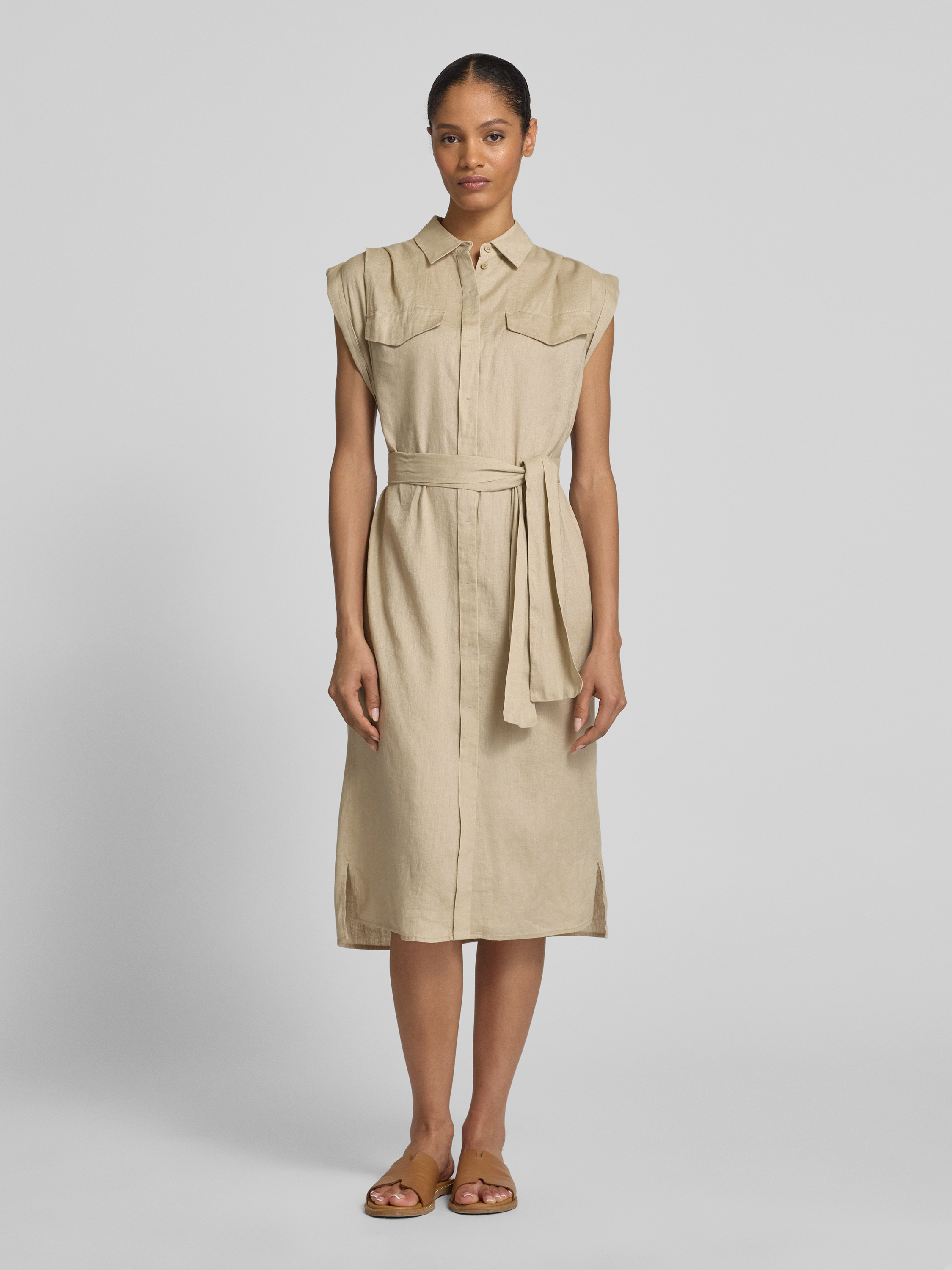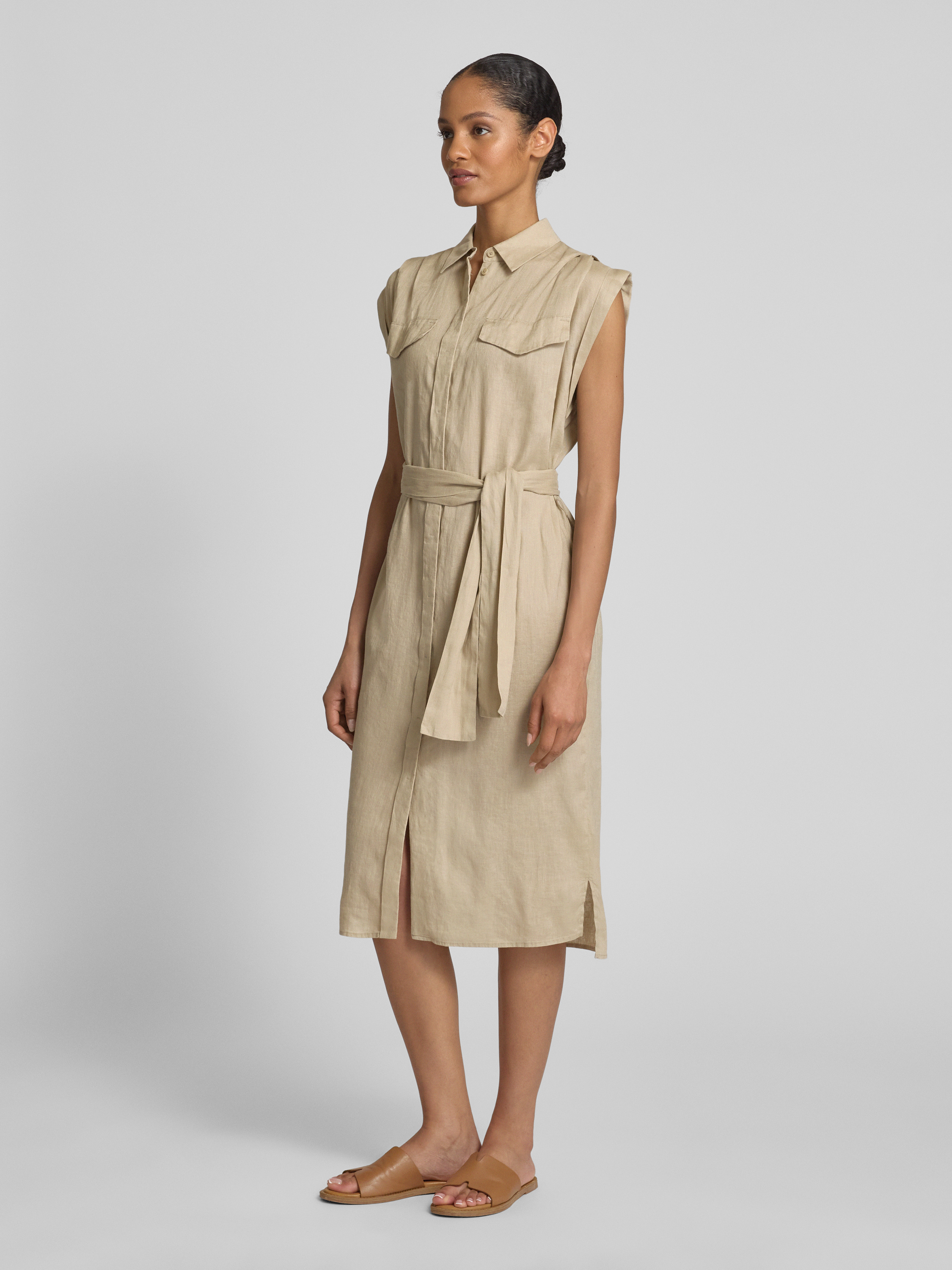 Linnen jurk met overhemdjurk, model 'BEKIME' in zand