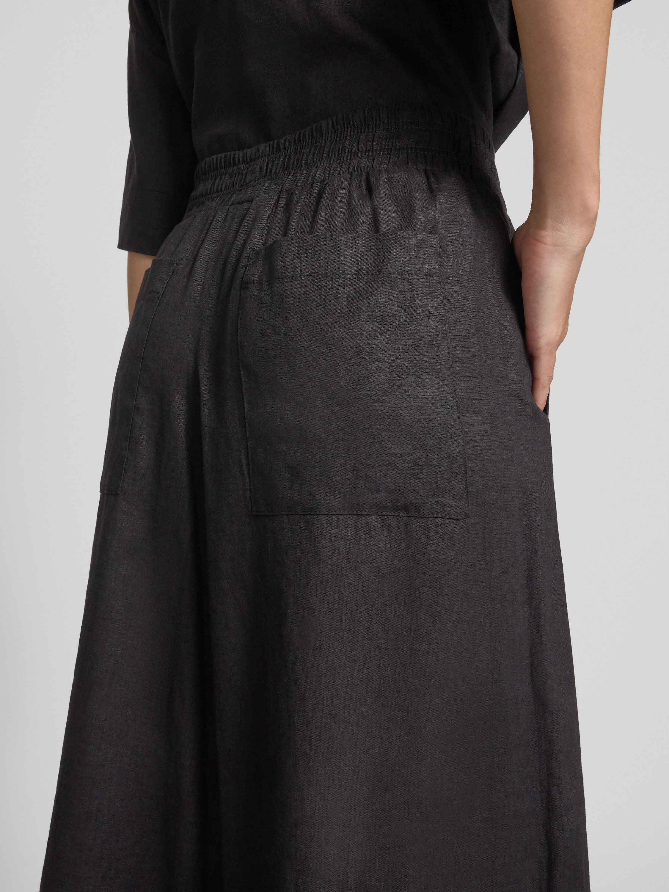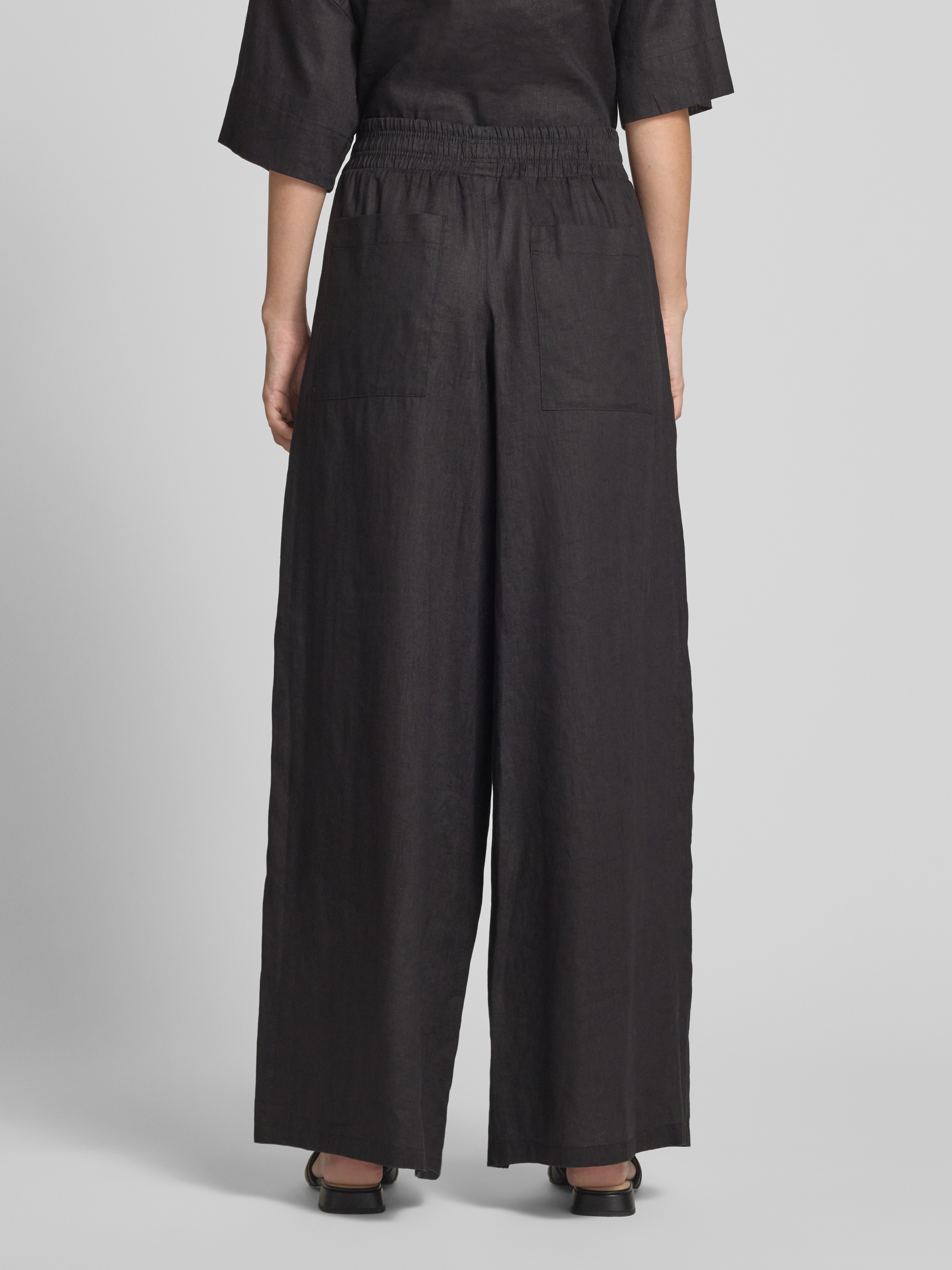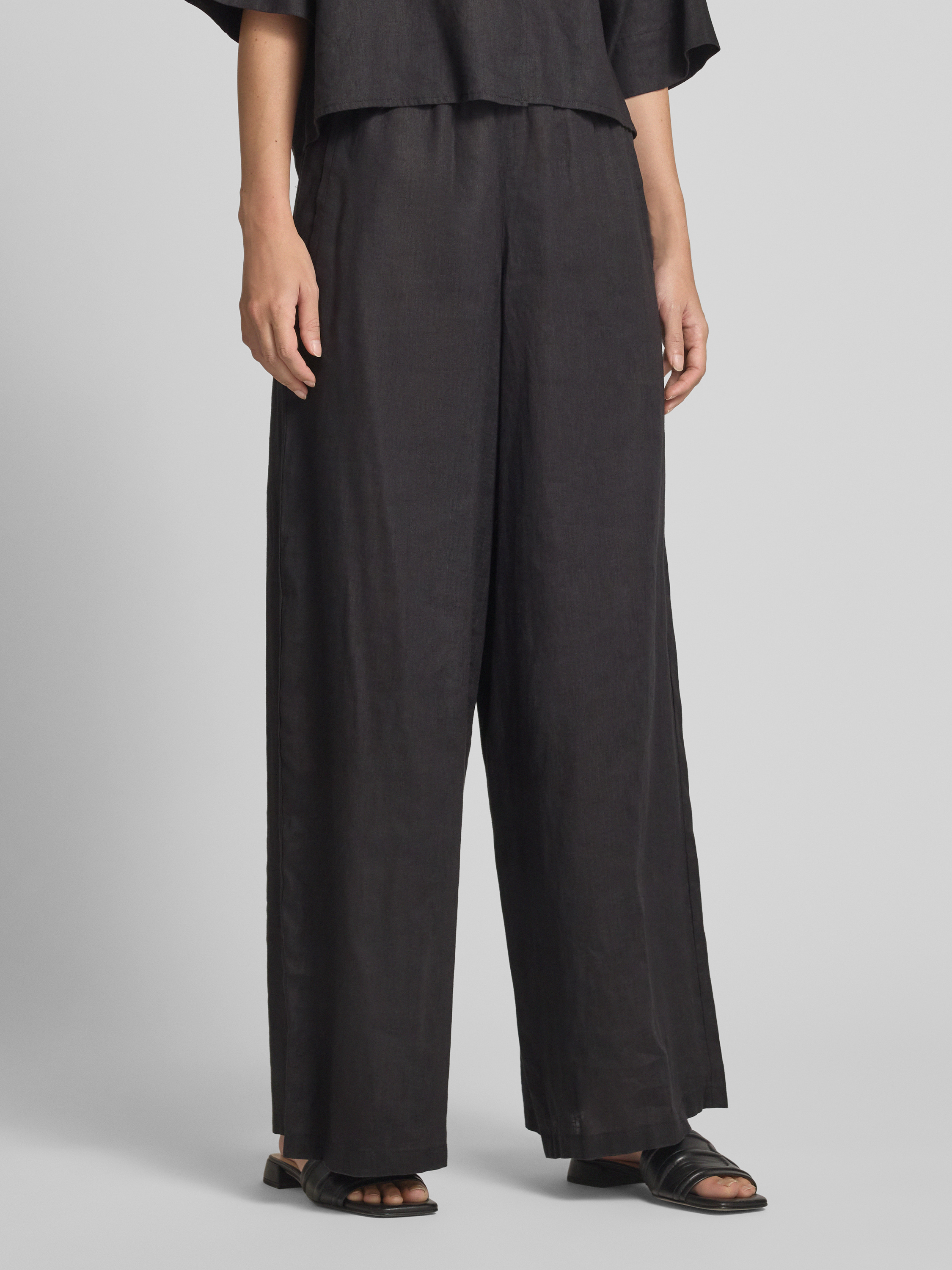Loose fit linnen broek met elastische band in zwart