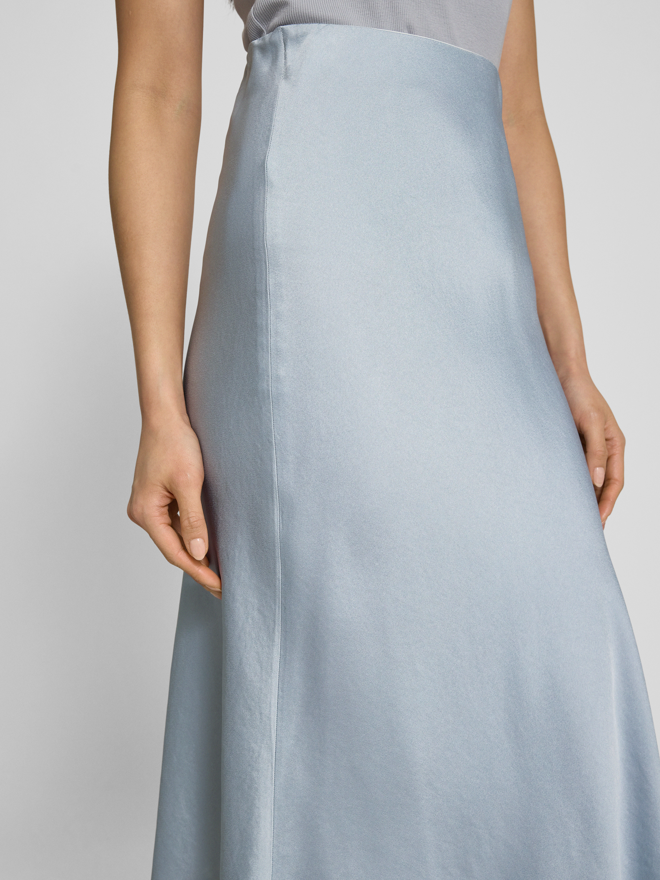 DrykornMidirok van satijn met elastische band, model 'URA' in lichtblauw