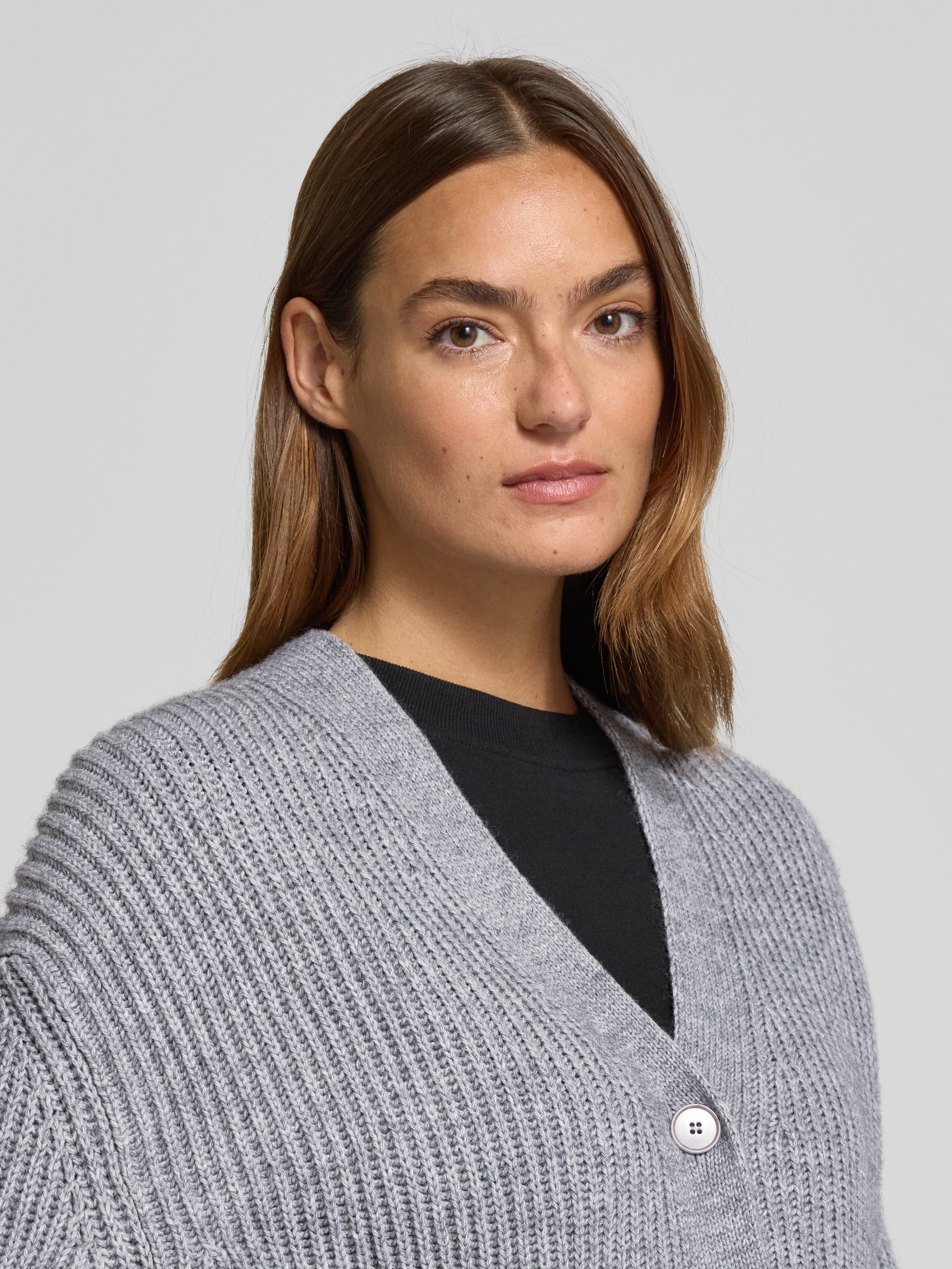 DrykornOversized gebreid jack met knoopsluiting in middengrijs gemêleerd