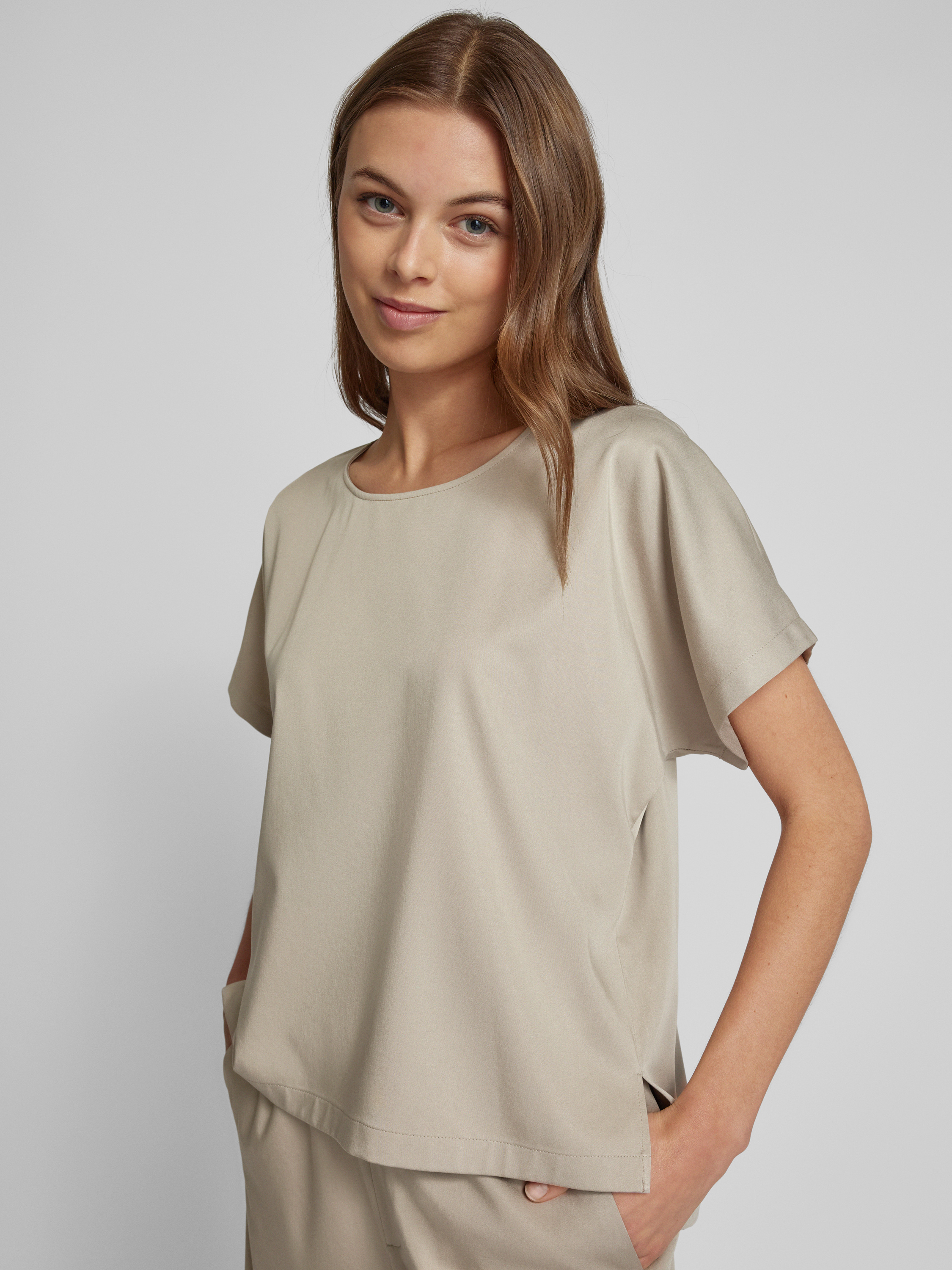 Regular fit blouseshirt met ronde hals, model 'CORAMY' in beige