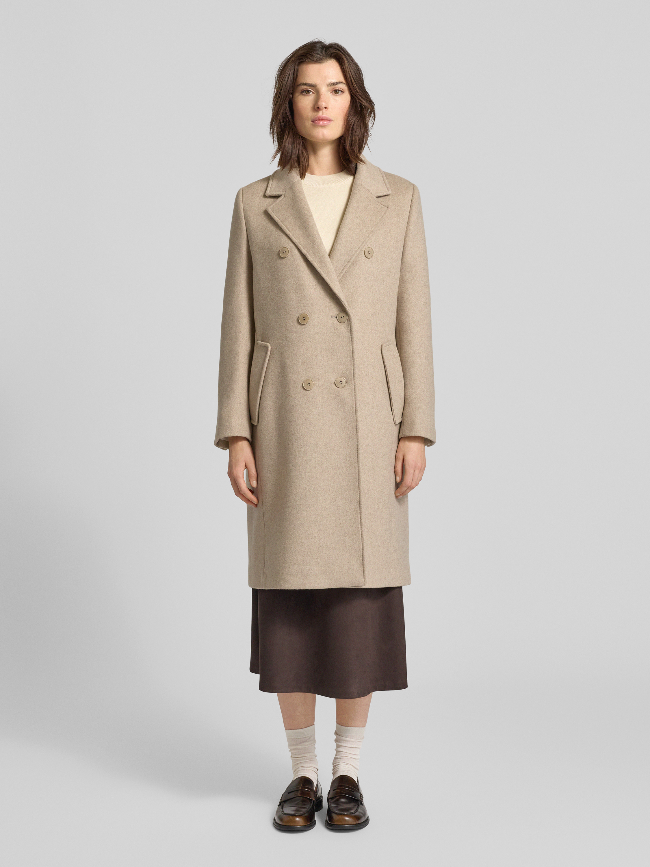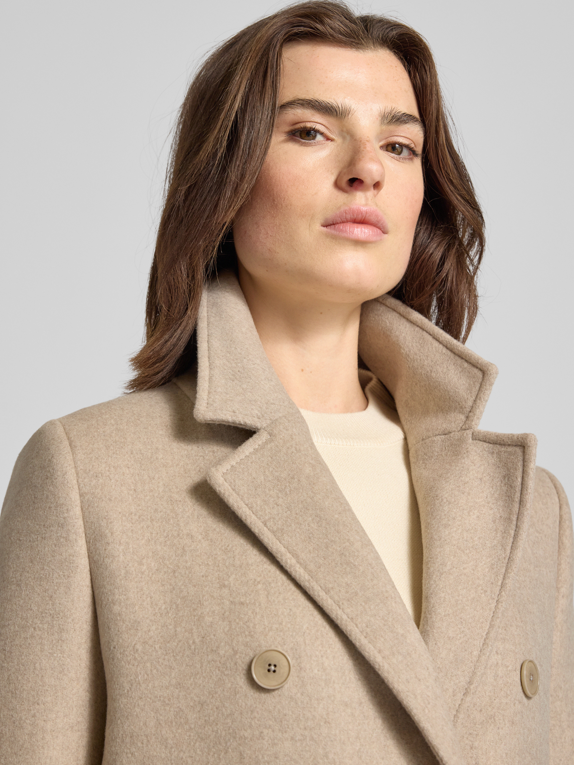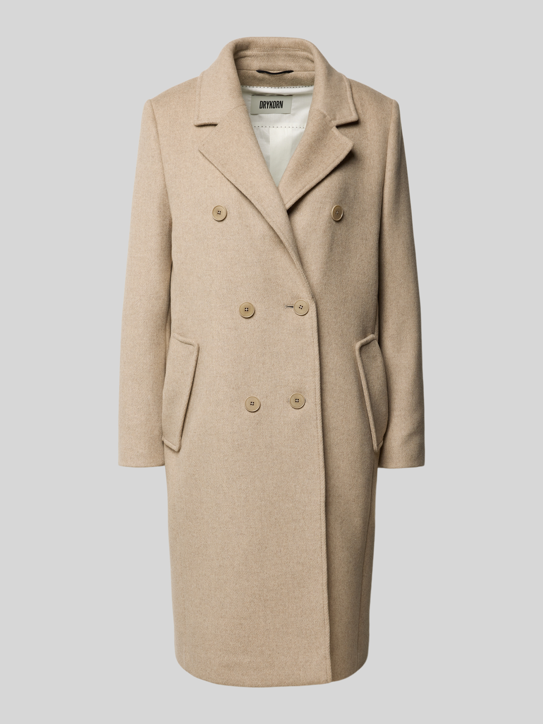 DrykornRegular fit lange jas van kasjmiermix, model 'Bramcote' in zand