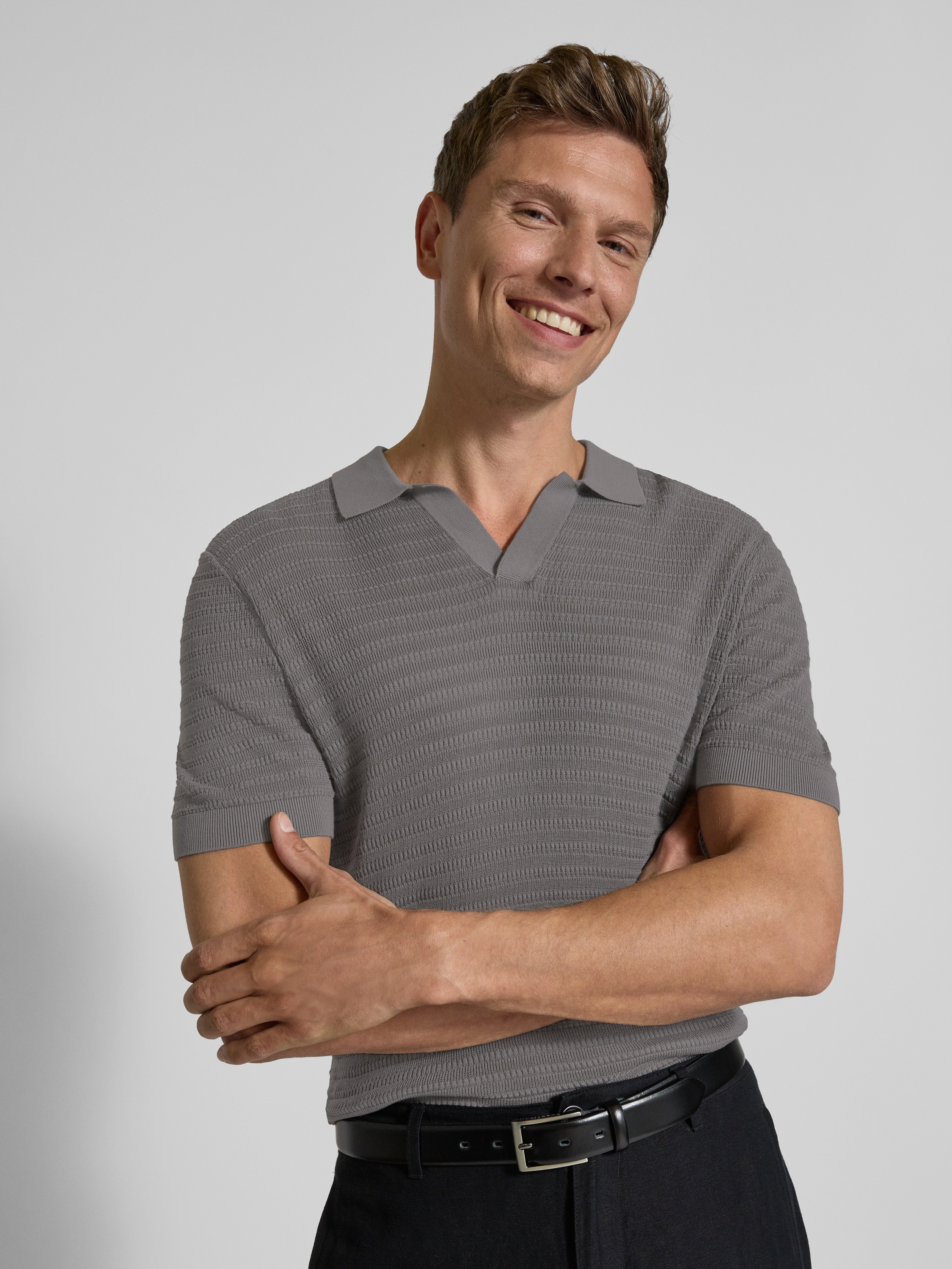 DrykornRegular fit poloshirt met V-hals, model 'BRAIAN' in middengrijs