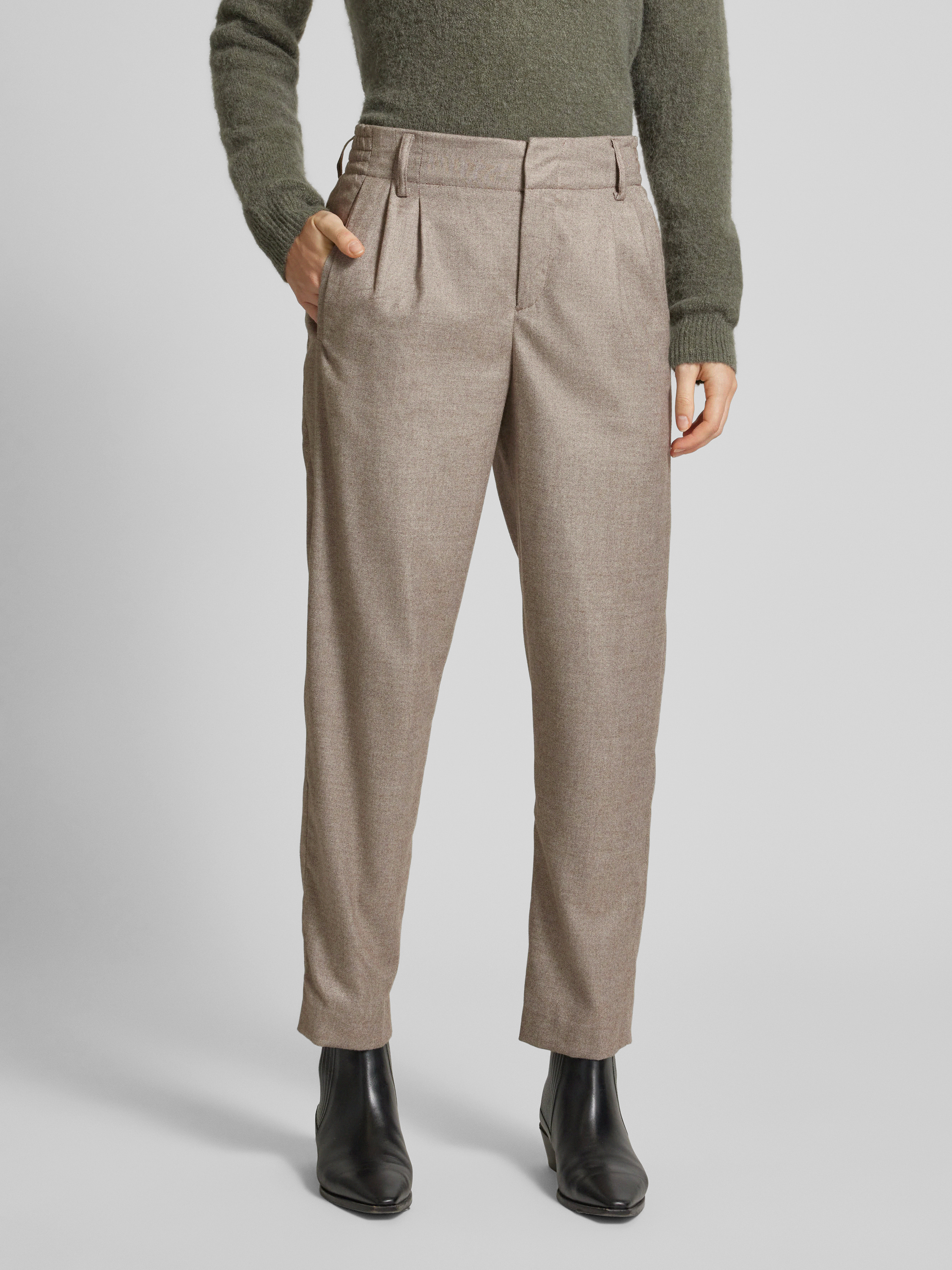 DrykornRegular fit stoffen broek met bandplooien, model 'DISPATCH' in middenbruin