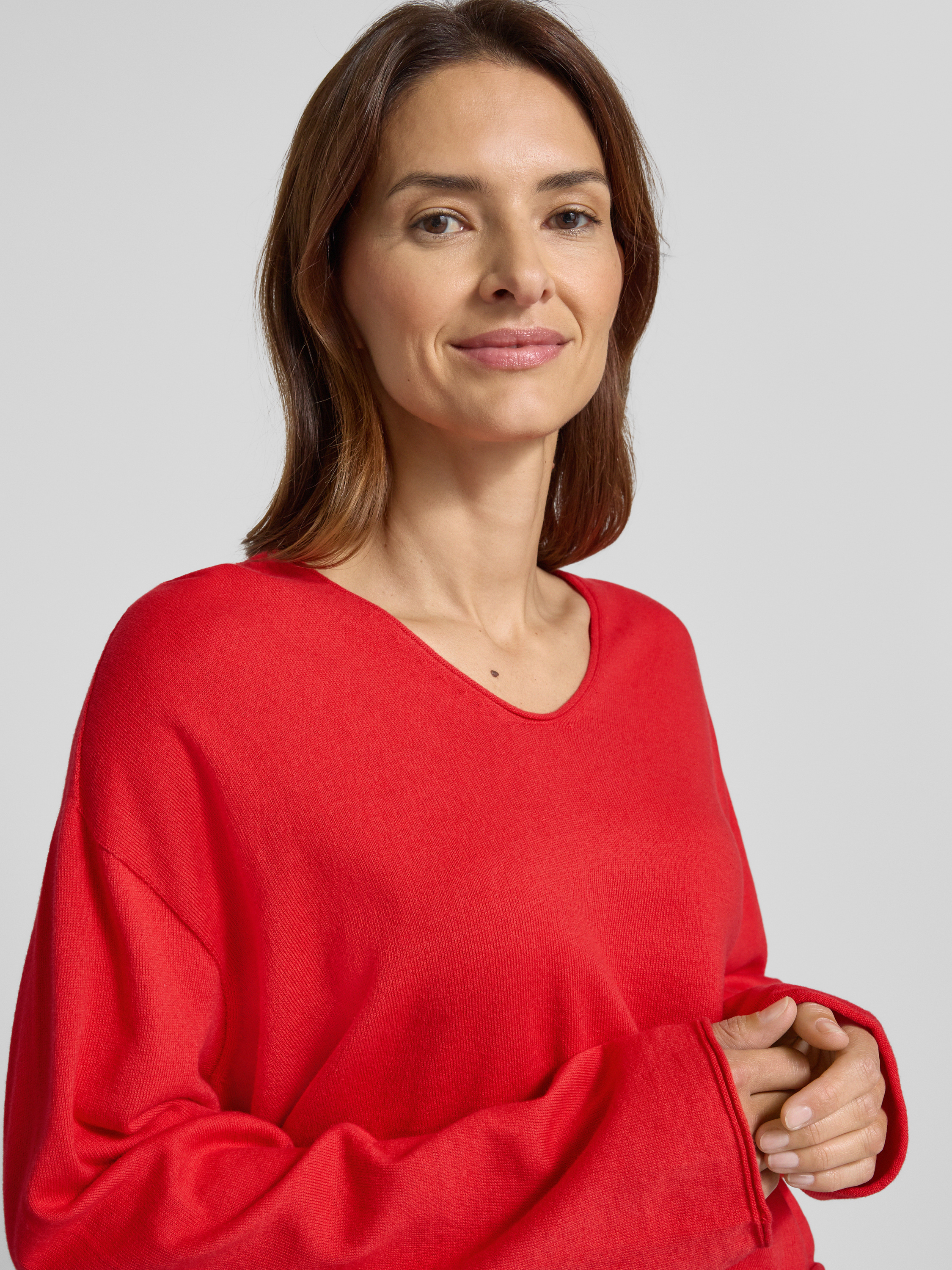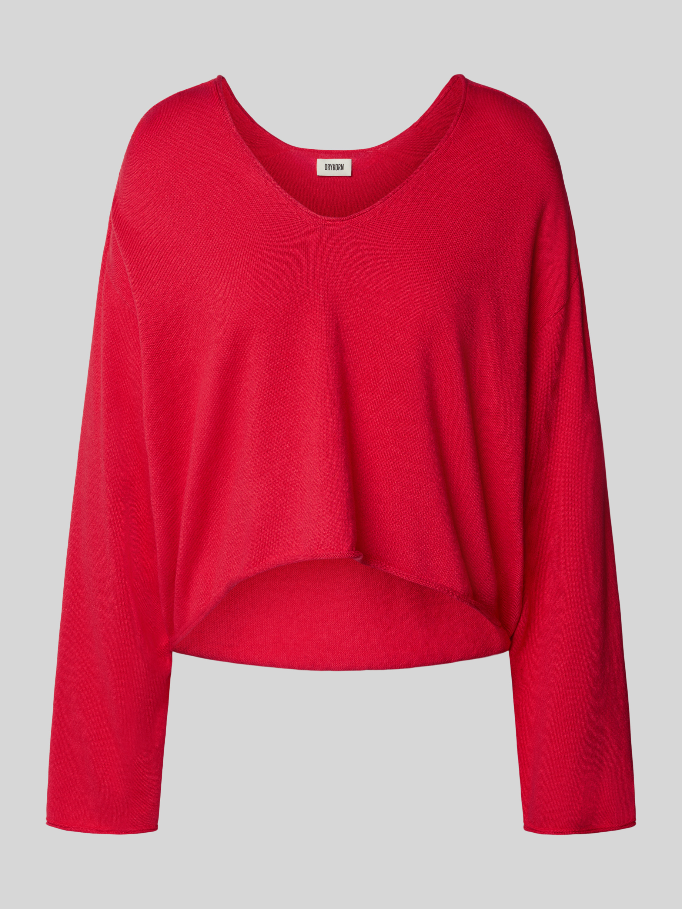 DrykornRelaxed fit gebreide pullover met V-hals, model 'SOMAIJA' in lichtrood