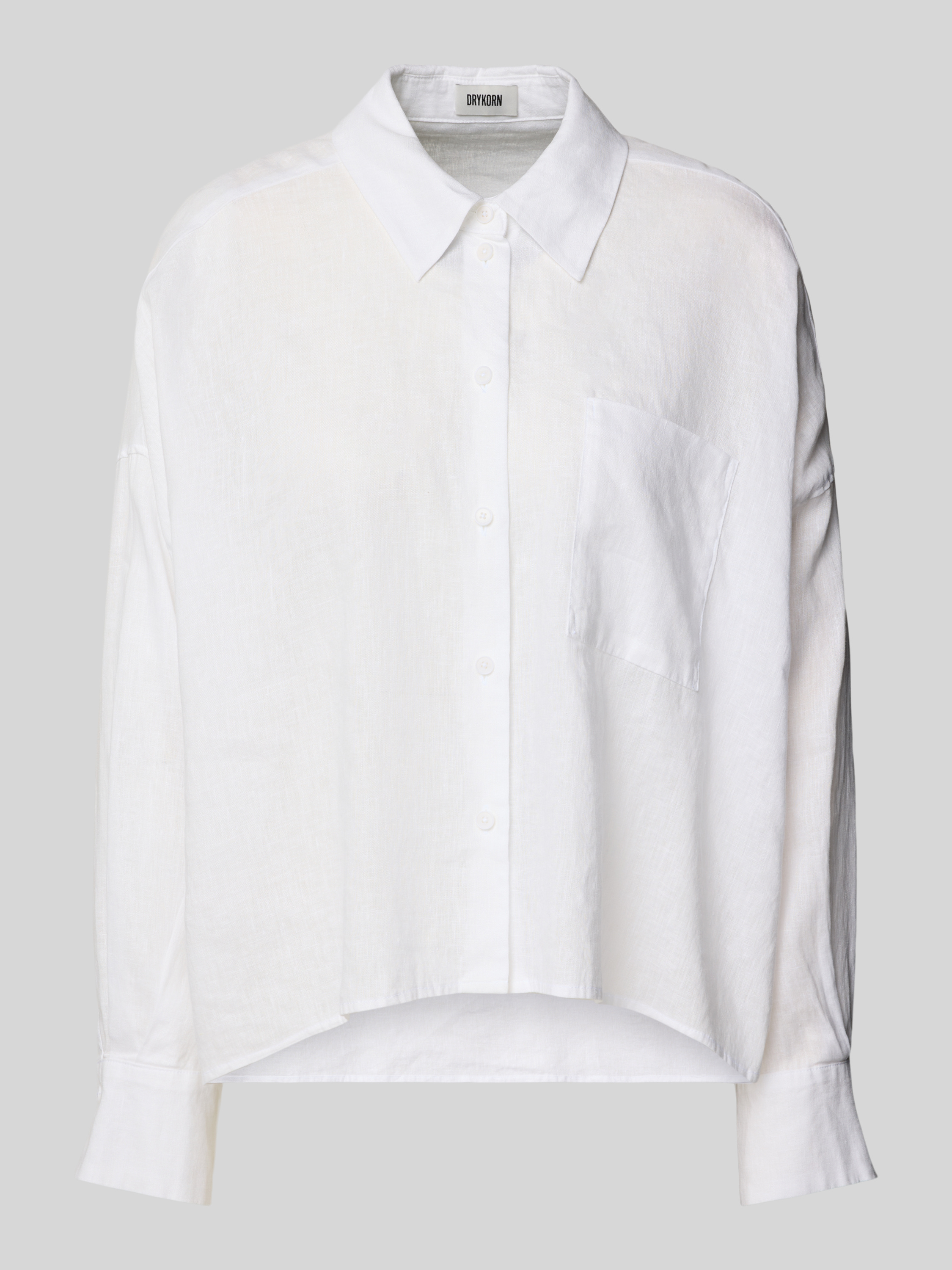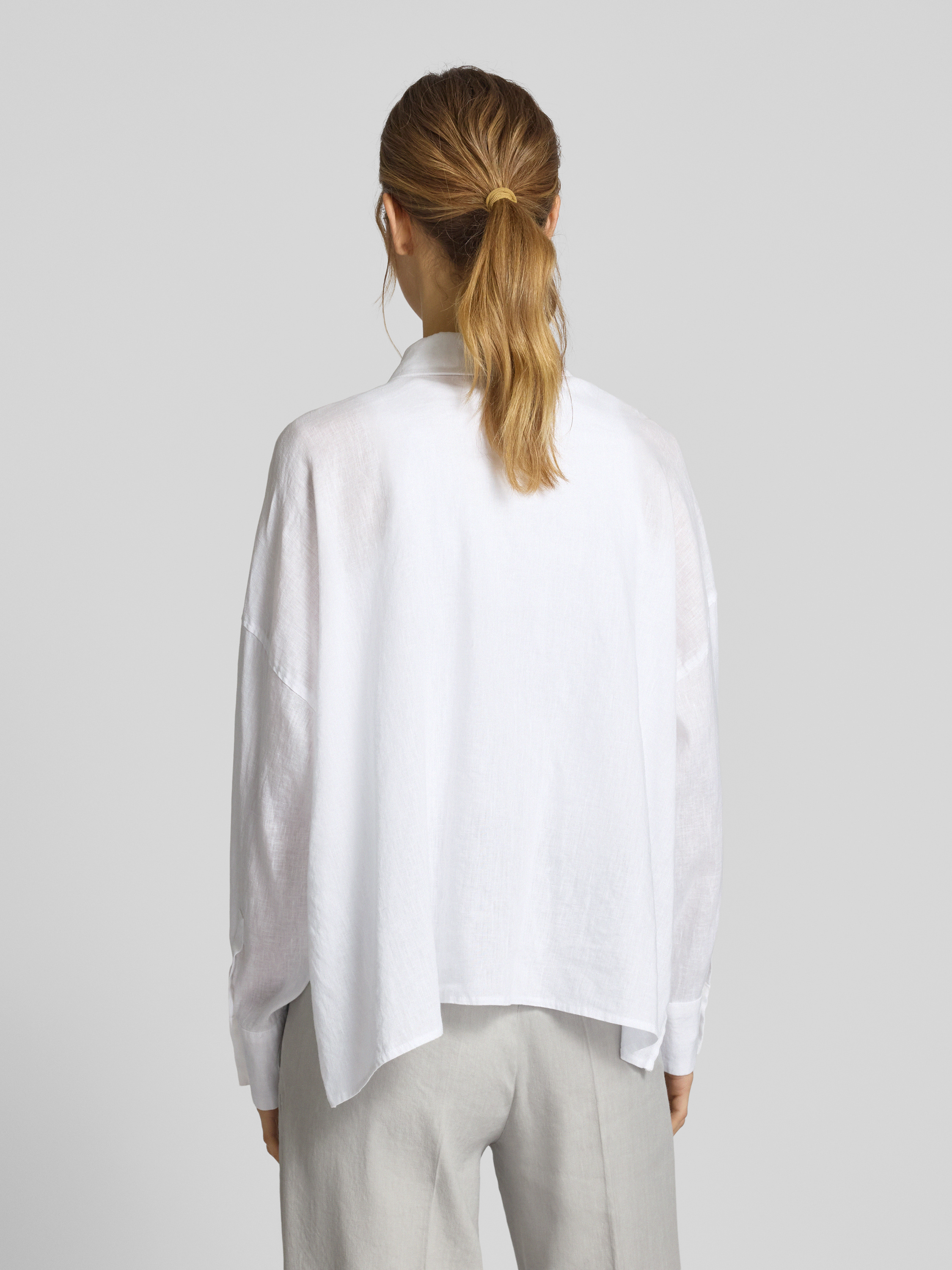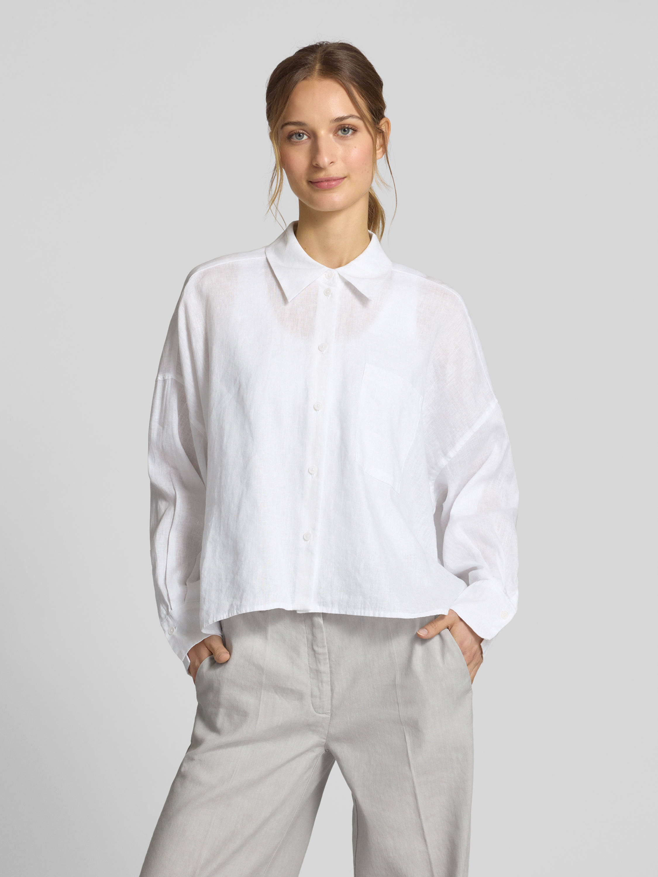 Relaxed fit linnen blouse met borstzak, model 'NAMIDA' in wit