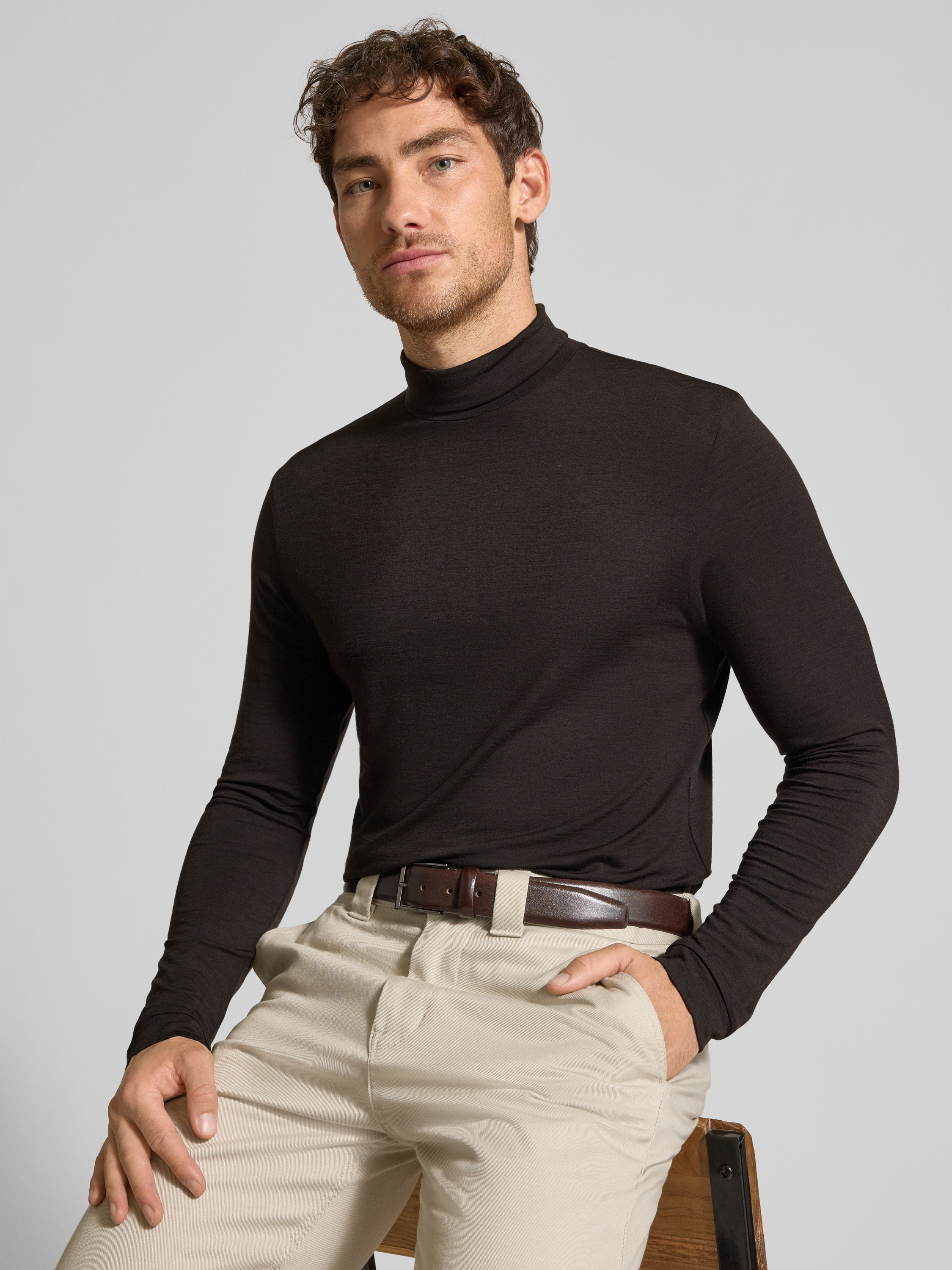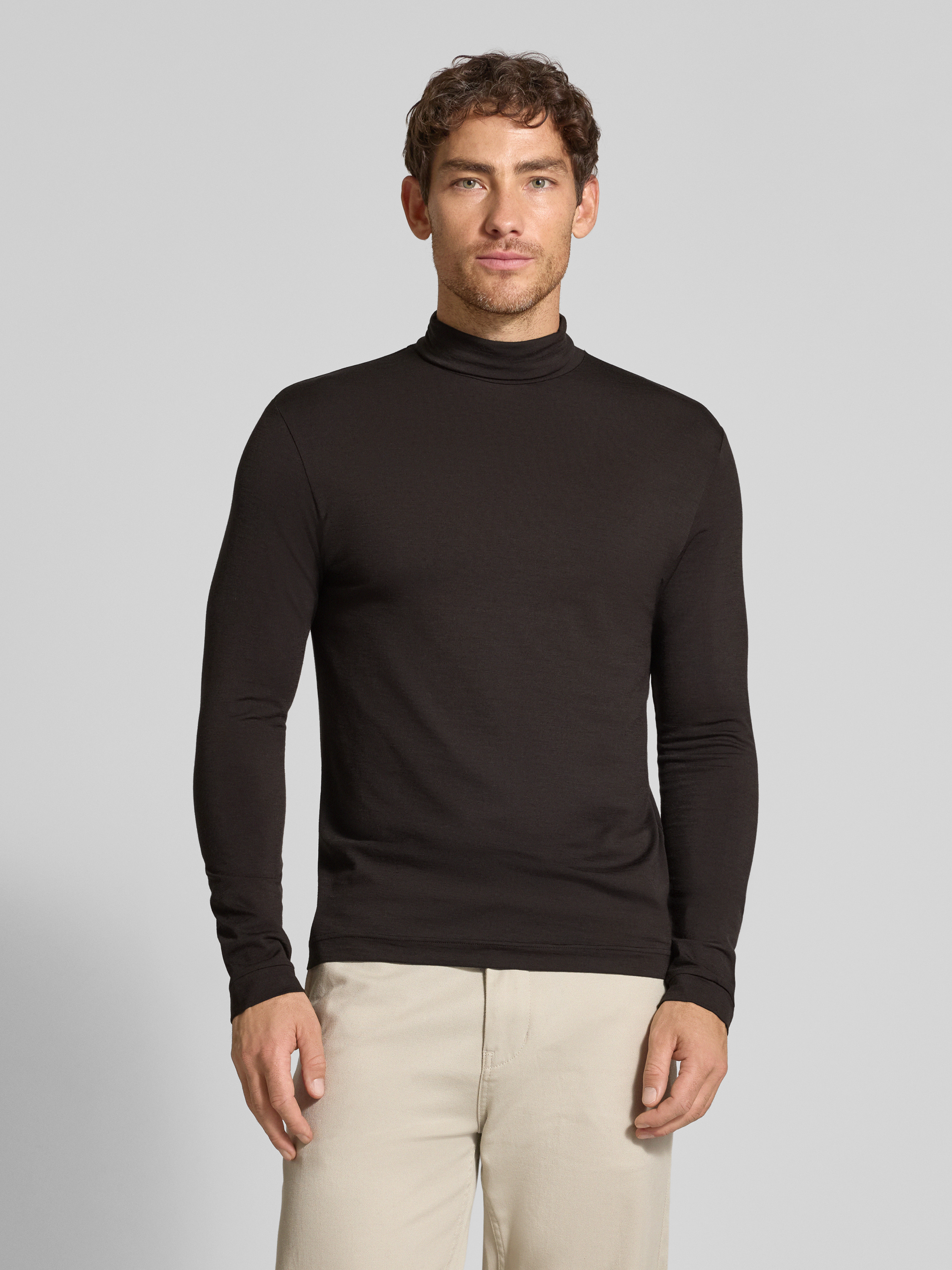 DrykornShirt met lange mouwen en col, model 'EMANUEL' in donkerbruin