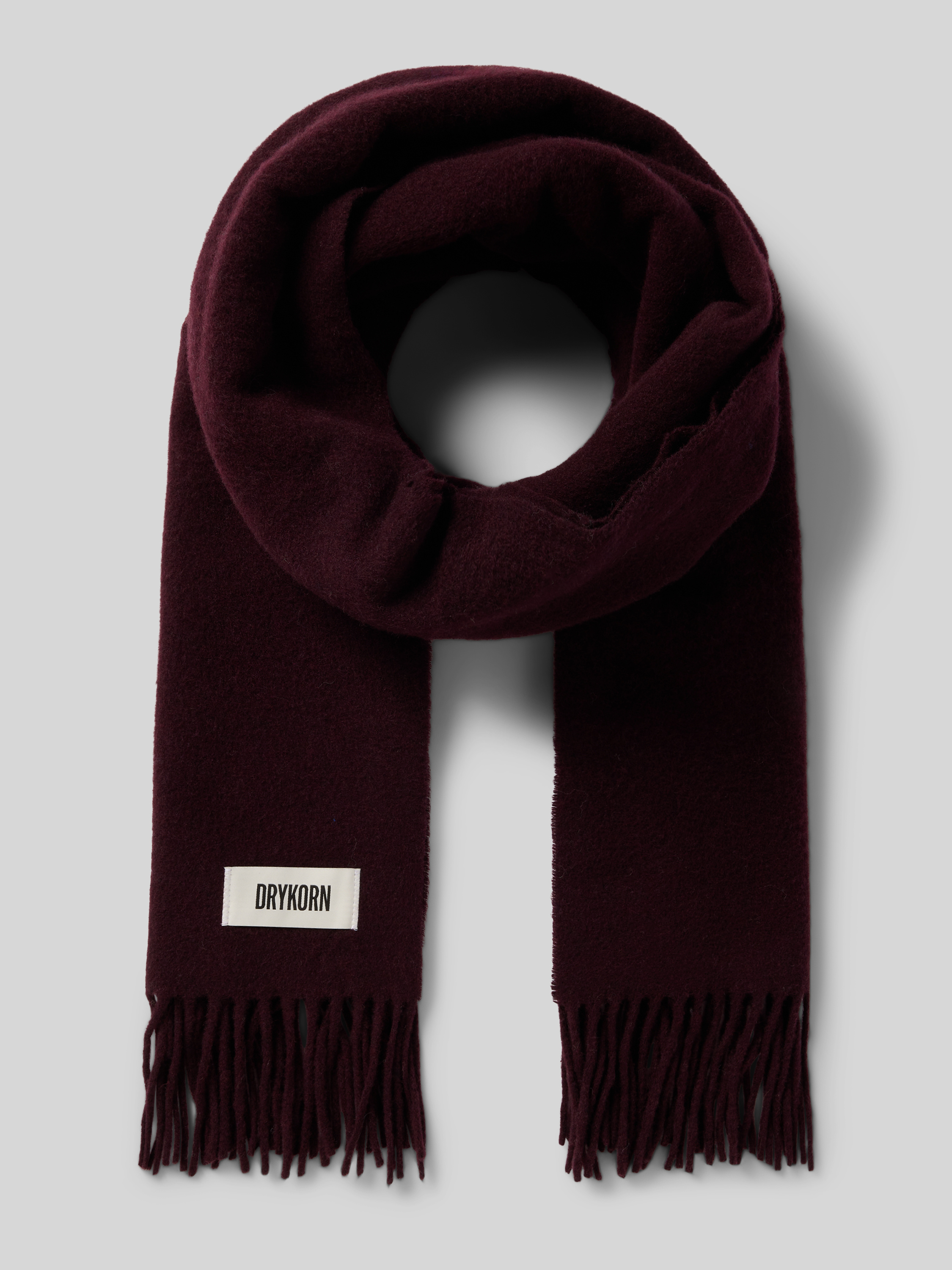 DrykornSjaal van een mix van wol en lanawol met franjes, model 'GAZE' in bordeaux