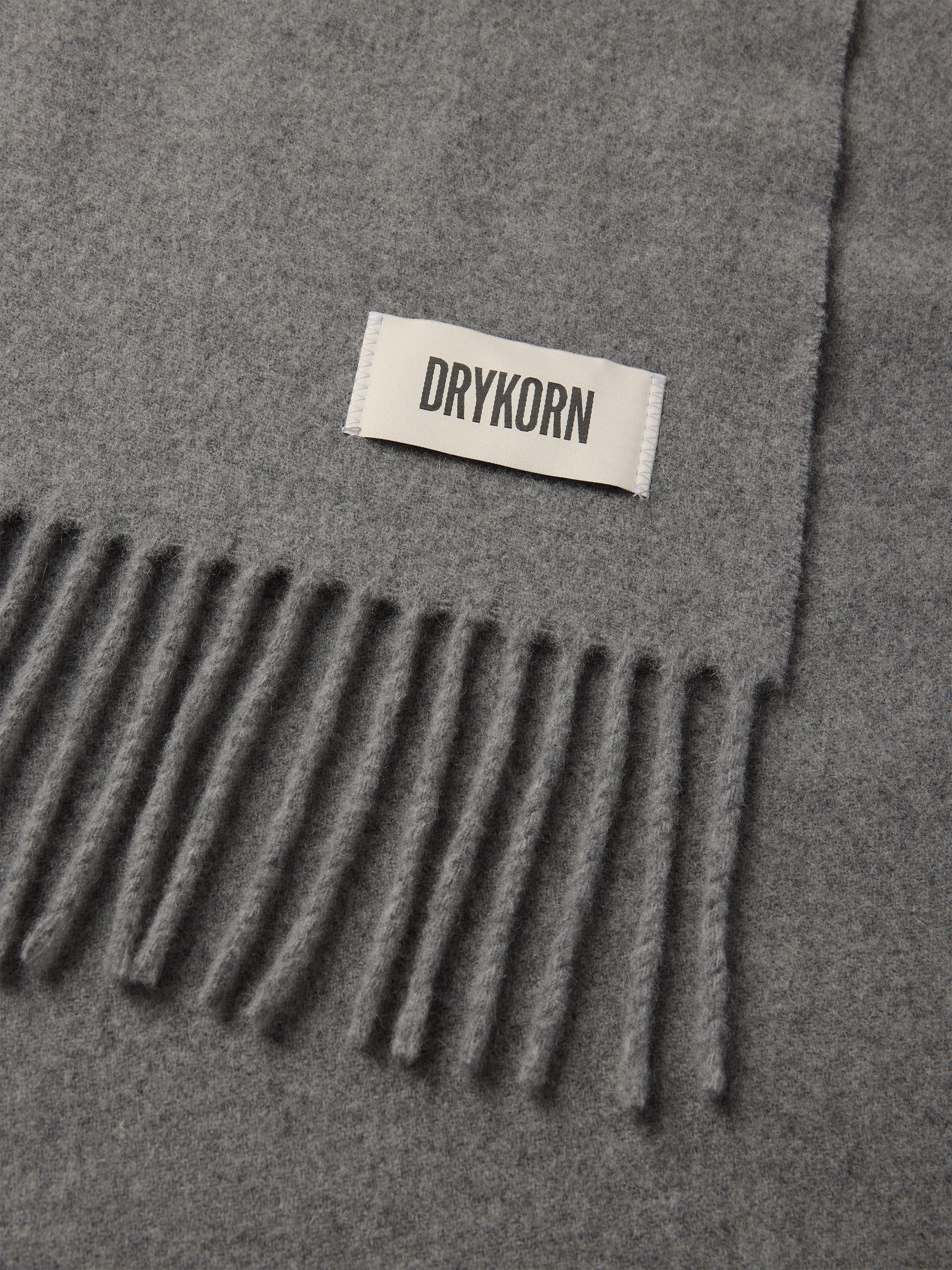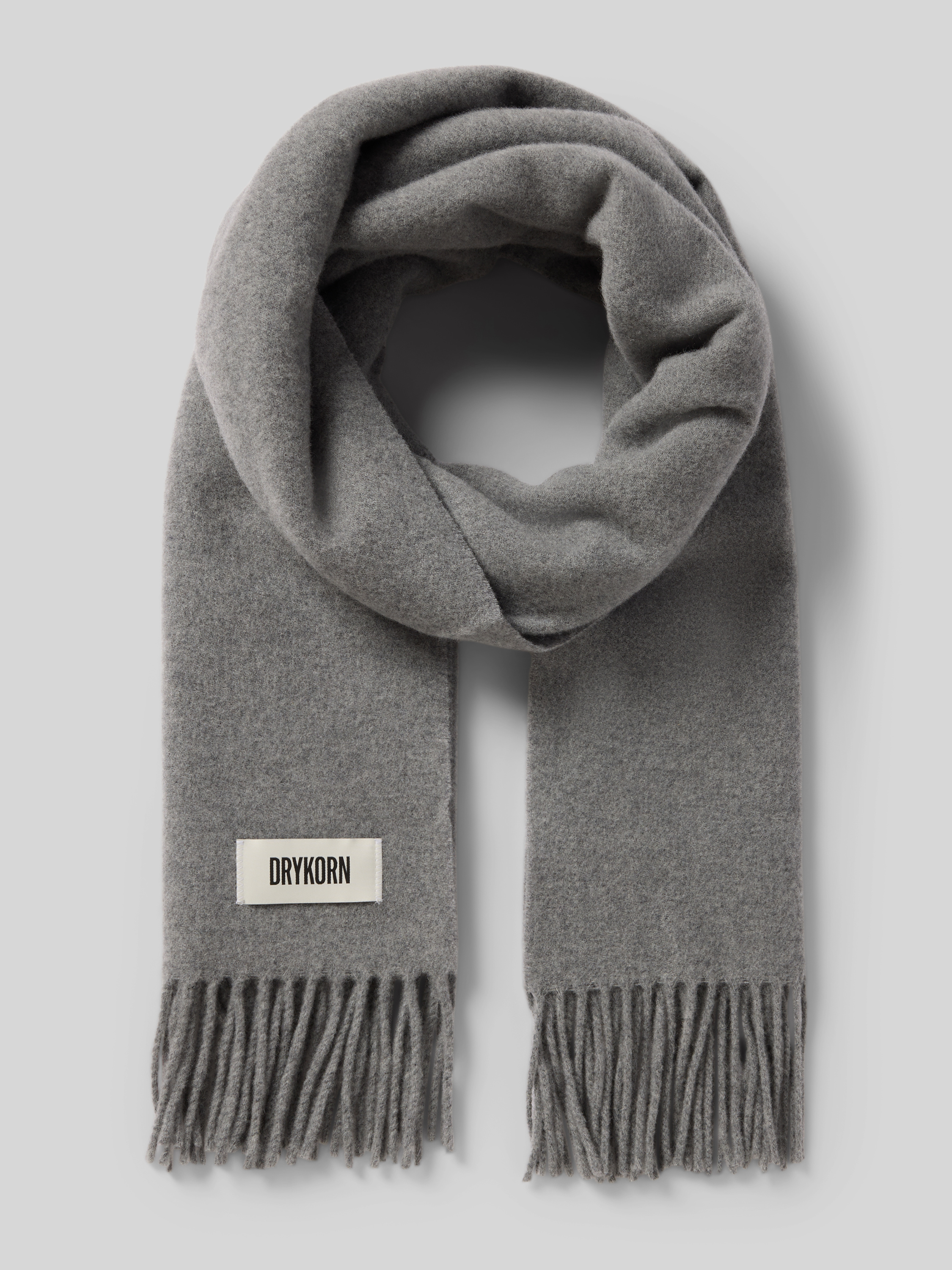 DrykornSjaal van een mix van wol en lanawol met franjes, model 'GAZE' in middengrijs gemêleerd