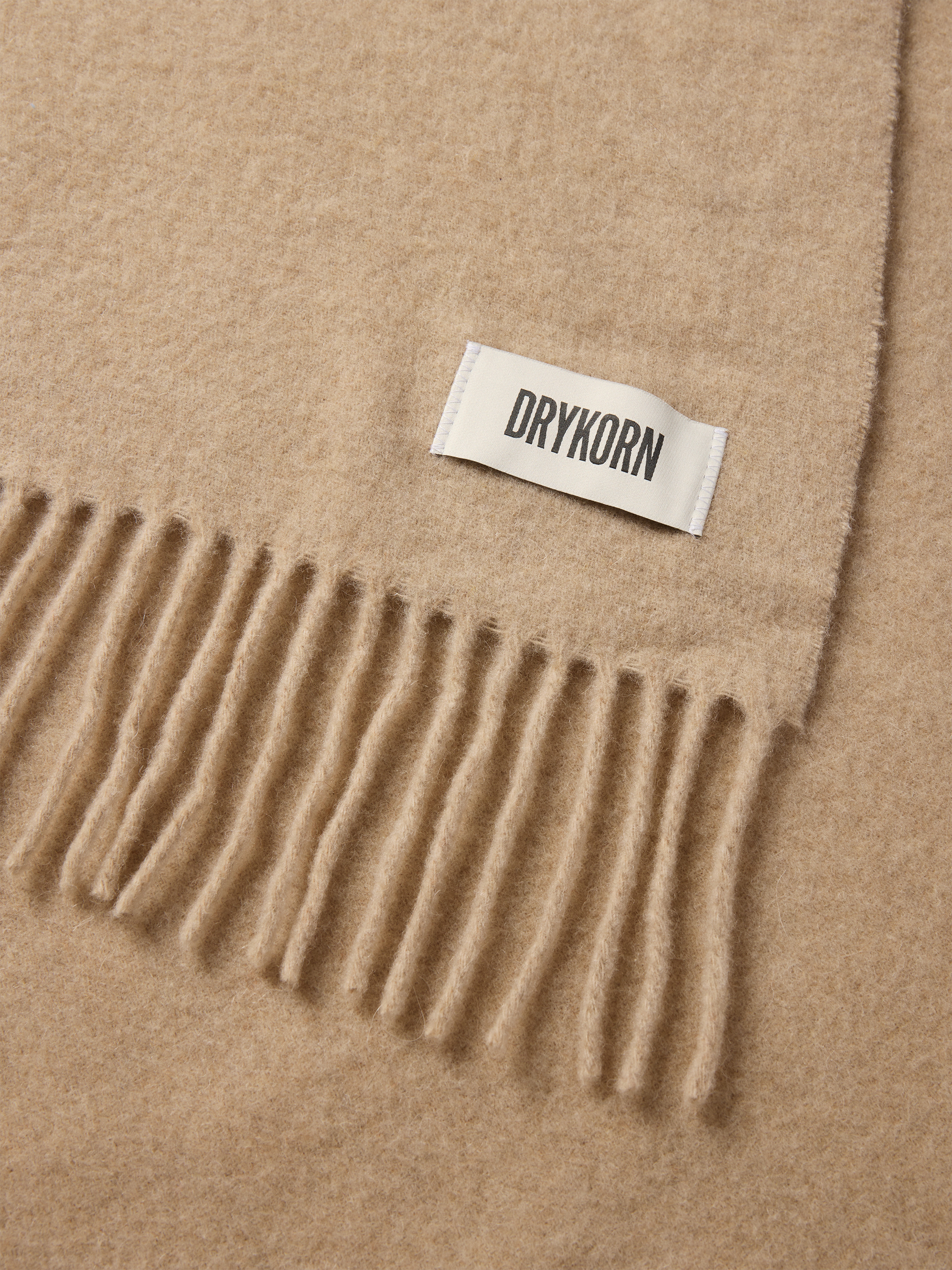 DrykornSjaal van een mix van wol en lanawol met franjes, model 'GAZE' in zand gemêleerd