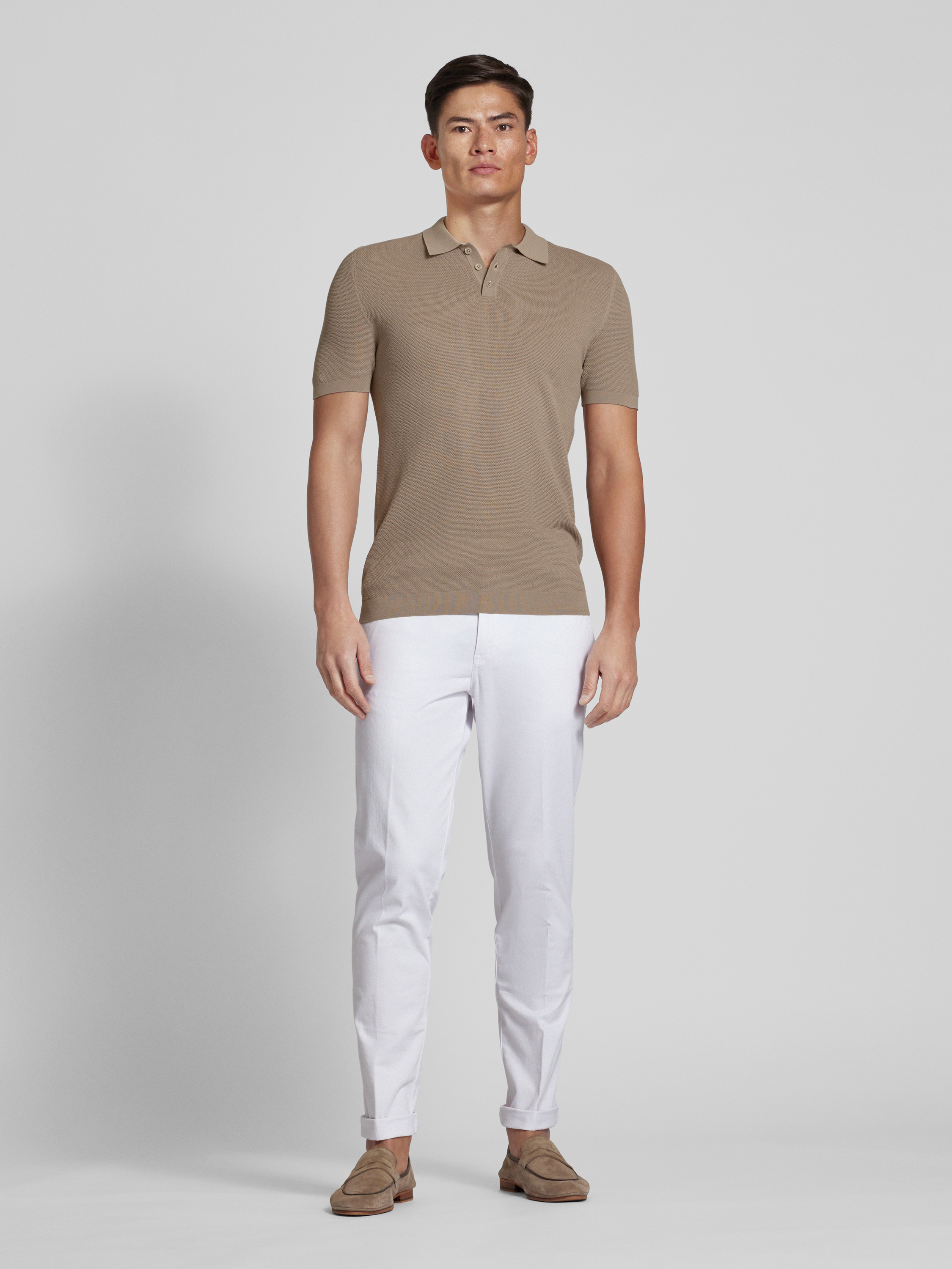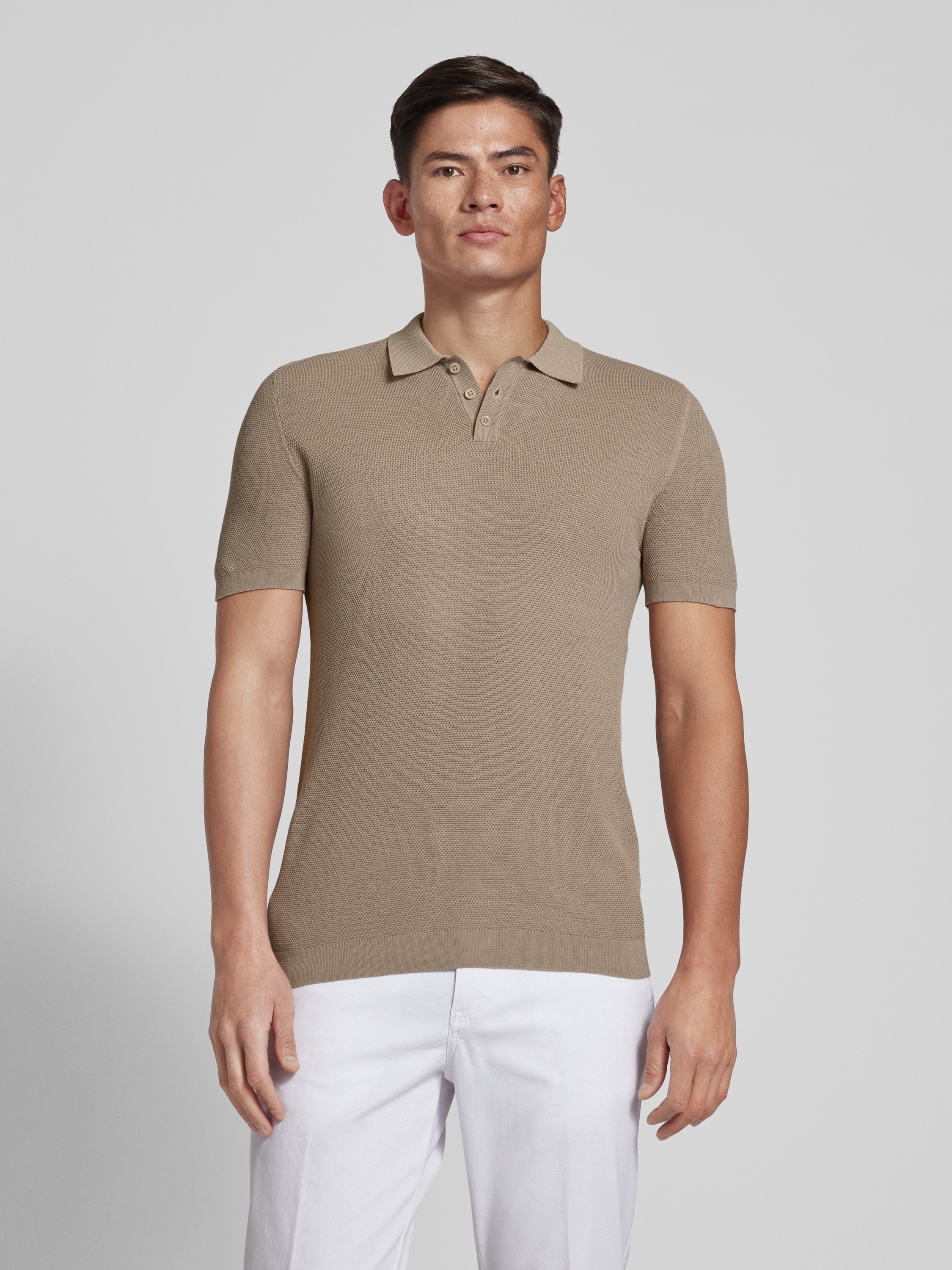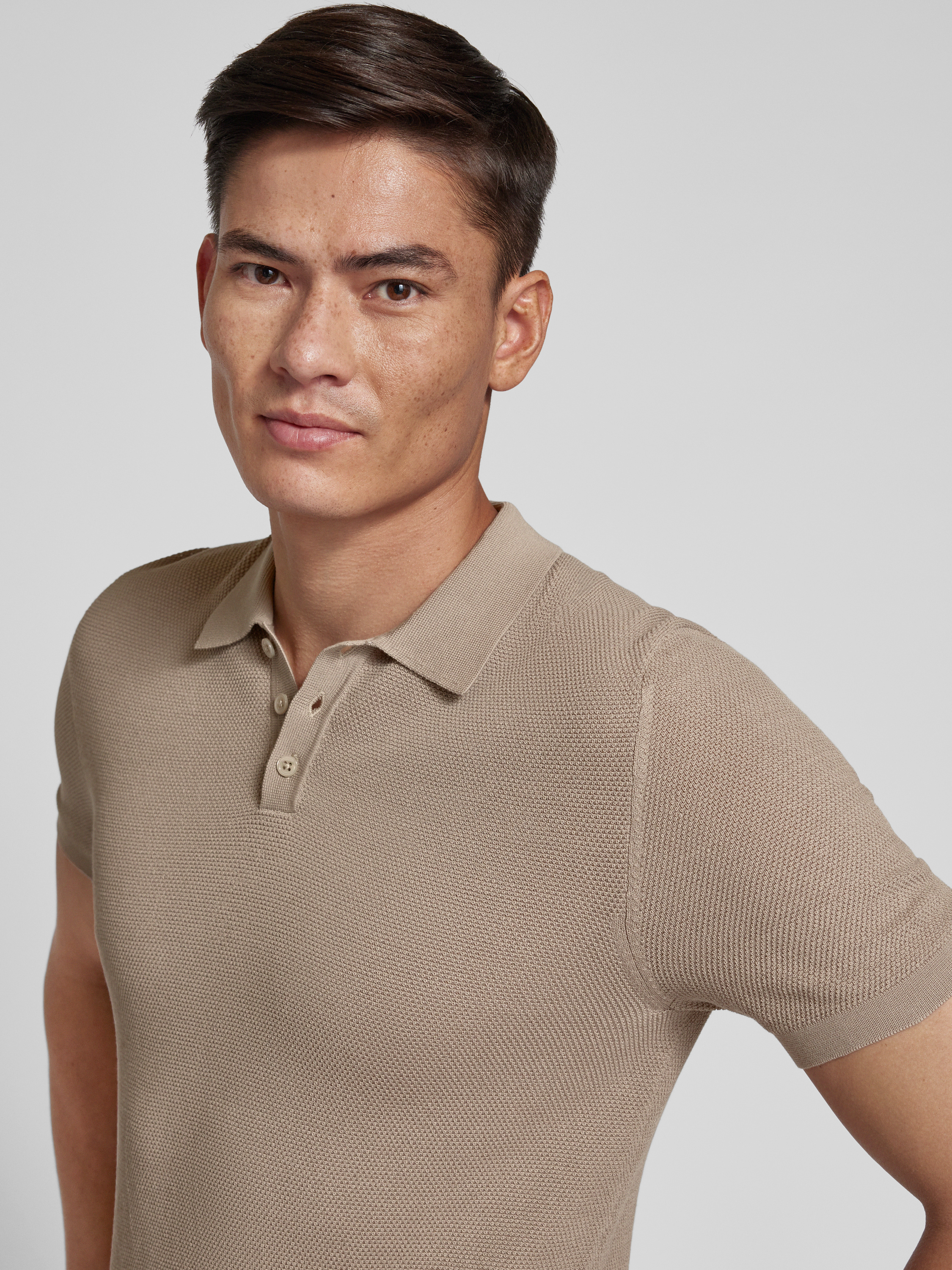 DrykornSlim fit poloshirt met structuurmotief, model 'Triton' in beige