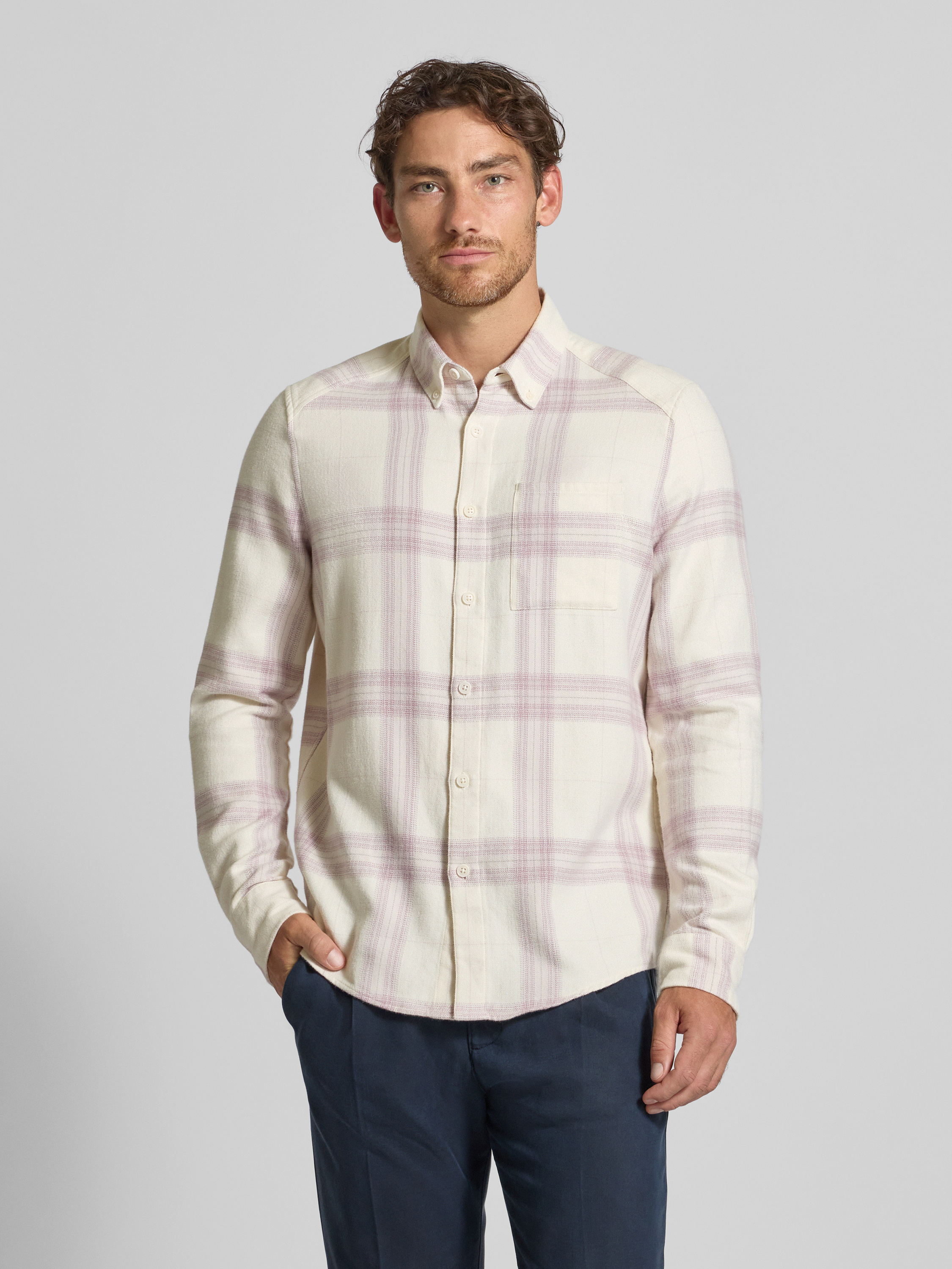 DrykornSlim fit vrijetijdsoverhemd met button-downkraag, model 'LIET' in rosé