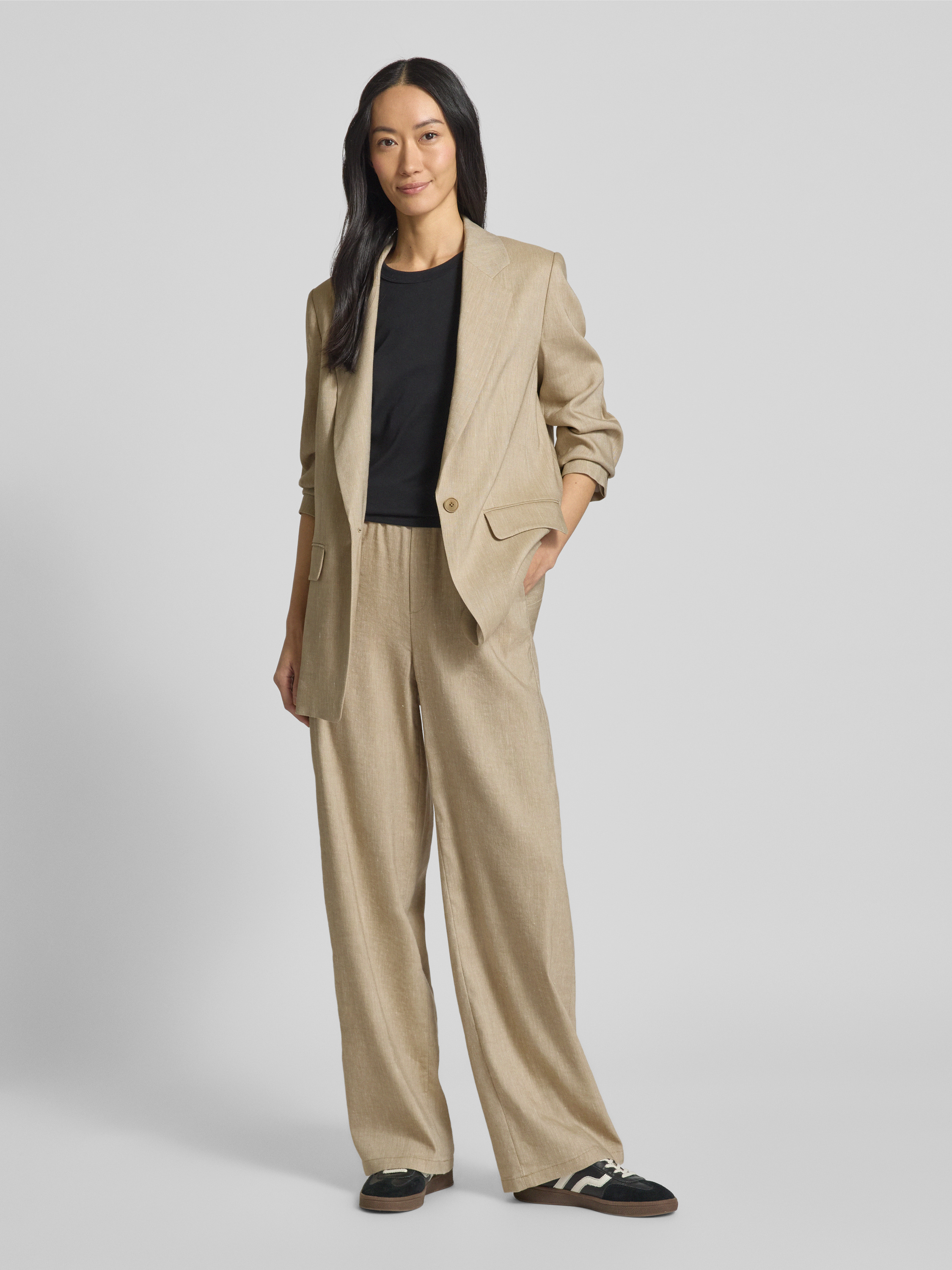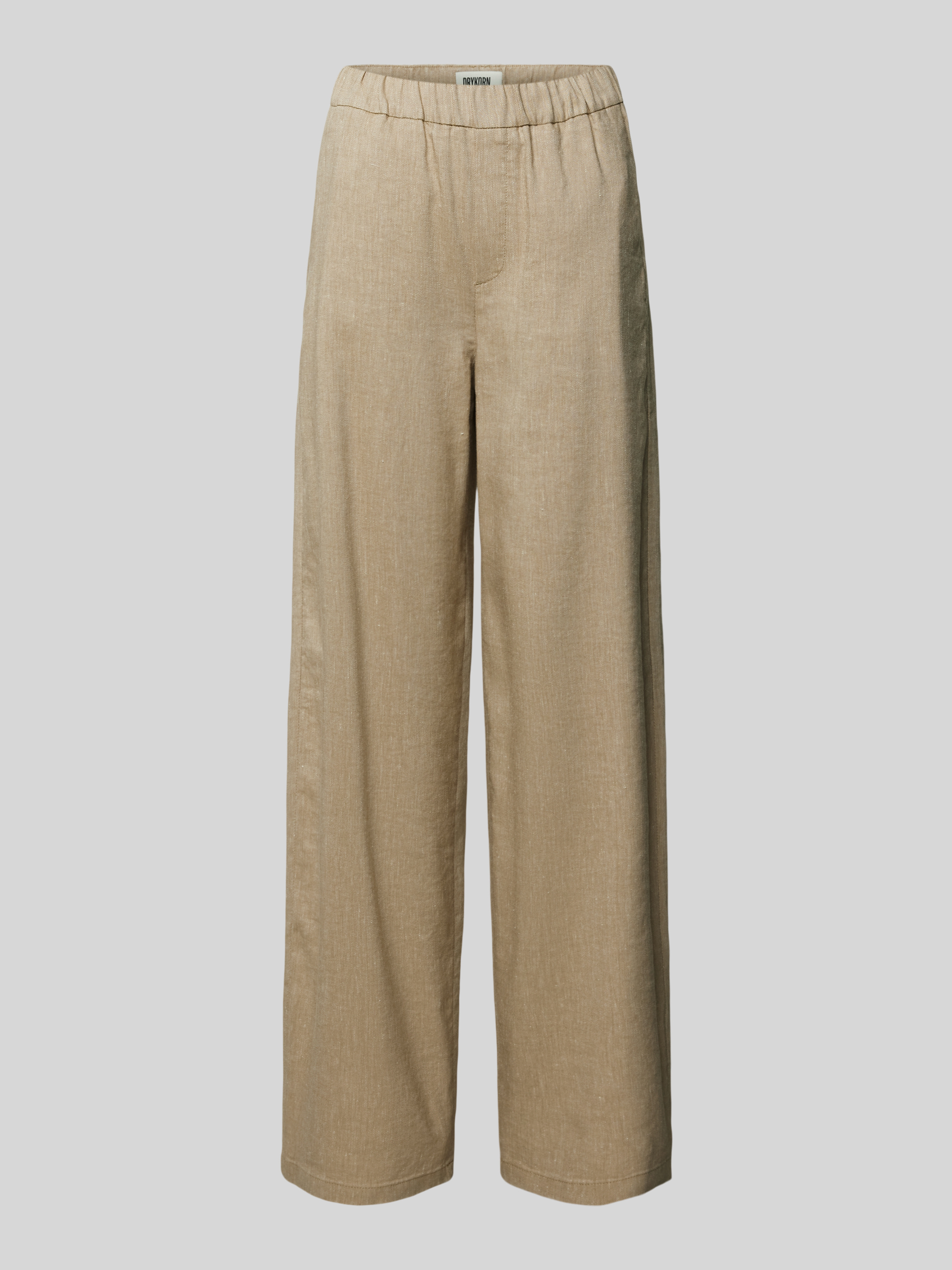Straight leg linnen broek met elastische band, model 'CONSIDER' in beige