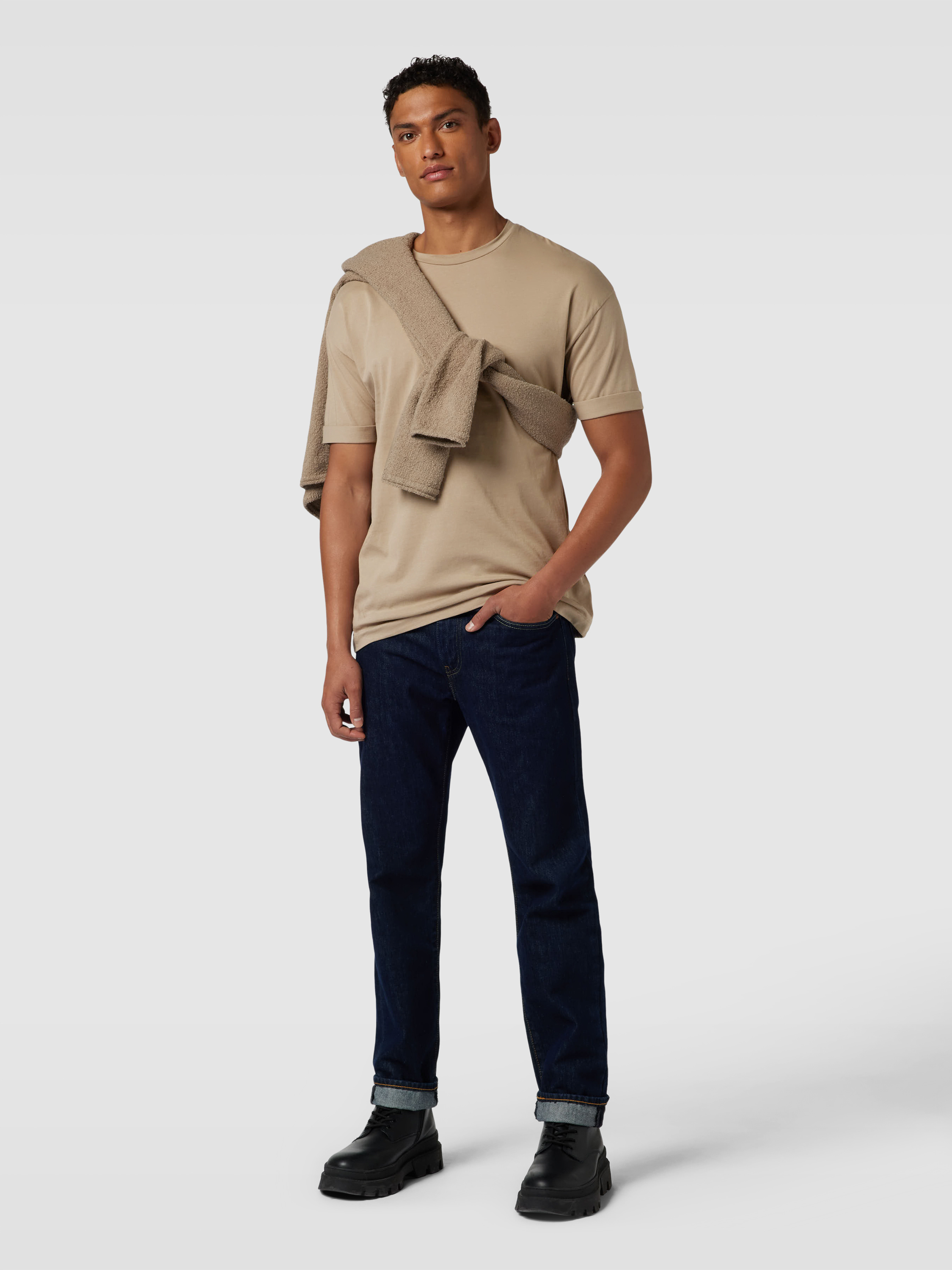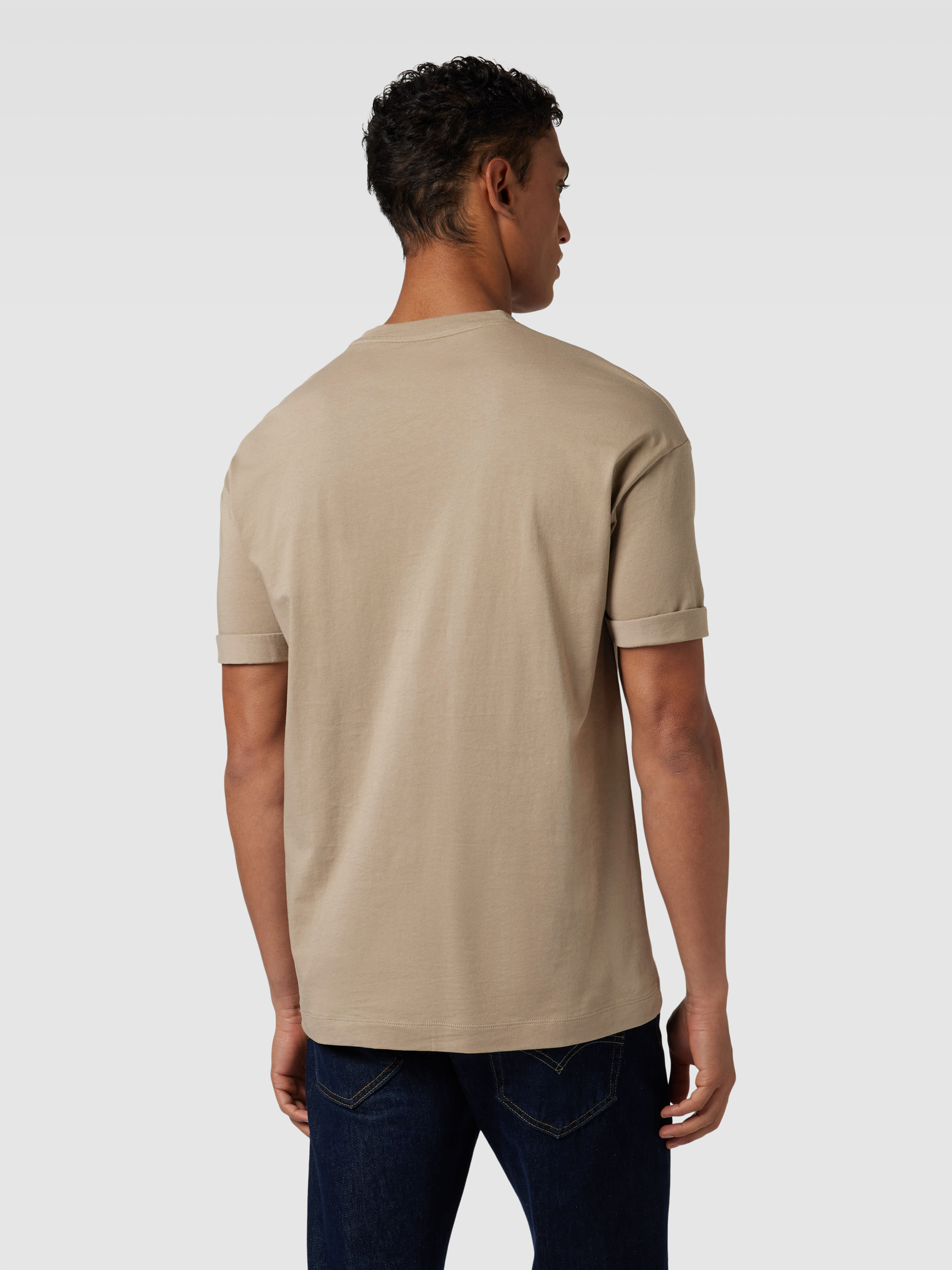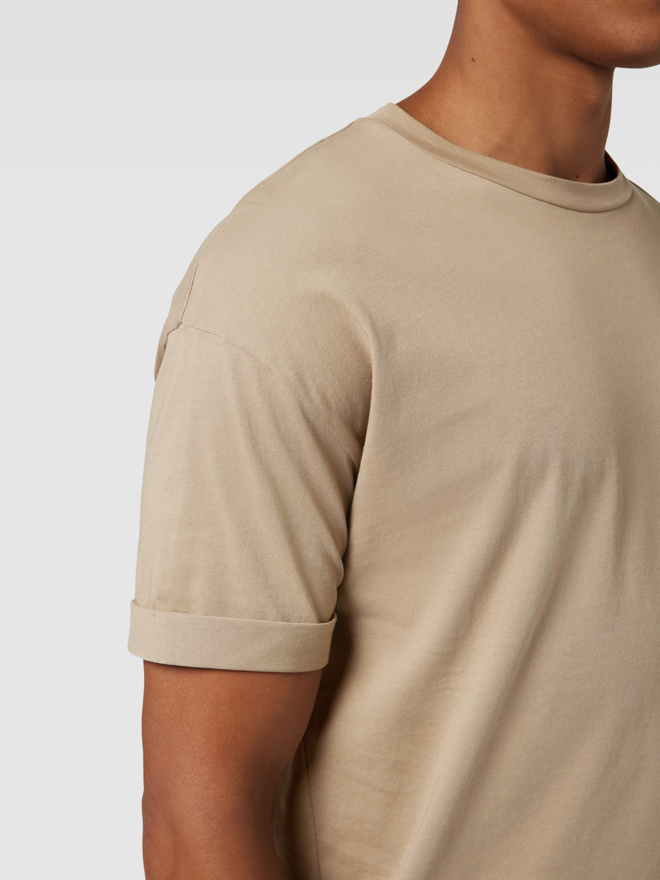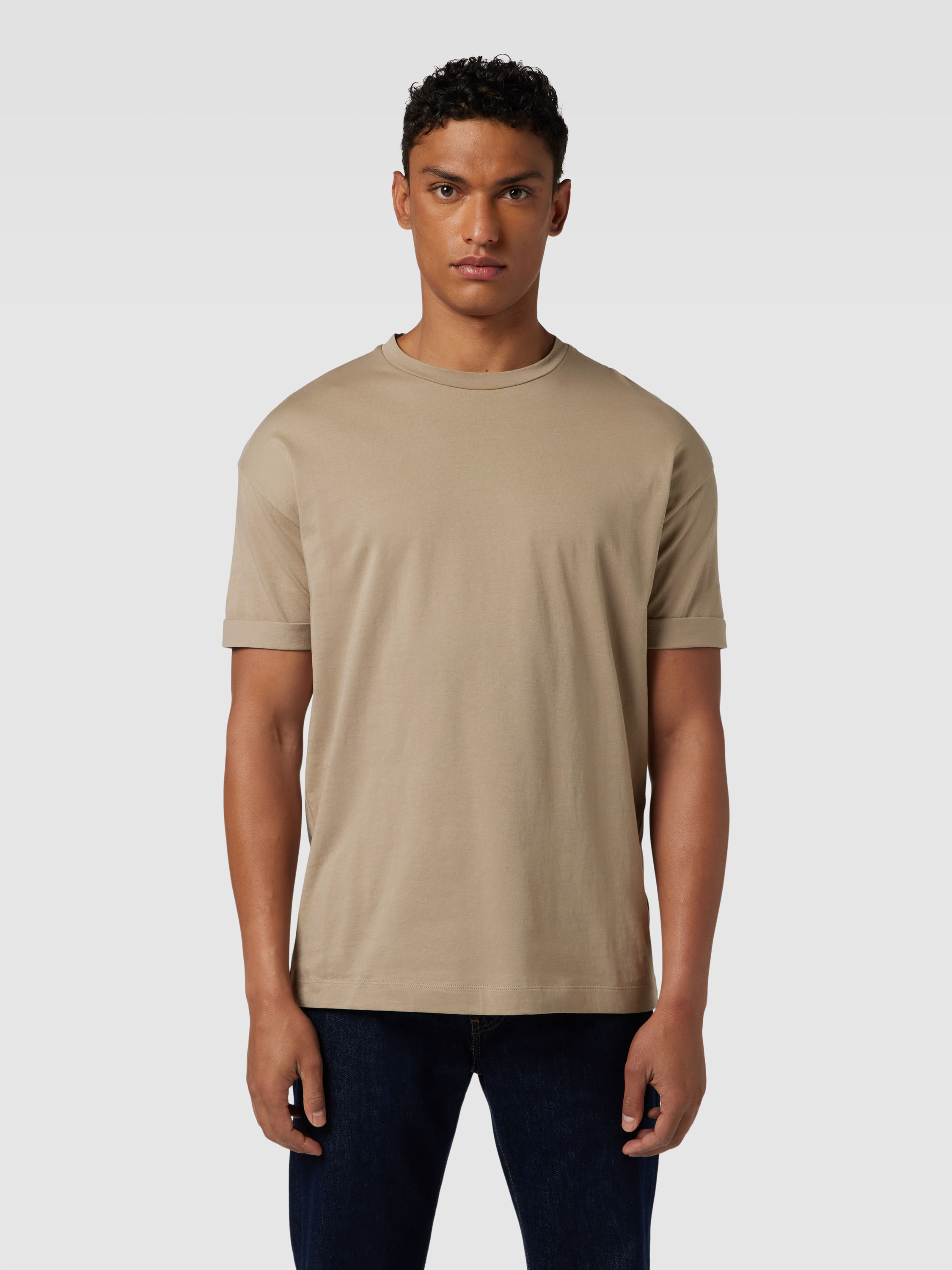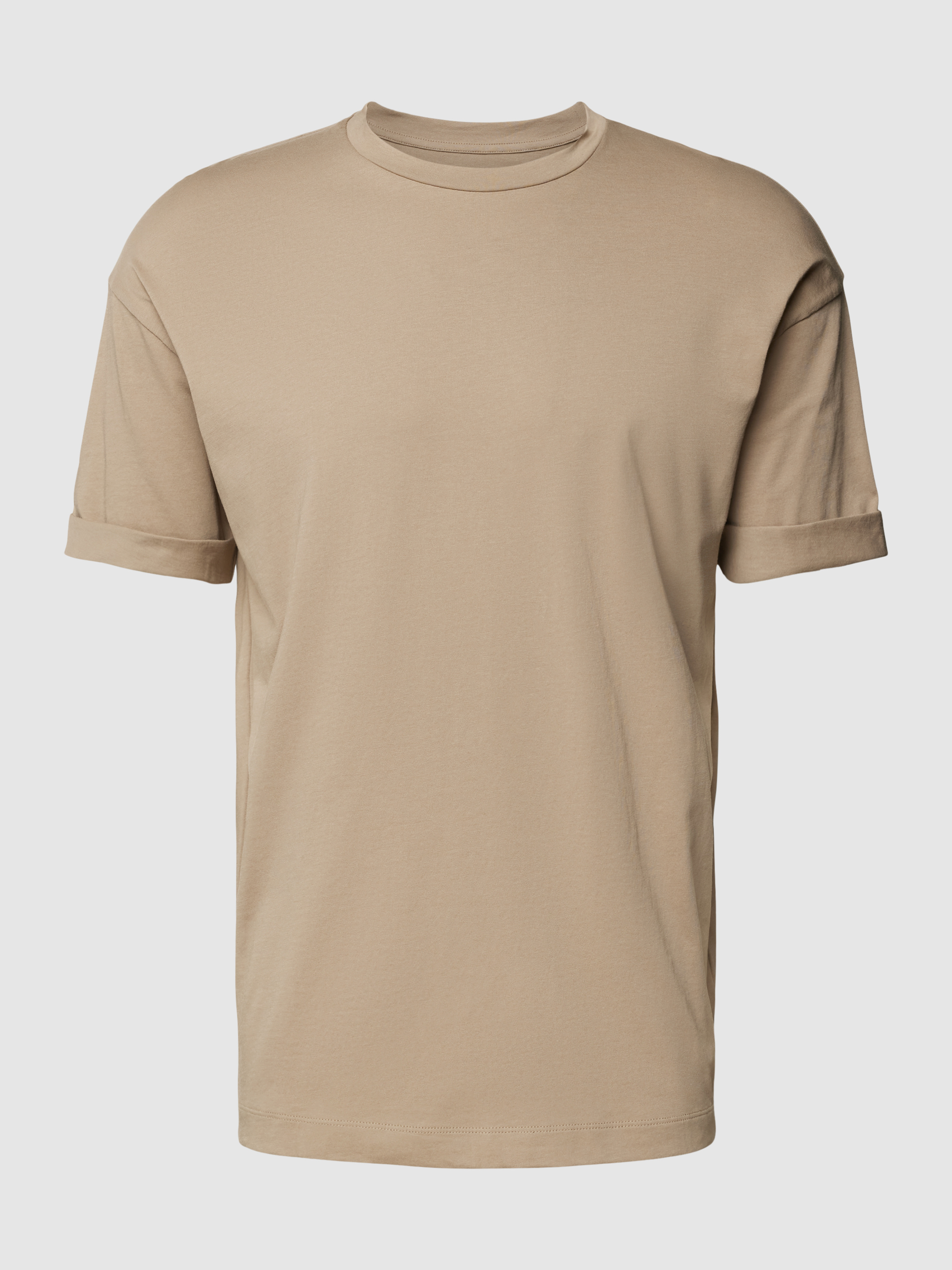 T-shirt met geribde ronde hals, model 'THILO' in leem
